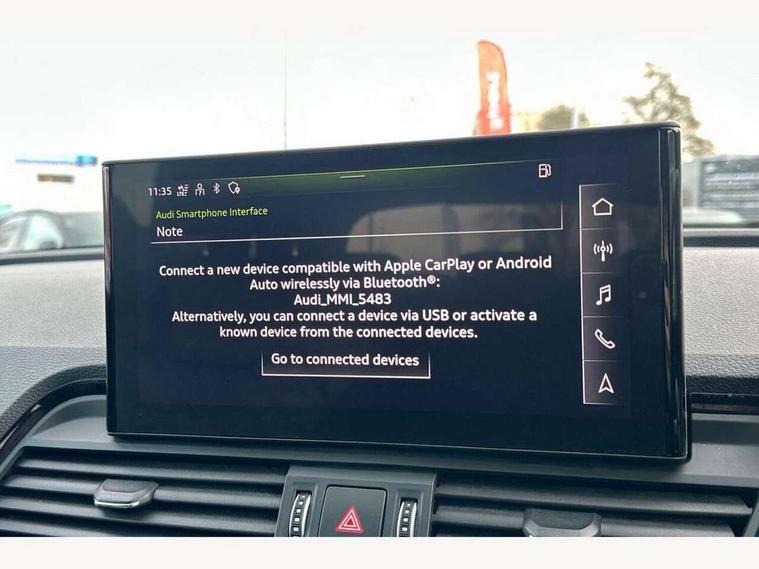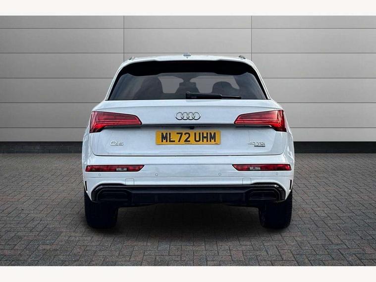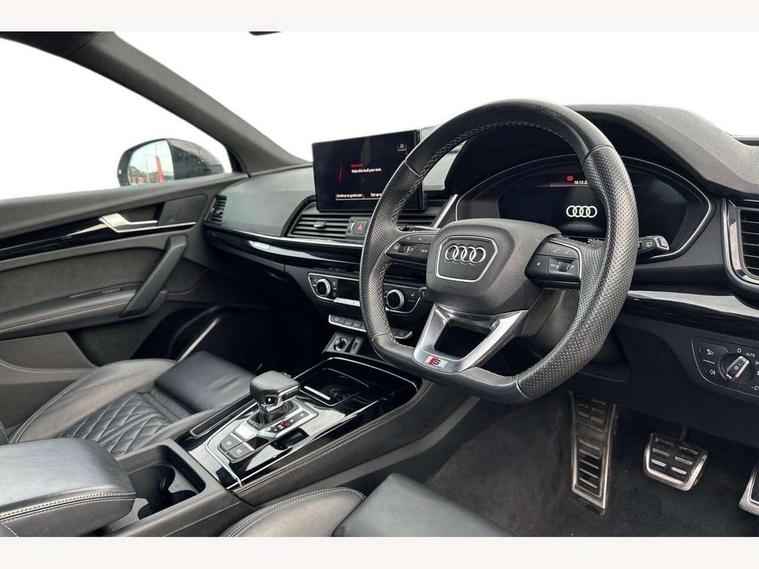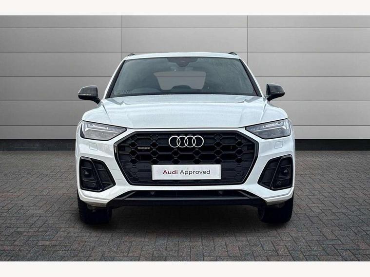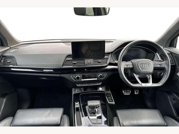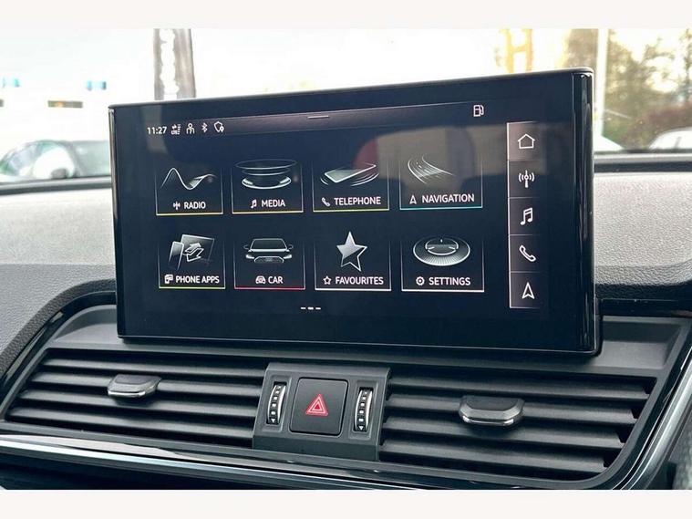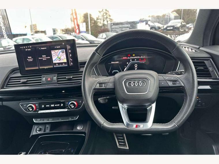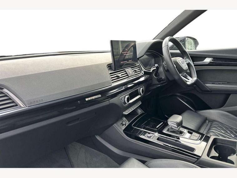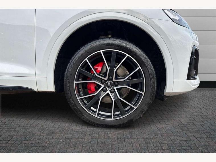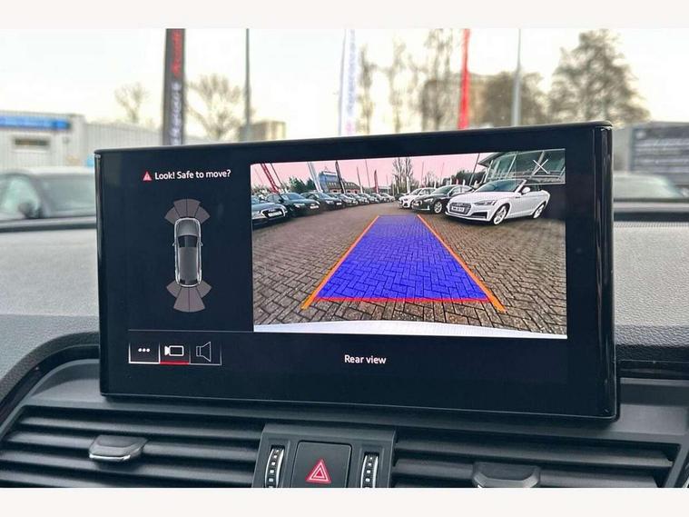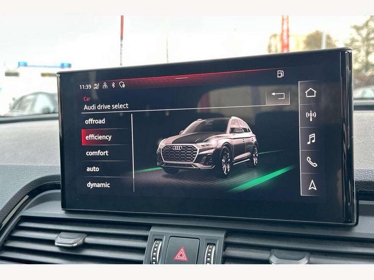 Audi connect safety and service (e-call), Audi connect with Amazon Alexa Integration, Audi drive select, Audi virtual cockpit plus with 12.3" screen and three different layout designs, Audi wireless smartphone interface, Automatic start-stop system with coasting functionality and efficiency programme, Bluetooth interface, Electro - mechanical power assisted steering, MMI navigation plus with 10.1" touch screen, Power tailgate, Reversing camera, Service interval indicator, Voice control system with Audi hotword activation "Hey Audi", Diesel particulate filter, Quattro on demand, S line sports suspension, 2 x USB charging port with aux input socket, DAB Digital radio, Acoustic windscreen, Audi matrix LED headlights with dynamic front and rear indicators, Audi rings at front and rear in black, Audi rings decal on rear doors, Auto dimming door mirrors, Auto dimming rear view mirror, Automatic headlight adjustment, Automatic headlights and windscreen wipers, Black roof rails, Body colour bumpers, Body colour underbody protection, Chrome plated exhaust trims, Daytime running lights, Door sills in Selenite silver, Electric adjustable/heated/folding door mirrors, Front air inlet surrounds in titanium black, Front and rear electric windows, Headlight washers, High gloss black B pillar trims and triangular rear door trim, High level LED brake light, Rear chrome trim strip below lights, Rear privacy glass and rear side windows, Rear side wing doors, Rear wiper, Roof bars, S Line rear spoiler, 3 rear headrests, 4 way electric lumbar support for driver and front passenger, 40:20:40 split folding 3 rear bench seat in 2nd row with rear centre armrest, Black cloth headlining, Comfort front centre armrest, Contrast stitching on seats, steering wheel and gear lever gaiter, Deluxe 3 zone electronic climate control, Electrically adjustable front seats, Fine Nappa leather upholstery with diamond pattern contrast stitching + front sport seats with S embossed logo, Front/rear floor mats, Gear lever in black leather, Heated front seats, Height adjustable front head restraints, Height/reach adjustable steering column, Illuminated door sill trims with S logo, ISOFIX child seat mounting and top tether, Luggage compartment cover, Rear seat bench plus, Removable luggage compartment floor, Single front passenger seat, Stainless steel pedals, Sunvisors with vanity mirrors, Black styling package - Q5 Edition 1, Extended interior upholstery pack - Q5, Extended LED Interior multi coloured Lighting Pack - Q5, 3 point seatbelts on all seats, 6 airbags - Driver, front passenger, curtain and side airbags, Electrically operated child locks on rear doors, Electromechanical parking brake, Electronic stabilisation control including ABS, ASR and EDL, Front and rear brake calipers painted in red, Front passenger airbag deactivation, Hill descent control, Hill hold assist, Multi collision brake assist, Pop-up bonnet for pedestrian protection, Pre sense city, Seat belt force limiter, Seatbelt monitoring, Tyre pressure warning, Warning triangle and first aid kit, Anti theft alarm, Anti-theft wheel bolts, Keyless Go access/ignition system, Remote central locking, Piano black finish inlay,