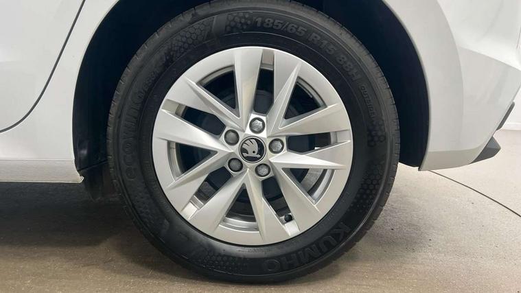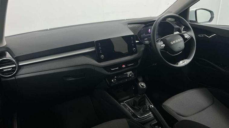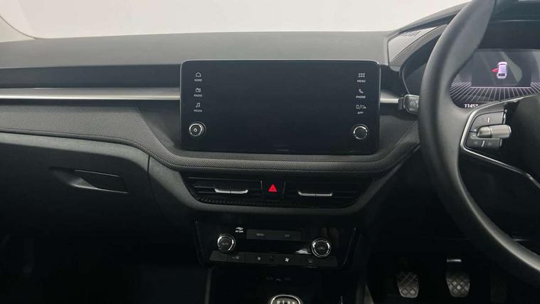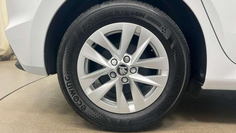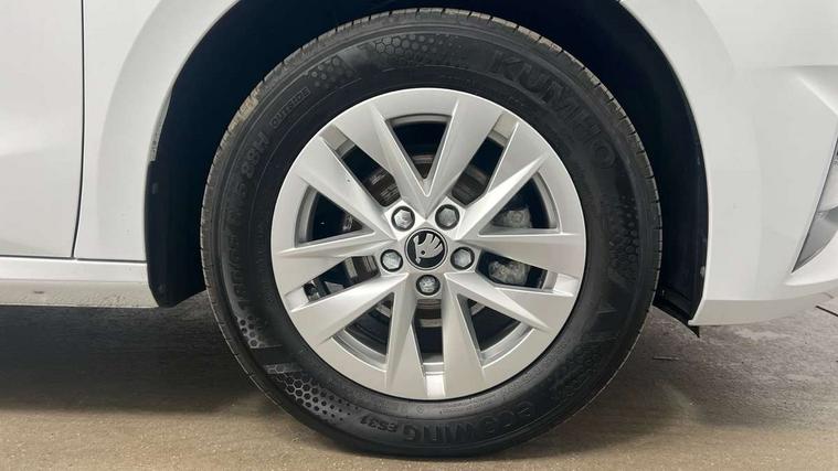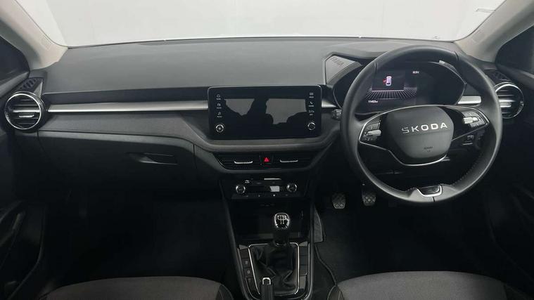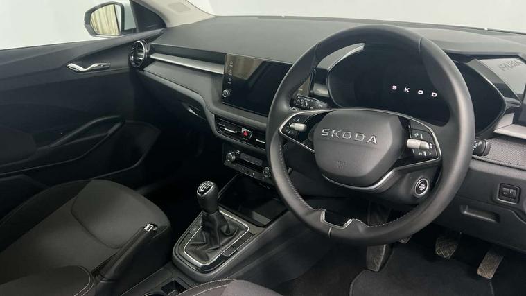 8" Digital instrument display, Advanced driver attention and drowsiness monitor, Bluetooth connection, Electromechanical power steering, Exterior temperature gauge, Service interval indicator, Traffic sign recognition, Wireless SmartLink for Apple CarPlay and Android Auto, 6 Speakers (4 in front and 2 in rear), 8.25" Skoda infotainment touchscreen display, Auxiliary socket for external MP3 player, DAB digital radio reception, Auto dimming rear view mirror, Body colour door mirrors, Body coloured bumpers, Door mirror integrated indicators, Front and rear electric windows, Front window wiper intermittent control, Headlight range control - Automatic, Ice scraper in fuel cap, LED 3rd brake light, LED daytime running lights with coming and leaving home feature, LED rear lights, Rear LED fog light, Rear side wing doors, Rear window wiper with washing nozzles, Roof mounted spoiler, SKODA tailgate lettering in chrome, Unique dark chrome design logo on alloy wheels, 2 reading lights in front and 2 reading lights in rear, 3 rear headrests, Backrest split and folding, Central console with removable cup holder and storage box, Chrome handbrake release button, Dual zone air conditioning with climatronic electronic control, Fabric upholstery, Front centre armrest, Gearshift knob/handle in leather, Grain satin black interior door handles, Hand brake lever handle in leather, Height adjustable front headrests, Height adjustable front seats, Height adjustable steering wheel, ISOFIX and TopTether anchorage points to the outer rear seats, ISOFIX and TopTether on the front passenger seat, Luggage compartment lighting, Manually adjustable lumbar support in front seats, Pollen filter, Rear seat bench unsplit, Single front passenger seat, Skoda lettering on steering wheel, Storm grey headlining, Sun visors with mirror and airbag label on passenger side, Textile floor mats, Ticket holder, Umbrella in drivers door, 3-point height adjustable front seats belts with pretensioner and force limiter, Automatic warning lights in case of crash, Driver and passengers airbag with switch off function, e-Call+, ESC including ABS, MSR, ASR, EDS, HBA and XDS, Front and rear seat belt warning, FRONT ASSIST (AEB City and AEB Inter Urban), Front side airbags, Head airbags, One tone horn, Pedestrian protection, Three rear 3-points safety seat belts with pretensioner and force limiter including stop function for outer rear seat belts, Tyre pressure monitoring system, Anti-theft alarm system including immobiliser, interior monitoring, backup horn, and towing protection, Central locking with radio remote control, interior controls, SAFE function and 2 foldable keys, Black painted air vents, Grain satin black central console cover, Metallic grey upper decorative trim, Satin black door and side trim panel in front, Textile Kota grey lower decorative inserts, Anti-theft wheel bolts protection, Super-low rolling resistance tyres,
