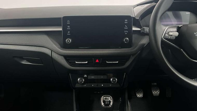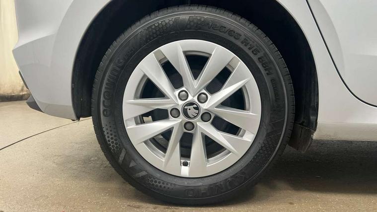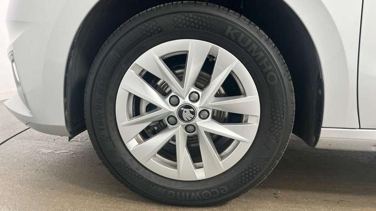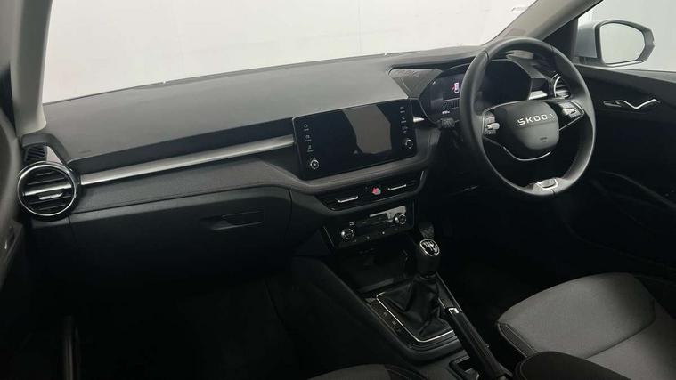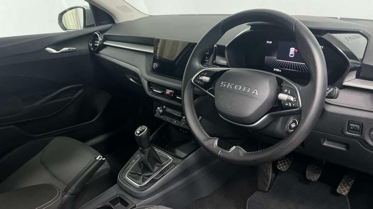 8" Digital instrument display, Advanced driver attention and drowsiness monitor, Bluetooth connection, Electromechanical power steering, Exterior temperature gauge, Service interval indicator, Traffic sign recognition, Wireless SmartLink for Apple CarPlay and Android Auto, 6 Speakers (4 in front and 2 in rear), 8.25" Skoda infotainment touchscreen display, Auxiliary socket for external MP3 player, DAB digital radio reception, Auto dimming rear view mirror, Body colour door mirrors, Body coloured bumpers, Door mirror integrated indicators, Front and rear electric windows, Front window wiper intermittent control, Headlight range control - Automatic, Ice scraper in fuel cap, LED 3rd brake light, LED daytime running lights with coming and leaving home feature, LED rear lights, Rear LED fog light, Rear side wing doors, Rear window wiper with washing nozzles, Roof mounted spoiler, SKODA tailgate lettering in chrome, Unique dark chrome design logo on alloy wheels, 2 reading lights in front and 2 reading lights in rear, 3 rear headrests, Backrest split and folding, Central console with removable cup holder and storage box, Chrome handbrake release button, Dual zone air conditioning with climatronic electronic control, Fabric upholstery, Front centre armrest, Gearshift knob/handle in leather, Grain satin black interior door handles, Hand brake lever handle in leather, Height adjustable front headrests, Height adjustable front seats, Height adjustable steering wheel, ISOFIX and TopTether anchorage points to the outer rear seats, ISOFIX and TopTether on the front passenger seat, Luggage compartment lighting, Manually adjustable lumbar support in front seats, Pollen filter, Rear seat bench unsplit, Single front passenger seat, Skoda lettering on steering wheel, Storm grey headlining, Sun visors with mirror and airbag label on passenger side, Textile floor mats, Ticket holder, Umbrella in drivers door, 3-point height adjustable front seats belts with pretensioner and force limiter, Automatic warning lights in case of crash, Driver and passengers airbag with switch off function, e-Call+, ESC including ABS, MSR, ASR, EDS, HBA and XDS, Front and rear seat belt warning, FRONT ASSIST (AEB City and AEB Inter Urban), Front side airbags, Head airbags, One tone horn, Pedestrian protection, Three rear 3-points safety seat belts with pretensioner and force limiter including stop function for outer rear seat belts, Tyre pressure monitoring system, Anti-theft alarm system including immobiliser, interior monitoring, backup horn, and towing protection, Central locking with radio remote control, interior controls, SAFE function and 2 foldable keys, Black painted air vents, Grain satin black central console cover, Metallic grey upper decorative trim, Satin black door and side trim panel in front, Textile Kota grey lower decorative inserts, Anti-theft wheel bolts protection, Super-low rolling resistance tyres,