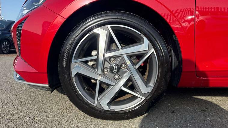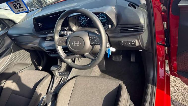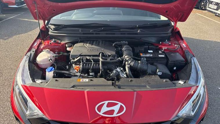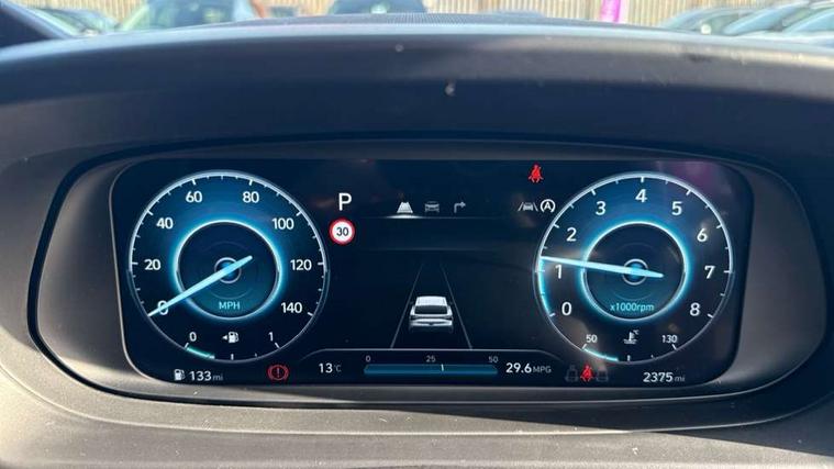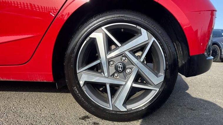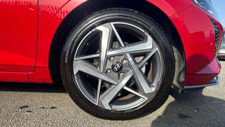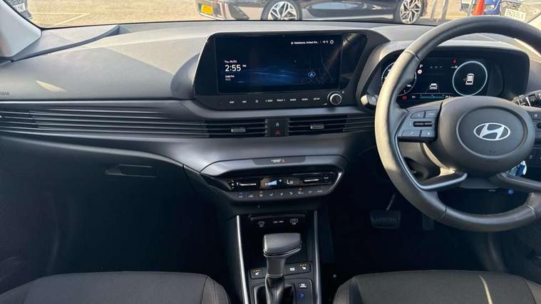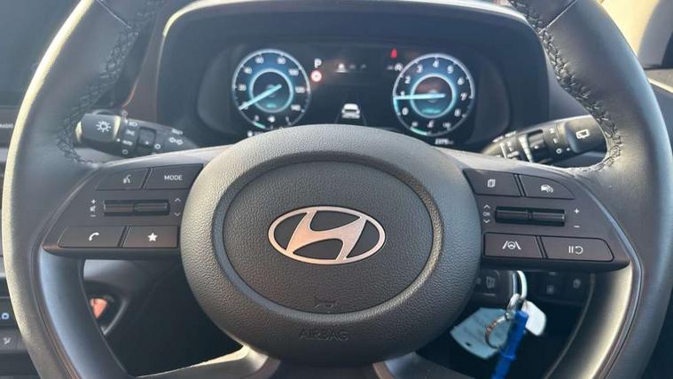 10.25" touchscreen + navigation, 2nd Gen eCall, 8" Touchscreen DAB Radio with android auto and apple carplay, Forward collision assist with car, pedestrian and cycle detection, Front parking sensor, Intelligent speed assist, Intelligent speed limit warning, Lane follow assist, Lane keep assist, MAP OTA updates, PAS, Rear parking sensor, Rear view camera with dynamic guidelines, USB C port front, USB C Port in rear, Automatic headlights with dusk sensor, Electric adjustable heated door mirrors, Electric folding door mirrors, Front grille mesh pattern design, High beam assist, LED 3rd brake light, LED daytime running lights, LED Headlights, LED taillights, Privacy glass - Rear windows and tailgate, Rain sensor, Rear side wing doors, Rear wiper, Repositioned flat metal hyundai emblem, Trailer wiring, 3 seat bench in 2nd row, Adjustable head restraints, Automatic air conditioning, Cloth upholstery, Floor mats, Heated front seats, Heated steering wheel, Leather steering wheel, Multi colour ambient lighting, Single front passenger seat, 3x3 point rear seatbelts, ABS with front and rear diagonally split, Autonomous emergency braking, Child locks on rear doors, Front ventilated disc brakes, Rear solid disc brakes, Tyre pressure monitoring system, 17" Alloy wheels, Tyre repair kit,