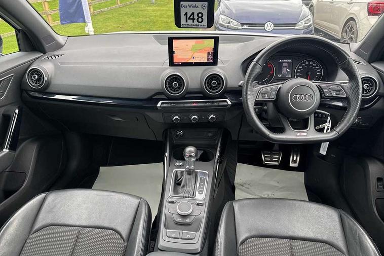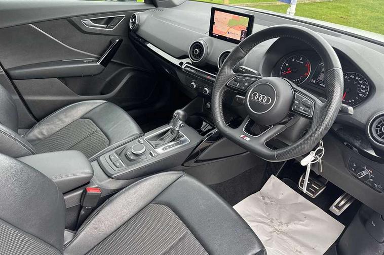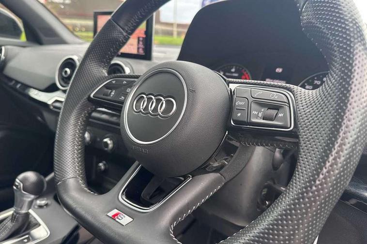 Audi drive select, Audi smartphone interface, Automatic start/stop system with recuperation, Bluetooth interface includes bluetooth audio streaming, Cruise control, MMI - Multi Media Interface control system, MMI SD card integrated nav with 3D map display, dynamic route guidance with TMC, MMI search, natural voice recognition and myAudi special destinations, Power operated tailgate, Progressive steering, Service interval indicator, Dynamic suspension, 2 x SDXC card reader, Audi music interface - apple iPod, apple iPhone, USB storage media, compatible MP3 players, 2 x USB charging points and 1 x Aux-in, CD Drive, DAB digital radio and AM/FM radio, MMI radio plus with 7" colour MMI screen and MMI controller, Black window trims, Bumper in full body colour paint finish, Chrome exhaust tailpipe, Electrically adjustable and heated door mirrors with integrated LED side indicators, Front and rear electric windows, Front underbody guard and rear diffuser trim in selenite silver, Front windscreen with grey tinted sunband, Headlight washers, Interior mirror, LED headlights with LED rear lights + dynamic rear indicators, LED indicator lights, Manual folding door mirrors, Privacy glass - dark tinted rear and rear side windows from B-pillar backwards, Rain and light sensors, Rear wiper, S Line body styling - front and rear bumpers, side skirts, radiator grille, rear diffuser insert and front air intakes, 3 spoke flat bottomed high multi-function leather sport steering wheel with gearshift paddles, 60/40 split folding rear seat bench, Black cloth headlining, Floor mats with contrast stitching, Front centre armrest, Front headrests, Front sport seats with S embossed logo, Height/reach adjust steering wheel, Illuminated door sill trims with S logo, ISOFIX child seat mounting for front passenger with airbag deactivation and outer rear seat including top tether attachment point for outer rear seats, Manual seat adjustment including seat height adjustment for front seats, Stainless steel pedals, Storage compartments - Glovebox, cupholder compartment in centre console, storage compartment in rear centre console, front and rear door pockets, Three rear headrests, Black styling pack - Q2, LED interior lighting pack - Q2, Non smoking pack - Q2, 3x3 point rear seatbelts, 6 airbags - Front, curtain and front side airbags, Electromechanical parking brake, Electronic stabilisation control including ABS, ASR and EDL, Extended and proactive pedestrian protection, Hill hold assist, Multi collision brake assist, Pre-sense front with pedestrian recognition, Seatbelt monitoring, Tyre pressure warning light, Warning triangle and first aid kit, Anti theft alarm, Anti theft wheel bolts, Central locking system with remote control key, Electronically operated child locks, Aluminium interior element, Black inlays - decorative trims in black for centre console and front and rear door pull handles,