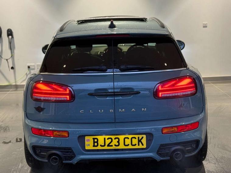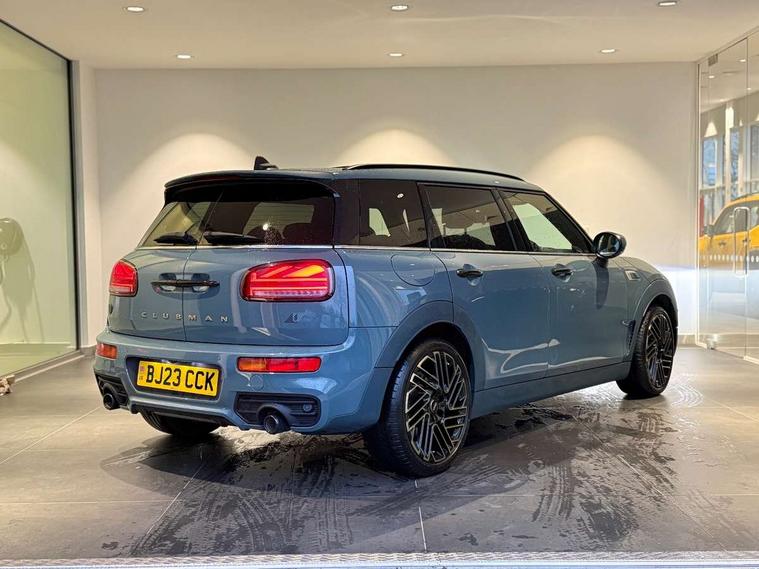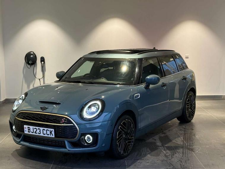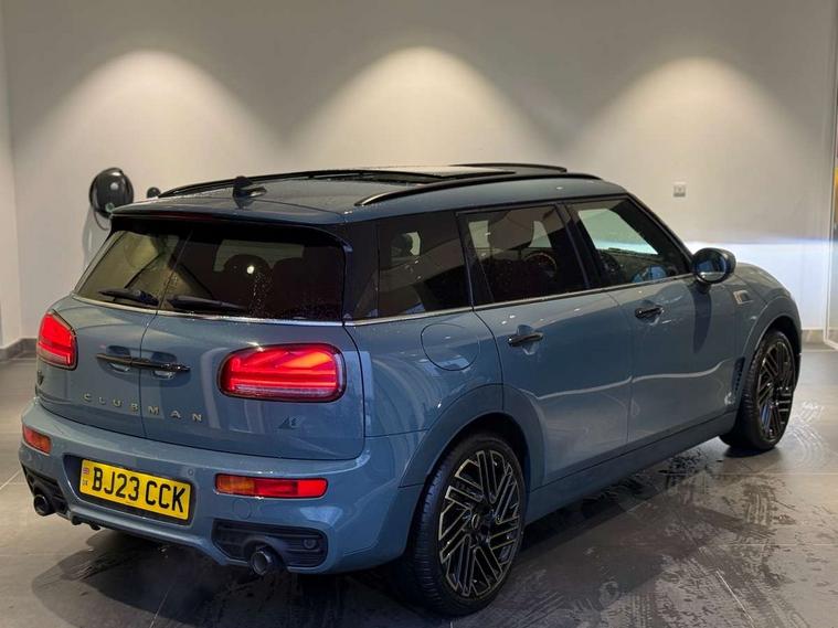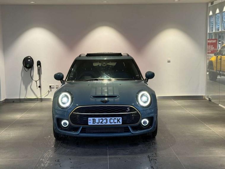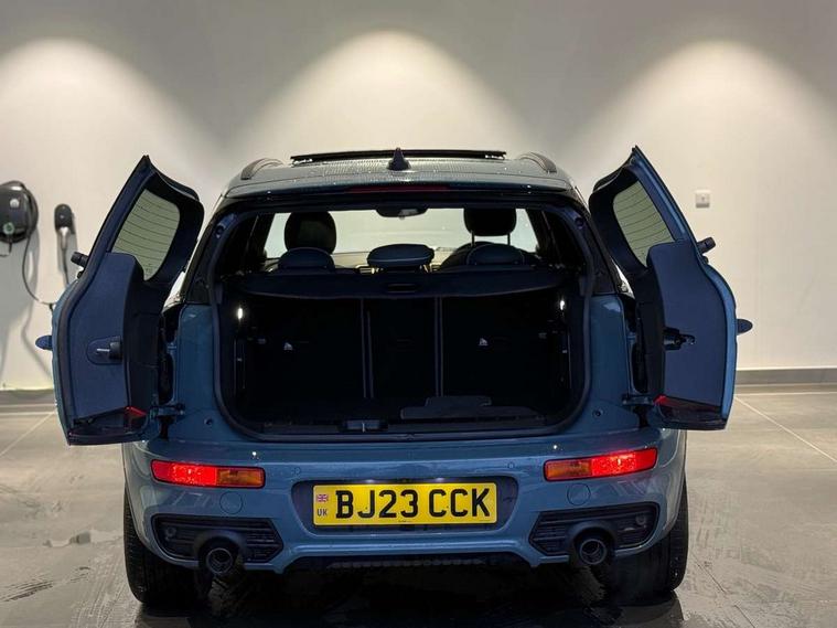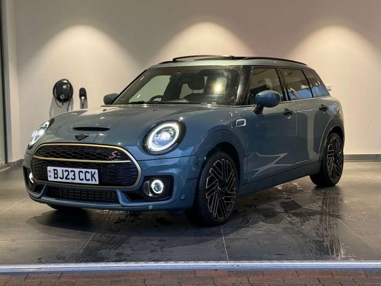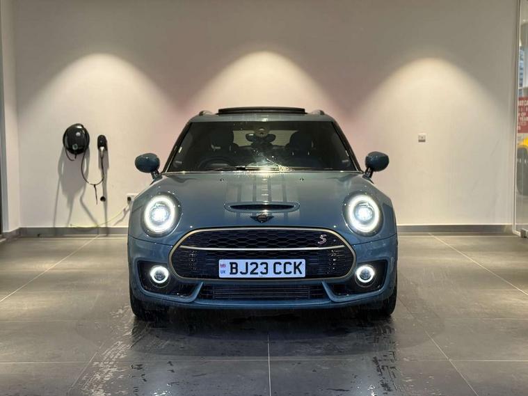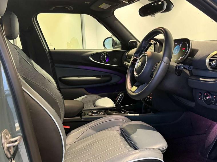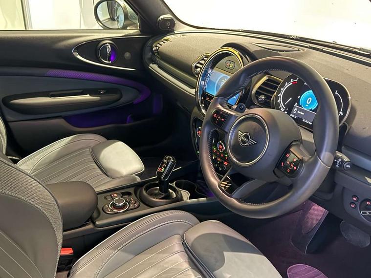 Active Guard incl speed limiting and lane departure functions with auto steering, and front collision warning with brake intervention, Automatic start/stop function with brake energy recuperation, Car sharing preparation, Compatible mobile phone bluetooth with audio streaming, Electro-mechanical speed dependant steering assistance, Instrument cluster, Mini E-call, MINI TeleServices, On board computer, Rear parking distance control, 7 Speed steptronic sport transmission with double clutch including electronic gear shifter and steering wheel paddles, Double Vanos system, Fully variable valve control, High precision injection, Performance Control, FM tuner and DAB digital radio, 3D printed side scuttle, Adaptive LED Headlights with matrix function, Bonnet scoop, Chrome border honeycomb structure radiator grille with S badge, Chrome fuel filler cap, Daytime running lights, Dynamic brake lights, Electric windows, Heated rear window, Heated windscreen washer jets, John Cooper Works - aerodynamic kit (front and rear apron, spoiler), front and rear sport bumpers and part-painted side sills with door sill finishers, LED rear light with union jack design, Metal door sill strips with Cooper S imprint, Metallic paint, Model logo on rear doors, Piano black exterior, Rain sensor with auto headlights, Rear fog lights, Rear side wing doors, Rear window wiper, Rear wing door, Sage green lower exterior trim, Split rear doors, Sun/heat protection glass, Third brake light, Twin exhaust tailpipe, Untold bonnet stripes, Untold entry sills, Untold logo projection, Variable front intermittent wipers, White indicator lenses, 12V Accessory socket in centre console, 3 seat bench in 2nd row, 360L luggage compartment capacity, 4 lashing eyes in luggage compartment, 60/40 split folding rear seat, Anthracite headlining with grab handles and clothes hooks, Chrome interior highlights, Cupholders, English handbook, Front and rear head restraints, Glove compartment, Height and length steering column adjustment, Interior lighting with 12 basic colours selectable via toggle switch in roof, Isofix rear child seat preparation, Leather gearshift lever and handbrake gaiters, LED reading lights, vanity mirror lights, front foot well light and spotlight on front seats, Manual air conditioning, MINI Yours lounge leather upholstery with sports seats, Multifunction steering wheel, Refined brass interior air vents, Single front passenger seat, Storage compartments in doors, Sunvisors with vanity mirrors, Toolkit, Untold floor mats, Untold nappa steering wheel, Excitement pack - Clubman, Extended interior lighting pack - Mini Clubman, Navigation pack - Clubman, 2 tone horn, 3 point seatbelts on all seats, 6 Airbags - front, side, head and seat belt tensioners, Anti-lock braking system (ABS), Child locks on rear doors, DSC - Dynamic Stability Control, Electronic handbrake, Front and rear disc brakes, Tyre pressure monitoring system, Alarm system with tilt sensor, monitoring doors, bonnet interior and tailgate, Auto drive away locking, Deadlocking function, Electronic vehicle immobiliser, Locking wheel bolts, Remote central locking, Start/stop toggle with keyless go, Untold illuminated interior trim, 18" Untold spoke 2-tone alloy wheels with run flat tyres,