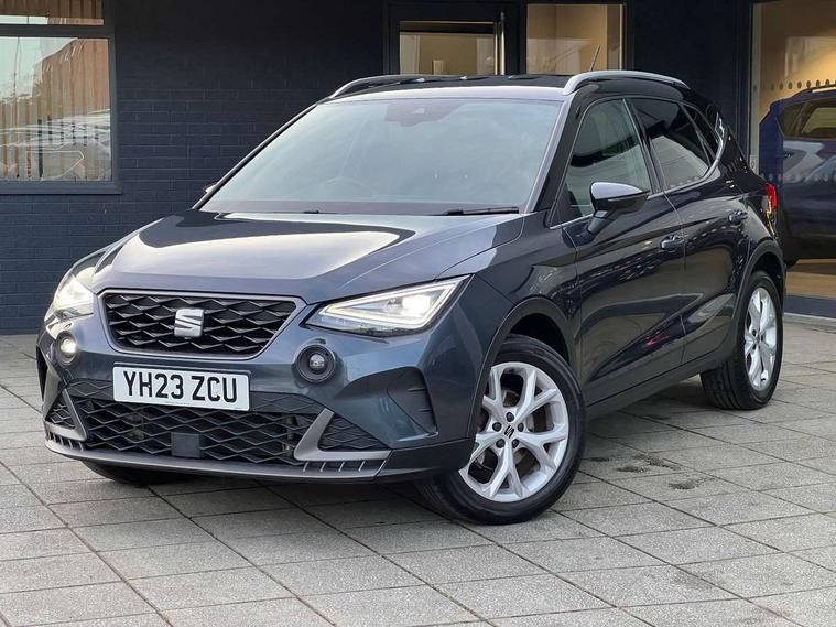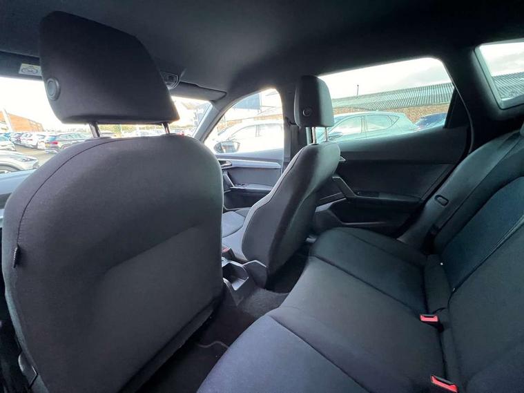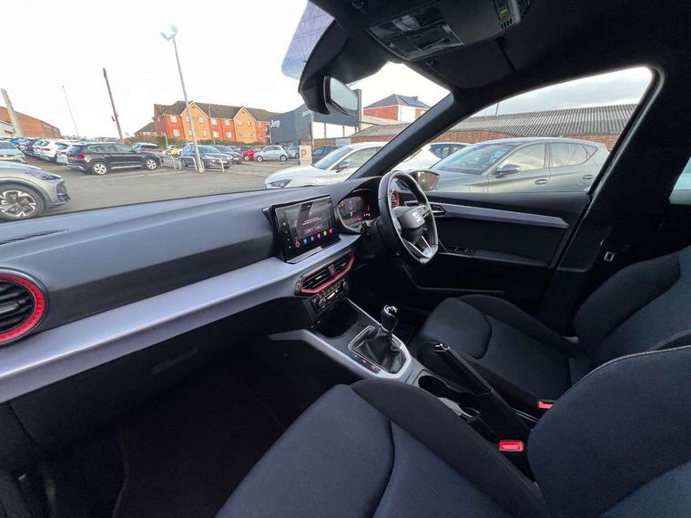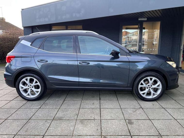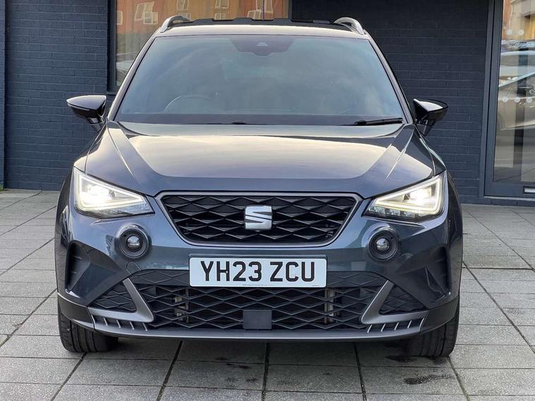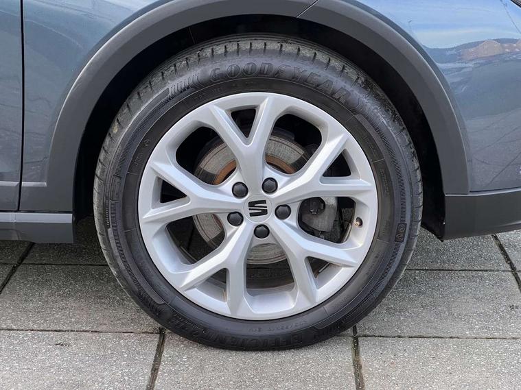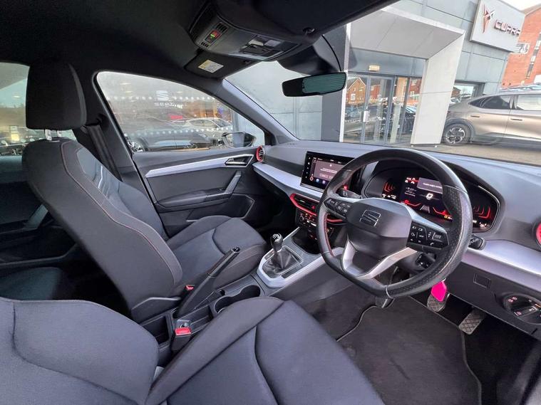 'Lights On' Reminder warning buzzer, 8" Digital cockpit, Digital clock, E-call, Electric speed sensitive power steering, Full Link Smartphone Integration with Mirror Link, Apple Car Play, Google Android Auto with USB Type C cable for Apple and Android compatibility, Lane keeping system, Low fuel warning light, Outside temperature display, Rear parking sensor, RPM counter, Seat connect with safety, service, remote and online, SEAT Drive profile - Four different models normal-sport-eco-individual, steering response, throttle response, Trip computer, Wireless phone charger, 9.2" colour touchscreen with navigation system, voice control and USB port (type c), Bluetooth interface for hands free and audio streaming, DAB digital radio and AM/FM radio, Steering wheel mounted audio controls, Anti theft roof antenna, Auto dimming interior rear view mirror, Automatic activation of hazard warning lights, Body coloured bumpers, Body coloured door handle inserts, Chrome roof rails and window surrounds, Dark tinted rear windows, Electric front/rear windows, Electrically adjustable, heated and folding door mirrors, Front fog lights with cornering function and rear fog light, FULL LED automatic headlights with dynamic headlight range control, coming and leaving home, LED daytime running lights, LED rear tail lights and licence plate lights, Protective side mouldings, Rain sensing wipers, Rear side wing doors, Rear spoiler, Rear window wash/wipe, Roof colour door mirrors, Third brake light, Twin exhaust pipe styling hidden exhaust pipe, Visible VIN plate, Windshield wiper with intermittent control and potentiometer, 2 cupholders, 3 seat bench in 2nd row, 60/40 split folding rear seat, Aircare filter, Black interior roof, Cloth upholstery, Double boot floor, Driver sunvisor with covered mirror + card holder, Dual zone climate control, Front courtesy light with 2x front and 2x rear reading lights, Front sport seats, Gear shift indicator, Height adjustable front seats, Height/reach adjustable steering column, Illuminated boot, Instrument lighting with brightness control, Interior ambient lighting, Interior light in footwell, central console and door panel, ISOFIX points in outer rear seats with top tether anchorage points, Passenger sunvisor with vanity mirror, Perforated flat bottomed leather steering wheel/gear knob/handbrake with red stitching and FR logo, Single front passenger seat, Two front and three rear height adjustable headrests, Interior chrome pack - Arona, 3 point seatbelts on all rear seats, ABS, Active front headrests, Child locks on rear doors, Driver and front passenger airbags with front passenger airbag de activation, front side and curtain airbags, Electronic stability control, Emergency Brake Assist (EBA) and front assist, Front and rear seatbelt reminder, Hill hold control, Multi-Collision braking, Tiredness recognition system, Traction control, Tyre pressure monitoring system, Alarm with back-up horn, Electronic engine immobiliser, Locking wheel bolts, Remote central locking + deadlocks, Tow away protection, Titan black dashboard, 17" Dynamic alloy wheels,