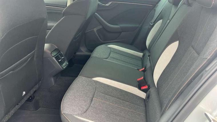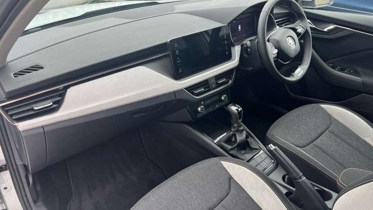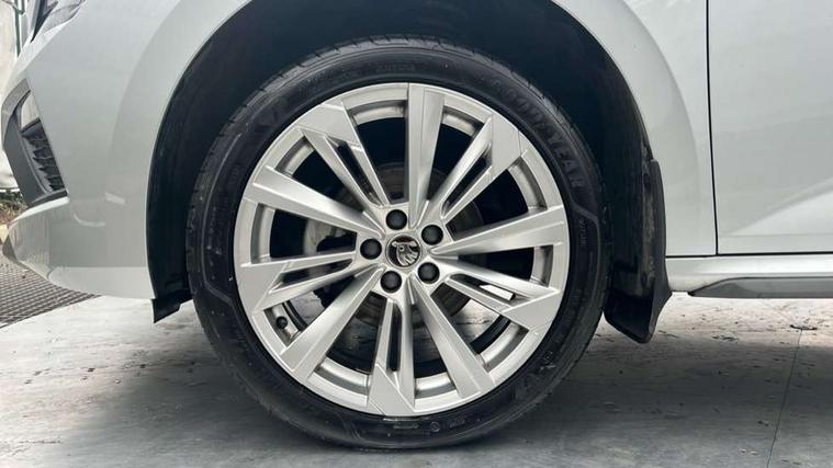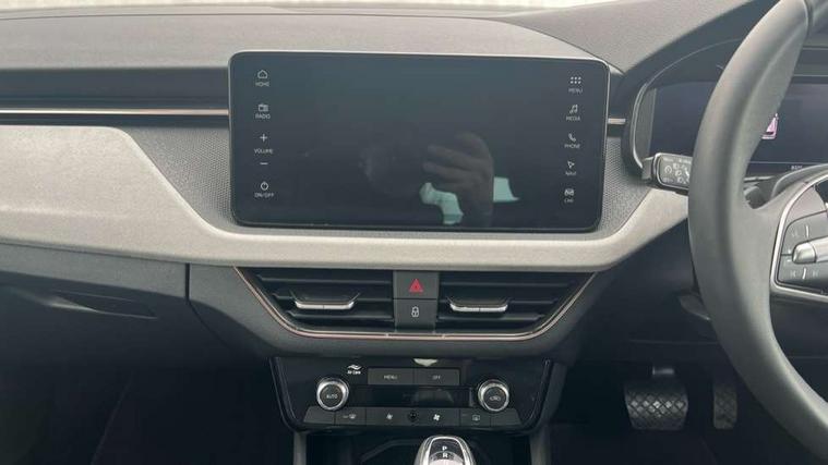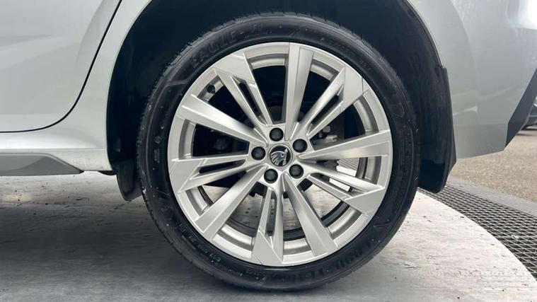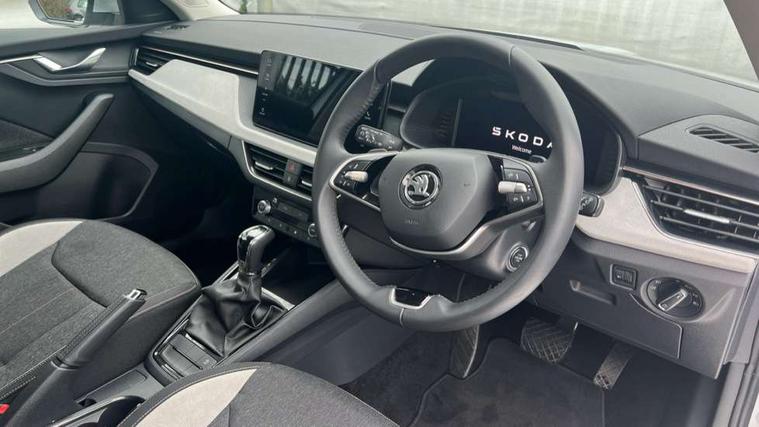 Advanced driver attention and drowsiness monitor, Bluetooth system, E-call, Front assist system, PAS, Rear parking sensors, Service indicator, Speed limiter, Traffic sign recognition, Virtual cockpit with 10.25" display, Voice control system, Wireless smartlink, 4 USB C ports, 8 Speakers, 9.2" Skoda navigation display, DAB Digital radio, Auto dimming rear view mirror, Automatic headlight control with coming home and leaving home feature, Body colour bumpers, Body colour door mirrors and handles, Chrome grille surround, Chrome roof rails with chrome window surround, Front and rear electric windows, Heated rear window, LED daytime running lights, LED high beam, LED low beam, LED third brake light, Light sensors, Privacy glass, Rear side wing doors, Rear wiper, Ticket holder inside windscreen, 12V socket in luggage compartment, 3 seat bench in 2nd row, Accent black door inserts, Ambient lighting in white/red, Cargo elements, Chrome inner door handles, Copper hotstamping, Driver and passenger sun visors with vanity mirror, Dual zone climate control, Front and rear roof lights, Front centre armrest, Front head restraints, Glove compartment with illumination, Height adjustable driver seat, Height adjustable front passenger seat, Ice scraper, Inner circulation control with pollen filter, ISOFIX on front passenger seat, Isofix preparation for back seats, Leather gearknob and handbrake lever, Lodge cloth upholstery, Manual lumbar support for front seats, Net package and top tether hooks in boot space, Net under rear shelf, Overhead glasses storage compartment, Pocket on the back of both front seats include mobile phone pockets, Rake/reach adjustable steering wheel, Reading lights, Rear centre armrests, Single front passenger seat, Suedia grey decor inserts, Textile floor mats, Third rear headrest, Top tether for front passenger seat, Umbrella in driver's door, 3x3 point rear seatbelts, Airbags - driver and front passenger, Disc brakes, ESP, Extended and predictive pedestrian/cyclist protection, Front passenger airbag deactivation switch, Front side airbags with curtain airbags, Hill hold control, Manual leather parking brake, Manual rear child locks, One tone horn, Seatbelt reminder for driver an co-driver, Traction control, Tyre pressure monitor, Anti-theft alarm system with interior monitoring, backup horn, towing protection and remote central locking with SAFE system, Anti-theft wheel bolts, Electronic engine immobilizer,