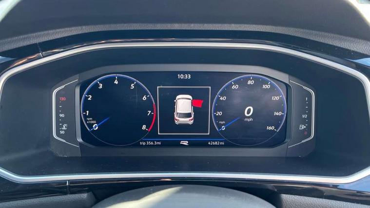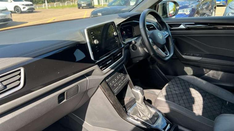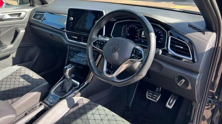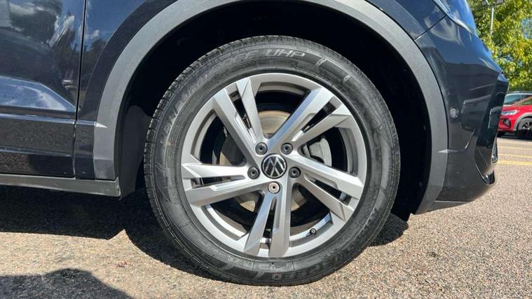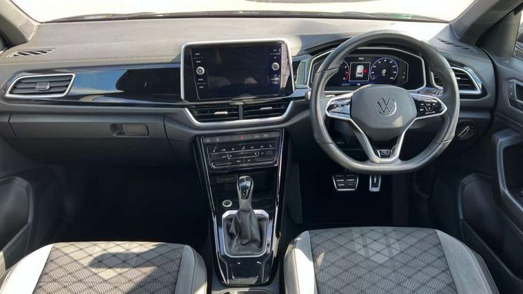 10.25" Digital cockpit pro, Bluetooth mobile phone interface, Driver alert system with fatigue detection, Driver tips and journey analysis, Emergency call service, Lane keeping system Lane Assist, Modified key software - reduce switch off time for key status change to Long no motion, Online services, Park assist including front and rear parking sensors, Service interval indicator, Tailgate/trunk lid release from outside, Think blue trainer driver tips and journey analysis, Warning sound and light for front seatbelts unfastened, Wireless app connect, Battery regeneration during braking, Start/stop function with battery regeneration, Diversity antenna for FM reception, Front and rear 6 speakers, Music playback - MP3, WMA and AAC files, Premium USB cable in choice of either Apple or Android smartphone compatibility, SD card slot, Simultaneous pairing of 2 compatible mobile devices, Title and cover art display, We Connect and We Connect Plus functionality, 3rd brake light, Auto dimming interior rear view mirror, Automatic hazard lights activation under emergency braking, Automatic headlight control with LED separate daytime running lights with coming/leaving home function, Extended roof spoiler, Exterior mirrors aspherical on driver side, convex on front passenger side, External USB type C socket and charging sockets, Front windscreen wiper with intermittent wipe and 4 position delay, Heated rear window, LED Plus headlamps, LED rear combination lamps, LED rear number plate lights, LED tail lamp rear comination lamps, Power windows with comfort operation and circuit breaker, R-Line design body coloured bumpers, Rain sensor, Rear exhaust tailpipe, Rear fog light on one side and reversing lights on both sides, Rear side wing doors, Rear wash/wipe with intermittent wipe setting, Remote electrically foldable door mirrors, puddle lights and reverse activated passenger's door mirror, 12V power socket in centre console, 3 rear head restraints, 3 seat bench in 2nd row, 4 load lashing points in luggage compartment, Air care climatronic air conditoning system with active combination filter and 2-zone temperature control, Black roof lining, Chrome plated radiator grille inserts, air vent surrounds and light switch surrounds, Door and side trim panel with leatherette insert, Drawer under drivers seat, Front + rear carpet mats, Front centre armrest, Front cupholders x 2, Front footwell illumination, Front reading light, Front scuff plates with R logo, Instrument lighting, white adjustable panel illumination, Interior ambient lighting and surround lighting, Interior light delay, Isofix child seat preparation, Leather gearshift handle, Load-through provision with cup holder when folded down ('Unsplit rear seat bench, split folding backrest, with centre armrest), Luggage compartment lighting, Single front passenger seat, Stainless steel pedals, Storage compartment in left and right luggage area, Storage compartment in rear doors, Storage compartments in driver and front passenger doors, Sunvisors with illuminated vanity mirrors, Variable boot floor, height adjustable and removable, Driver assistance pack without proactive passenger protection - T-Roc, 3 point height adj front seatbelts + pretensioners, 3 point seatbelts in outer rear with ECE label, ABS, Child locks on rear doors, Driver and front passenger airbag with front passenger airbag deactivation, Driver and front passenger safety-optimised head restraints, Drivers seatbelt reminder, Electronic parking brake, Electronic Stability Control (ESC) inc EDL (Electronic Differential Lock) and ASR (Traction Control), Front and rear passengers curtain airbag system including front side airbags, Front assist with city emergency braking and pedestrian monitoring, Front seat side impact airbags, Hill start assist, Predictive pedestrian protection, Rear disc brakes, Single tone horn, Tyre pressure loss indicator, Volkswagen roadside assistance, Alarm with interior protection, Anti-theft alarm system with interior monitoring, backup horn, and towing protection, Remote central locking with SAFELOCK, radio remote control with 2 remote control folding keys, Trims for alloy wheels,