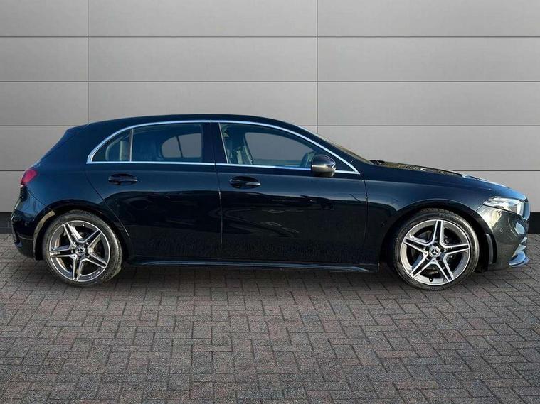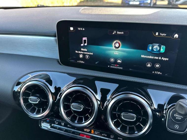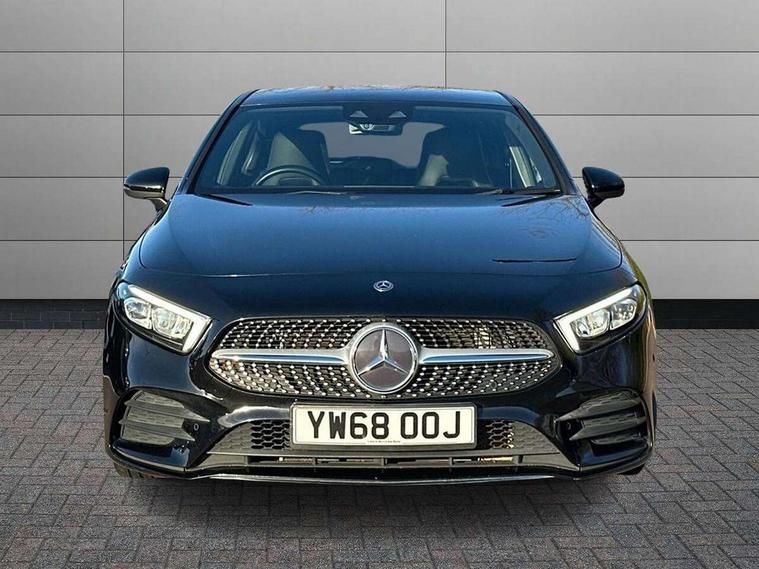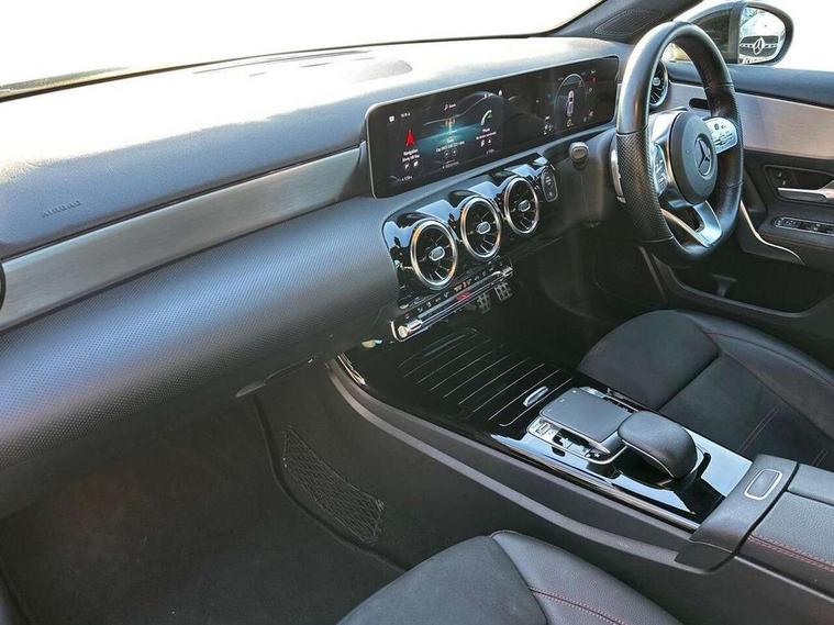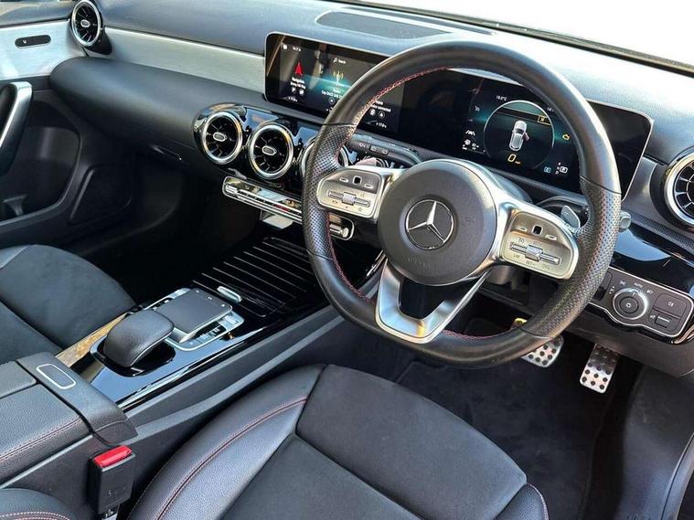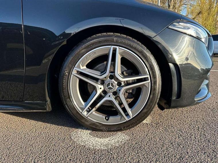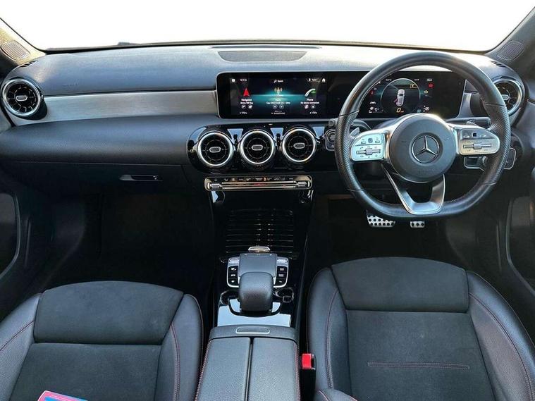 10.25" media display, 180 degree rear view camera with parking guidelines, 7" colour screen in instrument panel, Active lane keep assist, Active park assist with parktronic system including front and rear parking sensors, Attention assist, Brake pad wear indicator warning light, Direct steering, Direction indicators with lane change function, DYNAMIC SELECT with a choice of driving modes (ECO, Comfort, Sport, Sport+ and Individual), Fluid level warning indicator for fuel, oil, coolant and washer fluid, Hard-disk navigation, Lamp failure indicator, Mercedes me connect including emergency call system, accident recovery, breakdown and maintenance management, Outside temperature gauge, Radio aerial integrated into roof spoiler, Service indicator (ASSYST), Speed sensitive power steering, Stop/start system, Trip computer, Voice activation, Lowered comfort suspension, DAB Digital radio, Dual bluetooth interface, 2 USB ports (type C), MBUX multimedia system with DAB digital radio and touchpad including satellite navigation, Active aerodynamics with AIRPANEL in the front apron, Adaptive brake lights, AMG front, rear apron and side skirts, Blue tinted glass, Body colour bumpers, Body colour door handles, Body colour side skirt, Body coloured door mirrors, Chrome beltline trim, Diamond radiator grille with chrome pins and silver louvre + chrome insert, Electric adjustable and heated door mirrors with integrated LED side indicators, Electric front windows, Electric rear windows, Exhaust system - Twin trapezoidal tailpipes in polished stainless steel, Headlamp assist automatic headlamp activation, Heated glass rear windscreen + timer control, LED high performance headlamps with integrated LED daytime running lights, LED tail lamp, LED third brake light, Rain sensor windscreen wipers, Rear fog lights, Rear wiper, 12V socket, 3 Spoke flat bottom leather multi function steering wheel with perforated leather in grip area, 40:20:40 split folding rear seats, Air vents surround and cruciform nozzle in silver chrome, AMG floor mats with red stitching, Artico man-made leather/Microfibre Dinamica upholstery with red contrast stitching, Auto Mercedes-Benz child seat recognition sensor, Black roof lining, Brushed stainless steel sports pedals with rubber studs, Controller on centre console with chrome surround, Cup holder and stowage compartment lighting, Front centre armrest with storage compartment, Front door sills with Mercedes Benz lettering, Front doors with ambient and signal light, Front footwell lights, Front reading lamps, Front seat backs luggage nets, Front seat cushion length adjustment, Front signal exit lamp, Front vanity lights, Gearshift paddles on steering wheel, Handle recess/closing light, Heated front seats, Height/reach adjustable steering column, Illuminated glovebox, ISOFIX Child seat top tethers and anchor fixings, Load securing rings in luggage compartment, Luggage compartment cover, Manual height adjustable front seats, Oddments tray lighting, Rear head restraints, Rear Reading Lamps, Seat occupancy sensor for front passenger seat, Sports seats with integrated headrests, Storage compartment under load area floor, Sunvisors with illuminated vanity mirrors, Touchpad, Touchpad illumination, Twin front cupholders, Two zone thermotronic luxury automatic climate control, Mirror package - A Class, Seat comfort pack - A Class, 3 rear 3 point seatbelts, ABS with Brake Assist, Active bonnet, Adaptive brake assist with hold function and hill start assist, Black seatbelts, Brake calipers with Mercedes-Benz lettering + perforated brake discs, Childproof locks manually operated for rear doors and electrically operated for rear power windows, Crash responsive emergency lighting, Driver and passenger head and side airbags, Drivers knee airbag, Dual stage driver/passenger airbags, Electronic parking brake, ESP curve dynamic assist, ESP with ASR, Front and rear seatbelt reminder, Tyre pressure monitoring system, Warning triangle and first aid kit, Window airbags, Alarm system/interior protection/immobiliser, Keyless Go, Remote central locking and crash sensor with emergency opening function, 18" AMG 5 twin spoke light alloy wheels in titanium grey with highsheen finish, Tirefit sealant kit,