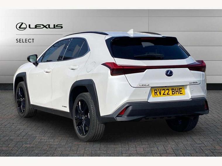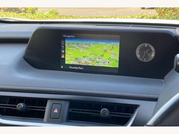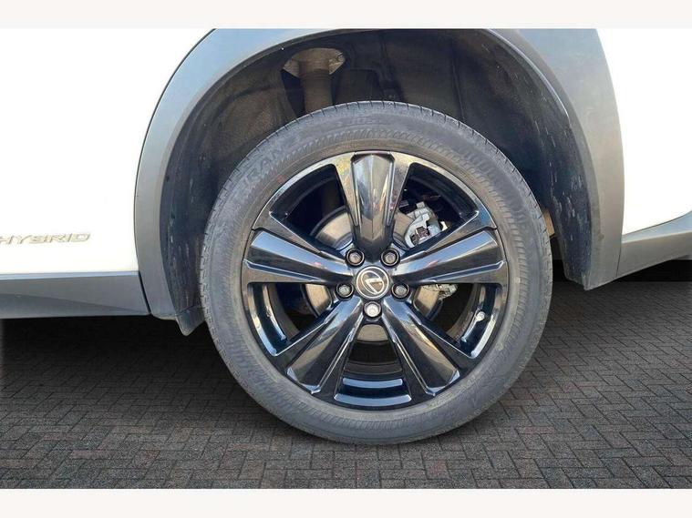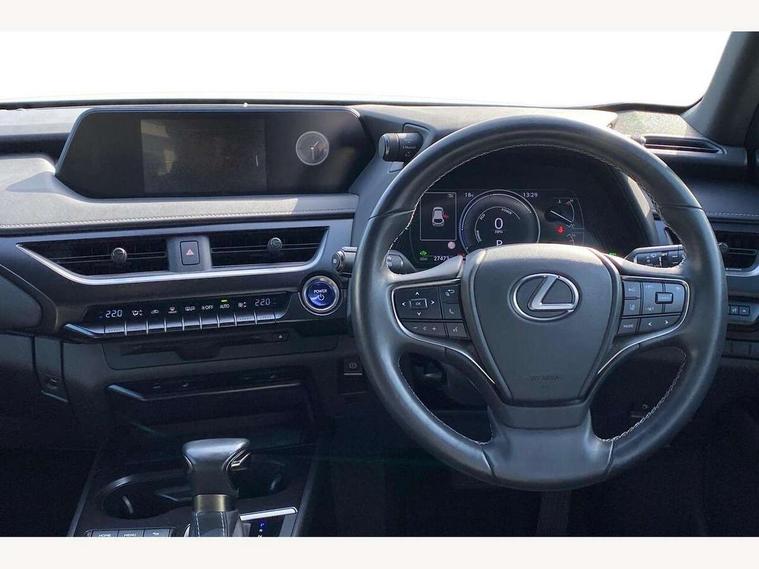 4 driving modes EV/Eco/Normal/Sport, 7" Lexus media display, 7" TFT instrument cluster, Analogue clock with GPS function, Apple car play/Android Auto, Compatible mobile phone bluetooth with audio streaming, E-call, Electric power steering (EPS) with speed sensitive features, Lane change flasher function, Lexus link connected services, Lexus navigation system, Lexus safety systems + includes dynamic radar cruise control, pre collision system day and night, lane tracing assist, road sign assist, Push button start, Remote touch interface, Reversing camera with back guide lines, Trip computer, Vehicle Dynamics Integrated Management (VDIM), Vehicle Stability Control (VSC), 2 front USB and 2 rear USB charging points, 6 speakers, AM/FM and DAB radio, AUX socket with VTR compatibility, CD player, Acoustic windscreen, Aero stabilising arch mouldings, Aero stabilising rear lights, Aero ventilated wheels, Aluminium roof rails, Bi-LED (low and high beam) headlights with Auto High Beam (AHB), Body adhesive, laser screw welding and laser brazed roof structure, Electric adjustable/heated door mirrors, Front and rear one touch power windows, with anti-jam protection, Headlight cleaners, LED daytime running lights, LED front and rear fog lights, LED tail lights, Light green UV glass, Rain sensor windscreen wipers, Rear wiper, Shark fin roof aerial, Single hidden exhaust pipe, Towing preparation, 12V accessory port centre console and luggage compartment, 2 cup holders in the front and rear centre console, 2 x folding shopping bag hooks in boot, 2 x sun visors with vanity mirror and lamp, 4 x tie down hooks in the boot, 5 headrests, 6 way driver and passenger manually adjustable front seats, 60/40 split folding rear seat, Card holder installed in driver and passengers sun visors, Centre armrest with storage, Driver and passenger door pocket, Dual zone electronic climate control + Nano-E humidity sensor, Glovebox, Leather gear lever, Leather steering wheel, LED interior illumination, Map pockets in the rear of passenger's front seat, Premium fabric upholstery, Rear air vents with 2 USB chargers, Rear armrest with 2 cupholders, Storage tray under audio panel, Textile carpet mats, Tilt/reach adjustable steering column, Under deck storage, Under desk side storage, 2 x Isofix child rear seat restraints, 3x3 point rear seatbelts, Anti-lock braking system (ABS), BAS (Brake Assist System), Driver and front passenger 2 stage airbag, Driver and front passenger knee airbag, Driver/front passenger side airbags, EBD - Electronic brakeforce distribution, ECB (Electronically Controlled Brake System), Electric parking brake, Front adjustable seatbelt anchor points, Front and rear curtain shield airbags, Front outer seatbelt+pre-tensioners, force limiter+tension reduction: 3-point with active safety link to PCS, Hill start assist control (HAC), Passenger airbag cut-off device, Rear outer seatbelt+pre-tensioners, force limiter+tension reduction: 3-point with active safety link to PCS, Centre belt w/o pre tensioner+force limiter, Secondary Collision Brake (SCB), TRC (Traction Control), Tyre pressure warning, 2 x remote key fobs, Anti theft system : Alarm instruction sensor, glass breakage sensor and engine immobiliser, Locking wheel nuts, Remote central door locking, Speed sensitive auto door locking, Two motion door lock with double lock, VIN Window etching, 17" alloy wheels, Tyre repair kit,