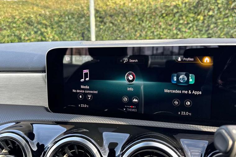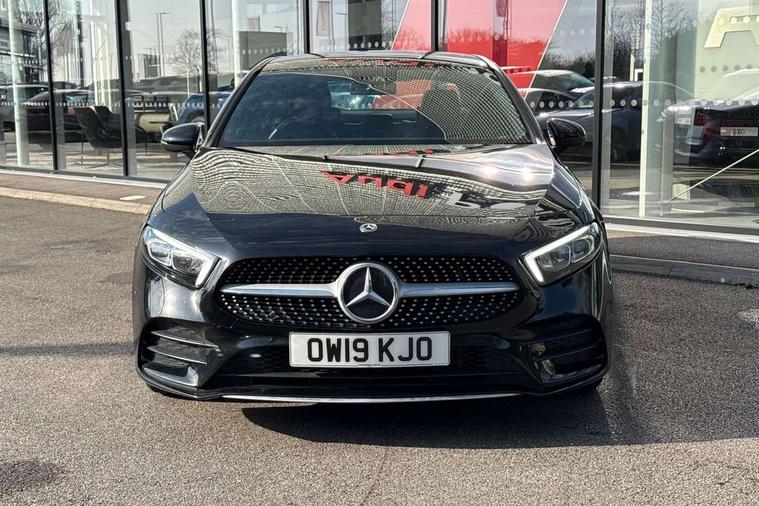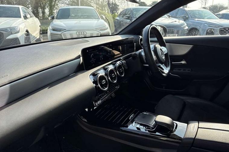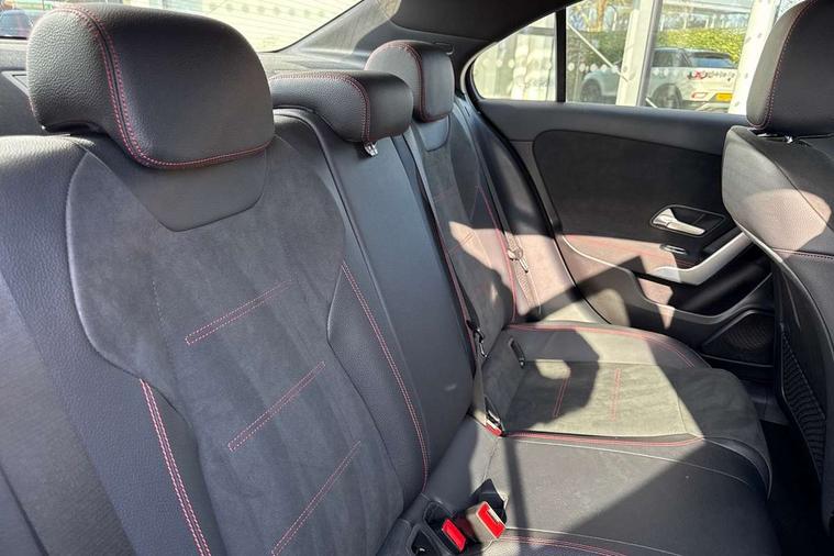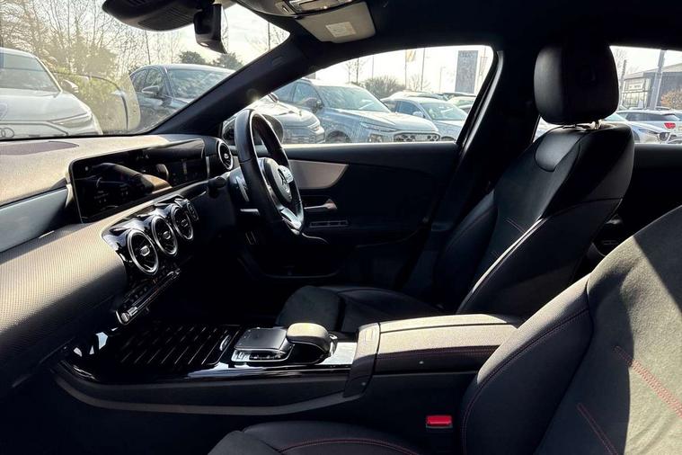 180 degree rear view camera with parking guidelines, 7" colour screen in instrument panel, Active lane keep assist, Active park assist with parktronic system including front and rear parking sensors, Attention assist, Brake pad wear indicator warning light, Direct steering, DYNAMIC SELECT with a choice of driving modes (ECO, Comfort, Sport and Individual), ECO start/stop function, Fluid level warning indicator for fuel, oil, coolant and washer fluid, Hard-disk navigation, Hey Mercedes Voice activation, Lamp failure indicator, MBUX multimedia system with DAB digital radio and touchpad including satellite navigation, Mercedes me connect including emergency call system, accident recovery, breakdown management and maintenance, Outside temperature gauge, Radio aerial integrated into front and rear windshields, Service indicator (ASSYST), Trip computer, Lowered comfort suspension, DAB Digital radio, Dual bluetooth interface, 2 USB ports (type C), 4 Electric Front and Rear windows, Active aerodynamics with AIRPANEL in the front apron, Adaptive brake lights, AMG front, rear apron and side skirts, Body colour bumpers, Body colour door handles, Body colour side skirt, Body coloured door mirrors, Chrome beltline trim, Diamond radiator grille with chrome pins and silver louvre + chrome insert, Electric adjustable and heated door mirrors with integrated LED side indicators, Exhaust system - Twin trapezoidal tailpipes in polished stainless steel, Headlamp assist automatic headlamp activation, Heated glass rear windscreen + timer control, LED high performance headlamps with integrated LED daytime running lights, LED tail lamp, LED third brake light, Privacy glass, Rain sensor windscreen wipers, Rear fog lights, 3 Spoke flat bottom leather multi function steering wheel with perforated leather in grip area, 40:20:40 split folding rear seats, Air vents surround and cruciform nozzle in silver chrome, AMG floor mats with red stitching, Artico man-made leather/Microfibre Dinamica upholstery with red contrast stitching, Auto Mercedes-Benz child seat recognition sensor, Black roof lining, Brushed stainless steel sports pedals with rubber studs, Controller on centre console with chrome surround, Cup holder and stowage compartment lighting, Freight packaging with tie-down hooks, Front centre armrest with storage compartment, Front door sills with Mercedes benz lettering, Front doors with ambient and signal light, Front footwell lights, Front reading lamps in left and right console downlighter, Front seat backs luggage nets, Front seat cushion length adjustment, Front signal exit lamp, Front vanity lights, Gearshift paddles on steering wheel, Handle recess/closing light, Heated front seats, Height/reach adjustable steering column, Illuminated glove compartment stowage, ISOFIX Child seat top tethers and anchor fixings, Luggage compartment cover, Manual height adjustable front seats, Oddments tray lighting, Rear head restraints, Rear Reading Lamps, Seat occupancy sensor for front passenger seat, Spectacles compartment for driver, Sports seats with adjustable head restraints, Stowage compartment in centre console with retractable cover, Sunvisors with illuminated vanity mirrors, Touchpad, Touchpad illumination, Twin front cupholders, Two zone thermotronic luxury automatic climate control, Light and sight pack - A Class, Mirror package - A Class, Seat comfort pack - A Class, 3 rear 3 point seatbelts, ABS with Brake Assist, Active bonnet, Adaptive brake assist with hold function and hill start assist, Black seatbelts, Childproof locks manually operated for rear doors and electrically operated for rear power windows, Crash responsive emergency lighting, Driver and passenger head and side airbags, Drivers knee airbag, Dual stage driver/passenger airbags, Electronic parking brake, ESP curve dynamic assist, ESP with ASR, Front and rear seatbelt reminder, Front brake callipers with Mercedes Benz lettering, Tyre pressure monitoring system, Warning triangle and first aid kit, Window airbags, Alarm system/interior protection/immobiliser, Keyless Go, Remote central locking and crash sensor with emergency opening function, 18" AMG 5 twin spoke light alloy wheels in titanium grey with highsheen finish, Summer tyres, Tirefit sealant kit,