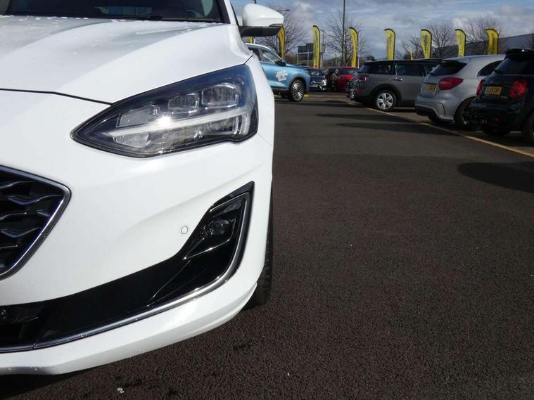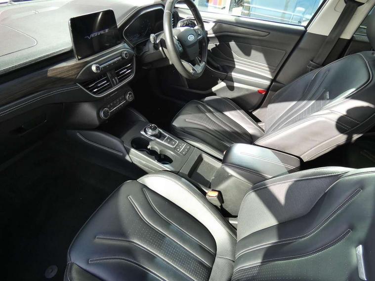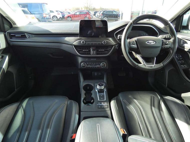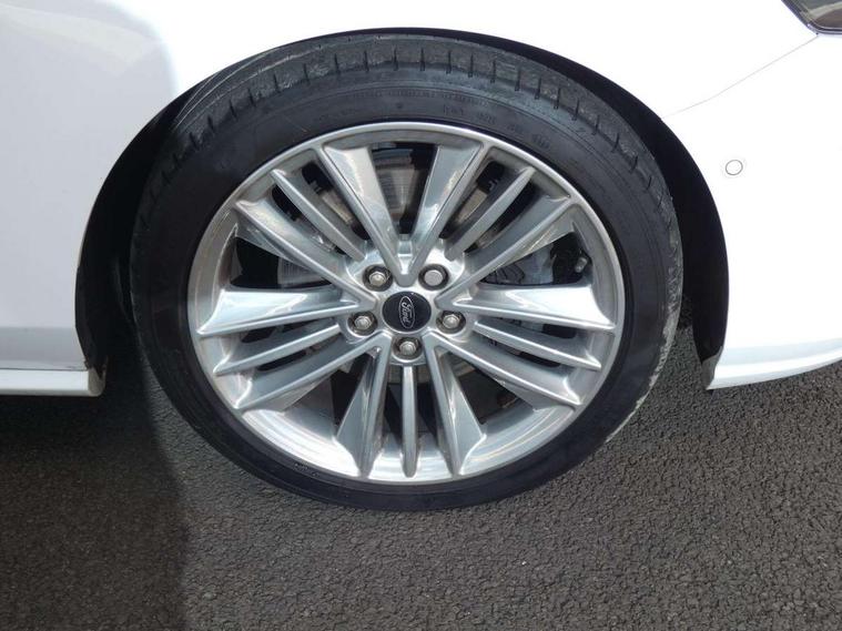 Bluetooth system, Digital clock, Easy fuel capless refuelling system, Eco mode, Ford pass connect, Ford SYNC 3 nav system with DAB radio, 8" colour touch screen, voice control, app link, Apple car play/Android auto and 4.2" TFT coloured cluster, Front and rear parking sensors, Head up Display, Intelligent speed assist, PAS, Rear wide view camera, Rotary gear shift dial, Trip computer, Diesel particulate filter, 2 USB ports, Aux input, B&O Audio system with 360 degree sound, 10 speakers, 675 watts of total amplifier power and digital sound processor, 'Quickclear' heated windscreen/heated washer jets, Auto dimming rear view mirror, Auto headlamps (on/off), Automatic rain sensing wipers, Body coloured bumpers, Body coloured door handles, Body coloured electrically operated and heated door mirrors with side indicators, Door edge protectors, Electrically operated front and rear windows with one touch opening and closing, Front variable intermittent wipers with electric wash, Heated rear window, LED daytime running lamp, LED front fog lamps with cornering function, LED rear lamps, Polished twin tailpipe, Power folding door mirrors with puddle lights, Rear privacy glass, Tailgate wash/wipe, Unique door and instrument panel inserts, Vignale front grille and body styling, 3 spoke leather trimmed steering wheel with integrated audio controls, 6 way power adjustable driver seat, 60/40 split back and cushion rear seats with 2 height adjustable headrests, Ambient LED multi colour interior lighting, Centre console with sliding front armrest, Dual zone electronic air temperature control, Front passenger seat manual height and lumbar adjust, Front/rear floor mats, Heated front seats, Heated steering wheel, Height adjustable front headrests, Isofix child seat preparation, Leather upholstery, Load through ski hatch, Paddle shift controls, Reach + rake adjustable steering column, Rear centre headrest, Soft console knee pads, ABS+Electronic Brake force Distribution, Auto hold function, Driver airbag, Electronic parking brake, Electronic stability control, Front and rear seatbelt reminder, Front inertia reel height adjustable seatbelts with pre-tensioners, Front passenger airbag, Front side airbags, Hill start assist, Passenger airbag deactivate switch, Post collision braking, Pre collision assist with autonomous emergency braking and pedestrian/cyclist detection, Side curtain airbags, Three rear inertia reel lap/diagonal seatbelts, Tyre pressure monitoring system, Ford keyfree system with Keyless entry and keyless start, MyKey system, Remote central locking & engine immobiliser, Thatcham category 1 alarm, 18" 5x3 spoke liquid aluminium alloy wheels, Mini steel spare wheel,