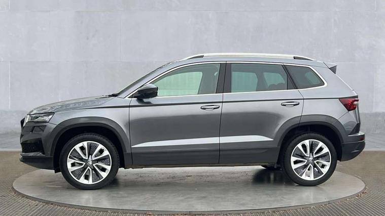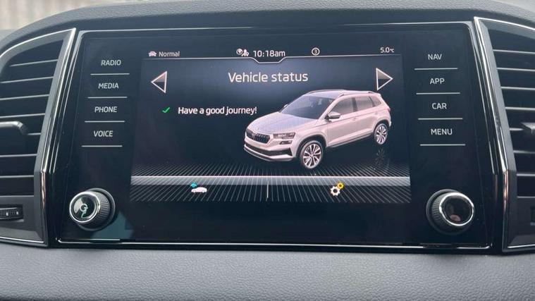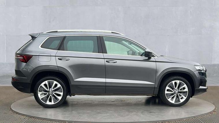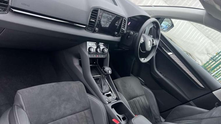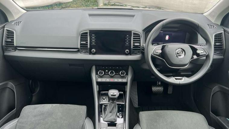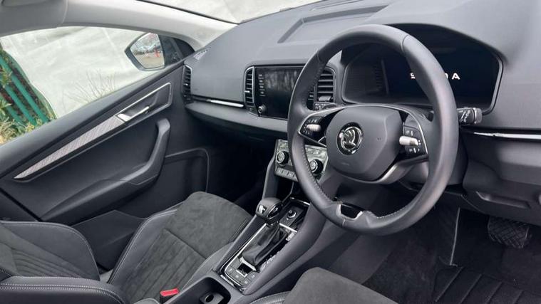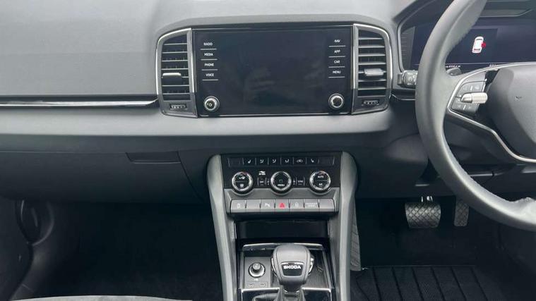 8" Digital display, Advanced driver attention and drowsiness monitor, Emergency services call system, Outside temperature gauge, Sensor for driver assistance systems, Service interval indicator, SmartLink wireless for Apple and wired for Android, Start/stop system with regenerative braking, USB C Port x 2 in front centre console, Virtual Cockpit - 10.25" digital display, Wireless smartphone charging, DAB radio with Bluetooth, USB connection, Acoustic glass, Aero front windscreen wipers with intermittent function, Auto dimming rear view mirror with light and rain sensors, Black electric window control buttons, Body colour door mirrors and handles, Electric front and rear windows with child proof lock, Heated rear windscreen, LED daytime running lights, LED rear lights with high functionality welcome effect and dynamic indicators, Light assistant (coming/leaving home/tunnel light), Plastic scuff plates in door apertures, Privacy glass, Rear side wing doors, Rear spoiler, Rear window wiper with washer system and intermittent control, Safety reflectors on front doors, Third brake light, 1.5 litre bottle holders in driver and front passenger door panels, 12V socket in boot, 12v socket in front centre armrest with storage compartment and rear air vents, 2 spoke leather heated multifunction steering wheel with DSG paddles, 2 x Tablet holder, 3 rear height adjustable headrests, 3 seat bench in 2nd row, 4 foldable roof handles with rear coat hooks, Black floor carpet, Chrome inner door handles, Foldable hooks in the boot, Front head restraints, Height adjustable front three point seats belts with tensioners, Height/reach adjust steering wheel, Ice scraper, Illuminated glovebox, Illuminated luggage compartment, Interior noise suppression, Isofix child seat preparation for front passenger seat, Isofix child seat preparation outer rear, Manual lumbar support for front seats, Pearl grey interior ceiling, Pen holder, Pollen filter, Rear boot cover, Rear reading lights, Rubbish bin door, Safety vest holder, Single front passenger seat, Storage box in upper central dashboard closed, Sunvisors with illuminated vanity mirrors, Textile floor mats, Ticket holder, Design Pack - Karoq, Non Smokers pack, Parking pack - Karoq, Automatic door unlocking in case of crash, Automatic fuel cut off in case of crash, Driver airbag, Electronic parking brake with auto hold function, Emergency rear braking signal, ESC (incl. ABS+MSR+ASR+EDS+HBA+DSR+RBS+MKB), Front side airbags, Head airbags, Hill hold control, Knee airbags, Passenger airbag with switch-off function, Pedestrian monitor, Seatbelt reminder signalisation and pretensioner for all seats, Three point seatbelts rear, Two tone horn, Tyre pressure monitor, Alarm with interior monitoring, back up horn and tilt sensor with safe function, Electronic engine immobiliser, Keyless entry and start/stop, Remote central locking with 2 remote folding keys, Black centre console, Chrome framed air vents, Satin black dashboard, Anti-theft wheel bolts protection, Breakdown and tool kit,