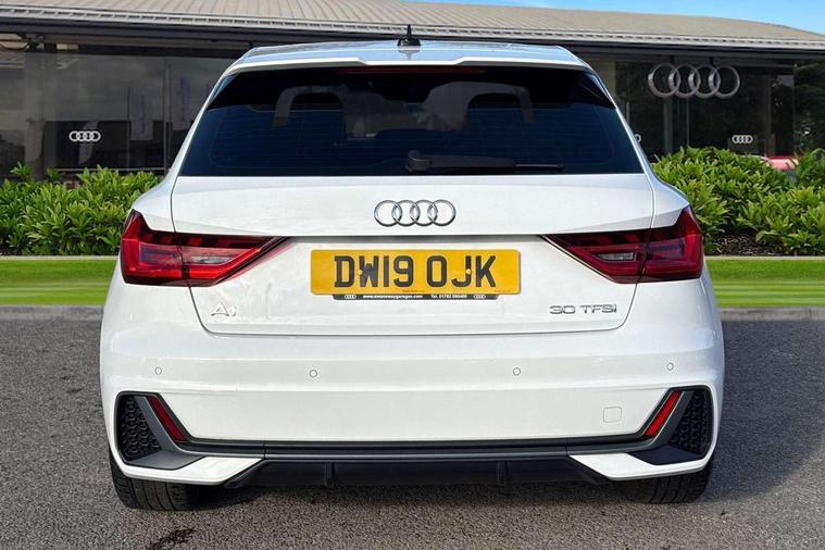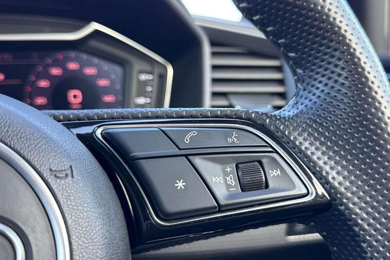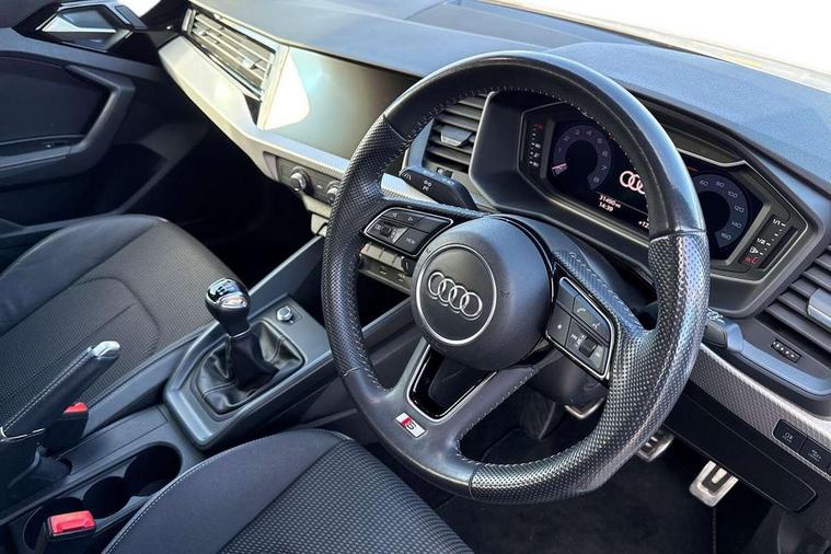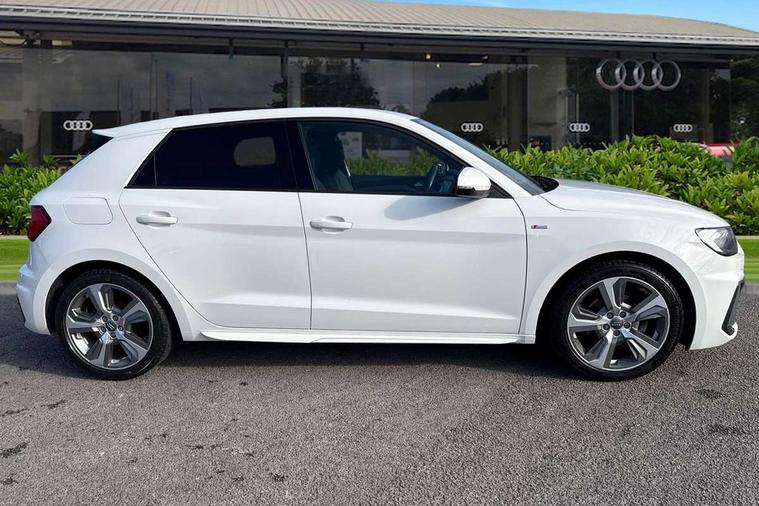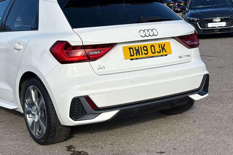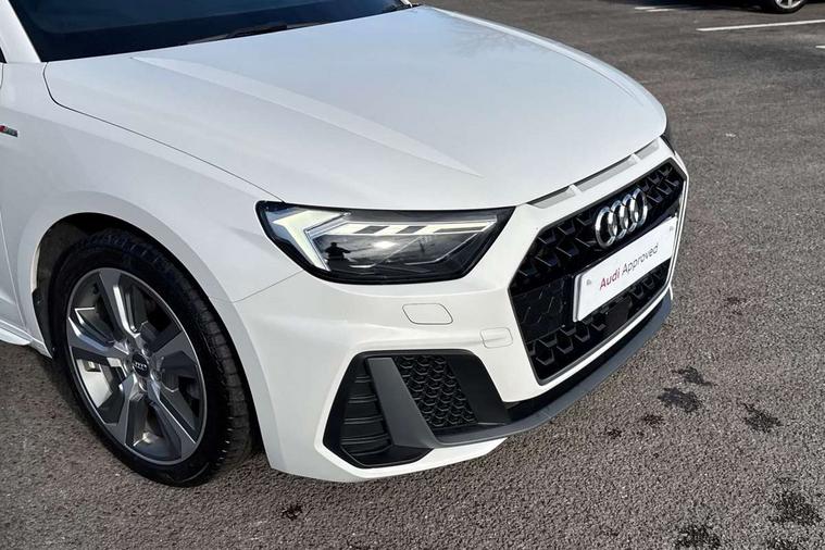 10.25" Digital instrument cluster display screen, Audi connect safety emergency and service including E-call, Audi drive select, Audi smartphone interface, Automatic start/stop system, Bluetooth interface, Driver's information system, Electromechanical power steering, Lane departure warning system, Service interval indicator, Speed limiter, Voice control system, Washer fluid level indicator, Sports suspension, 1 x SDXC card reader, 1 x USB type C and 1 USB type A charging points, Audi music interface, Bluetooth audio streaming, DAB Digital radio, MMI radio plus with 8.8" colour MMI display screen and MMI touch, Auto dimming rear view mirror, Body colour side sill mouldings, Body coloured bumpers, Body coloured door mirrors, Door sills with aluminium inlays and S Line logo, Electric front and rear windows, Front side air inlets in grained matt black and C frame in titanium black, Heat insulating glass windscreen and side windows, Heated rear windscreen, LED headlights with LED rear lights + dynamic rear indicators, Matt aluminium silver tailpipe trim, Matt black radiator grille frame, Matt platinum grey in front spoiler clip and rear diffuser clip, Rain and light sensors, Rear fog lights, Rear wiper, S line badges on front wings, S line exterior bumpers, S line roof spoiler, Side air inlet frames titanium black, Side front spoiler lips in grained matt black, 12V socket in centre console with two cup holders, 3 rear seats, Black cloth headlining, Driver and passenger seat with manual height adjust with forward and backwards adjustment, Front and rear black floor mats with contrast stitching in fine silver, Front head restraints, Height and reach adjustable steering wheel, ISOFIX child seat mounting in front passenger and rear outer seats, Leather gear knob with aluminium trim, Leatherette handbrake grip, Luggage compartment light with front and rear reading lights, Lumbar adjustment for front seats, Rear head restraints, Split folding rear seats, Stainless steel pedals, 3x3 point rear seatbelts, Audi pre-sense front with pedestrain and cyclist recognition, Brake assist function, Driver and front passenger airbag with front side and head airbags, Electronic Stability Control including ABS, EBD, ASR and EDL, Front and rear seatbelt reminder, Front passenger airbag deactivation switch, Hill hold assist, Seatbelt height adjustment for front seats, Seatbelt monitoring, Tyre pressure warning light, Warning triangle and first aid kit, Anti theft alarm, Anti theft wheel bolts and loose wheel warning, Immobiliser, Remote central locking with 2 remote folding keys, Aluminium trim for control switches, air vents and digital instrument cluster, Silver grey inlays polygon structure in diamond paint finish, Structured grey accent areas including air vents, door handle recesses and centre console in quartz paint finish,