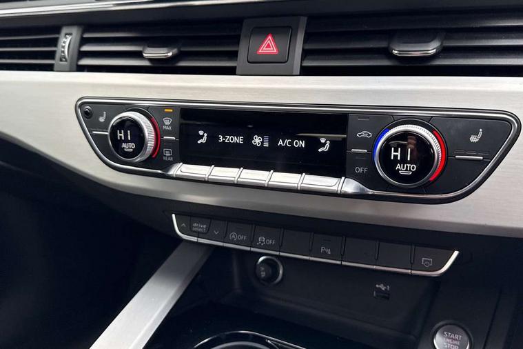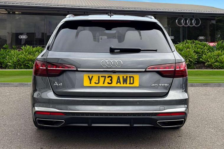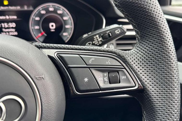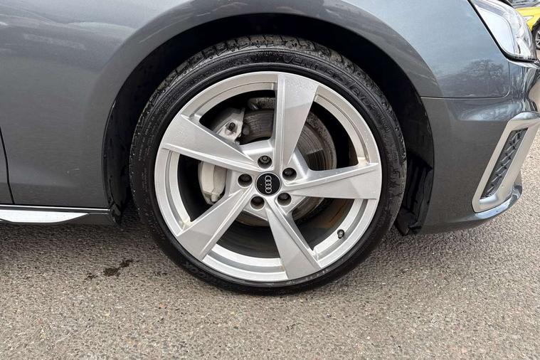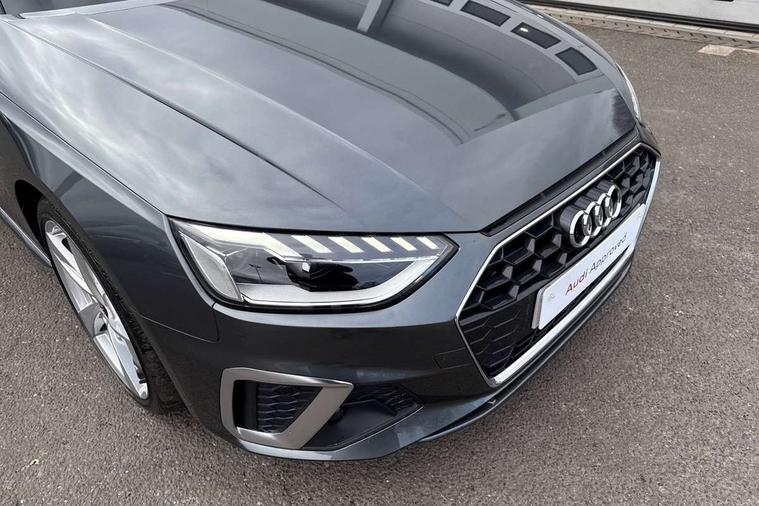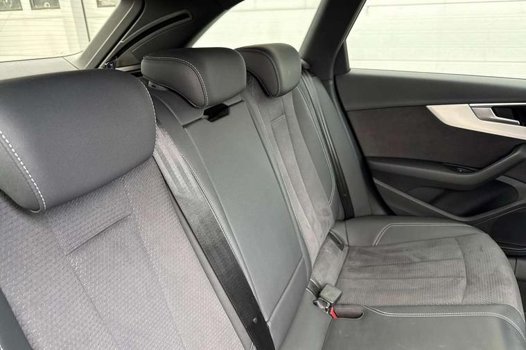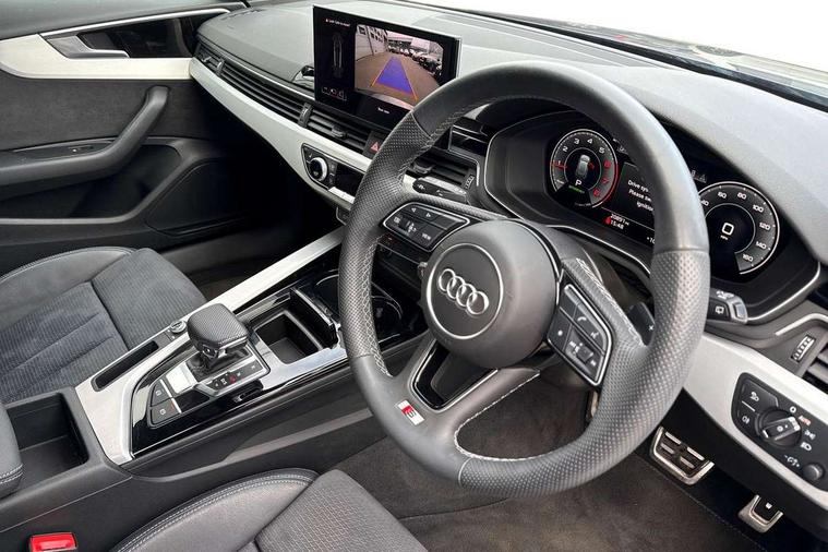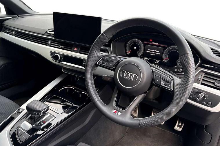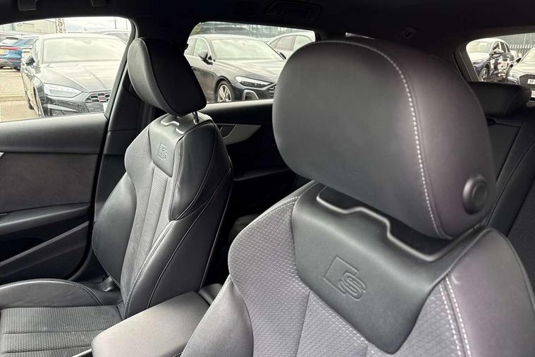 Audi connect safety and service (e-call), Audi drive select, Audi smartphone interface, Audi virtual cockpit, Automatic start-stop system with coasting functionality and efficiency programme, Bluetooth interface, Camera based traffic sign recognition, Electromechanical power steering, Email, calendar and text messages displayed via MMI, Front and rear parking sensors, Lane departure warning, MMI Navigation plus with MMI touch includes 10.1" high resolution colour MMI display, 3D map, Power operated tailgate, Rear view camera, Voice control system, 54 litre fuel tank, Sports suspension lowered by 23mm, 2 USB charging ports, 8 passive loudspeakers, DAB digital radio reception, Aluminium roof rails, Auto dimming rear view mirror, Body colour door handles, Body colour front spoiler lip, Body colour side sill trim, Body coloured door mirrors, Electric adjustable/heated/folding door mirrors with auto dimming, Grained matt black side air inlets with matt aluminium silver inlay, High beam assistant, Honeycomb structure radiator grille in grained matt black, LED headlights with LED rear lights + dynamic rear indicators + headlight adjustment and high beam, turning light + LED daytime running lights, LED third brake light, Matt aluminium silver tailpipe trim, Privacy glass, Rain and light sensors, Rear side wing doors, Rear wiper, S Line badges on the front wings, S line front and rear bumpers with side skirts, S Line rear diffuser in matt anthracite black with trim strip in matt aluminium silver, S Line roof edge spoiler, Variable intermittent front wash/wipe, Windscreen with acoustic glazing, 3 spoke high multi-function sports leather steering wheel grips in perforated leather with S badging including paddle shift, 4 way electric lumbar support for driver and front passenger, 40/20/40 split folding 3 rear seat bench in 3 parts with rear centre armrest, Black carpets, Black cloth headlining, Black perforated leather gearknob, Contrast stitching on seats, steering wheel and gear lever gaiter, Deluxe 3 zone electronic climate control, Electric load area cover, Front and rear head restraints, Front centre armrest, Heated front seats, Illuminated door sill trims with S logo, ISOFIX child seat mounting and top tether, Manual seat adjustment, Single front passenger seat, Stainless steel pedals and foot rest, High gloss package - A4, LED Interior light pack - A4/S4, 3 rear seatbelts, 6 airbags - Driver, front passenger, curtain and side windows, Attention and drowsiness assist, Electronic Stabilisation Control (ESC) including ABS, ASR and EDL, Hill hold assist, Multi collision brake assist, Pop-up bonnet for pedestrian protection, Pre sense city, Rear door child safety locks, Seatbelt monitoring, Warning triangle and first aid kit, Anti theft alarm, Anti theft wheel bolts, Central locking, Keyless Go, Matt brushed aluminium inlays, Tool kit, Tyre repair kit,