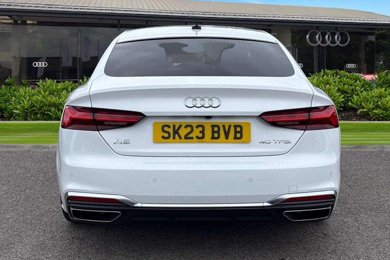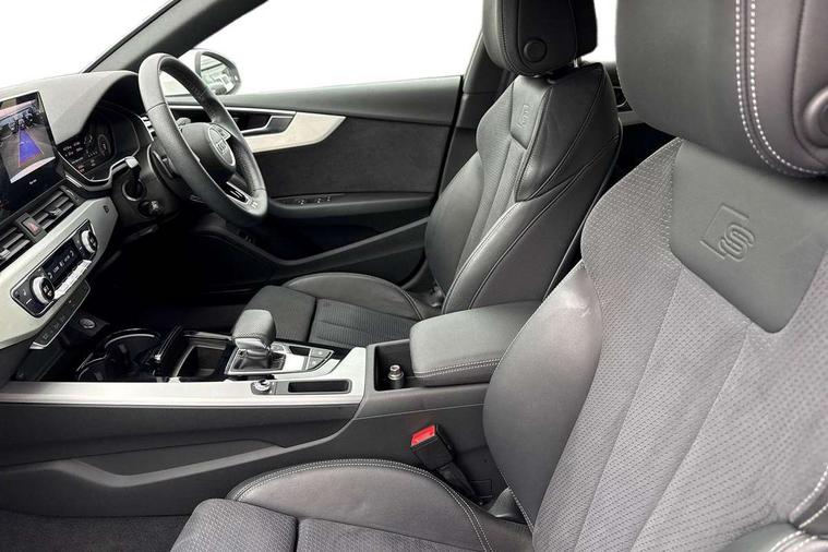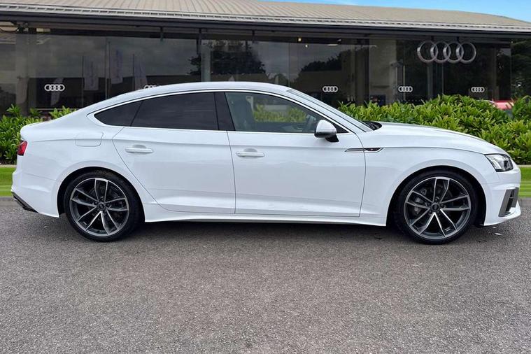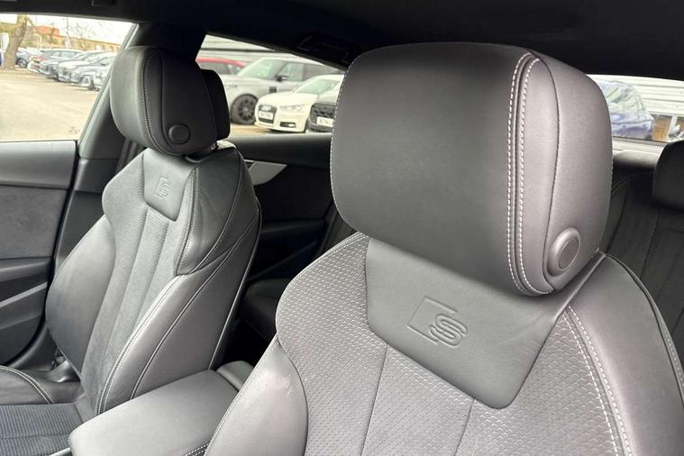 Audi connect safety and service (e-call), Audi connect with Amazon Alexa Integration, Audi drive select (Auto, Comfort, Dynamic, Efficiency and Individual), Audi parking system plus with front and rear sensors, Audi smartphone interface, Audi virtual cockpit - 12.3" full colour digital instrument cluster, vehicle/engine speed, Radio/media information+Driver assistance systems, Automatic start-stop system with coasting functionality and efficiency programme, Bluetooth interface, Electro-mechanical power steering, Email, calendar and text messages displayed via MMI, MMI nav+ with MMI touch - 10.1" high resolution MMI display, touch sensitive, 3D map, route/country info, dynamic route guide, personal route assist, Power operated tailgate, Rear view camera, Service interval indicator, Voice control system, Sports suspension lowered by 23mm, 8 passive loudspeakers, CD player, DAB digital radio reception, Two additional USB ports for rear passenger in rear centre console, Two SDXC card slots, Audi matrix LED headlights with LED rear lights + dynamic front and rear indicators, Auto dimming door mirrors, Auto dimming rear view mirror, Body colour bumpers, Body colour door handles, Body colour front spoiler lip, Body colour side sill trim, Body coloured door mirrors, Electric adjustable heated door mirrors, Electric folding door mirrors, Electric front windows, Front fog lights, Honeycomb structure radiator grille in grained matt black, Kerb-view function for passenger side, LED daytime running lights, LED side indicator lights integrated into door mirrors, LED third brake light, Matt aluminium silver tailpipe trim, Privacy glass, Rain and light sensors, Rear side wing doors, S line badges on front wings, S line front and rear bumpers with side skirts, S Line rear diffuser in matt anthracite black with trim strip in matt aluminium silver, Side air inlets in grained matt black with matt aluminium silver inlay, Variable front intermittent wipers, Windscreen with acoustic glazing, 3 seat bench in 2nd row, 3 spoke high multifunction leather sport steering wheel with paddle shfit and S badging perforated leather grips, 4 way electric lumbar support for driver and front passenger, 40/20/40 split folding 3 seater rear bench seat, Adjustable steering column, Black cloth headlining, Black perforated leather gearknob, Contrast stitching on seats, steering wheel and gear lever gaiter, Deluxe 3 zone electronic climate control, Front centre armrest, Front head restraints, Front/rear floor mats, Heated front seats, Illuminated door sill trim with S logo, ISOFIX child seat mounting and top tether, Luggage compartment mat, Manual seat adjustment, Rear centre armrest, Rear headrests, Single front passenger seat, Stainless steel pedals, Sunvisors with vanity mirrors, LED interior light pack - A5/RS5, 3x3 point rear seatbelts, 6 airbags - Driver, front passenger, curtain and side airbags, Electromechanical parking brake, Electronic Stabilisation Control (ESC) including ABS, ASR and EDL, Front passenger airbag deactivation, Height adjustable front seatbelts, Hill hold assist, Manual child lock in rear doors, Multi collision brake assist, Pop-up bonnet for pedestrian protection, Pre sense city, Seatbelt monitoring, Tyre pressure warning, Variable restraint system, Warning triangle and first aid kit, Anti theft alarm system, Anti theft wheel bolts, Immobiliser, Keyless Go, Remote central locking, Matt brushed aluminium inlays, Tool kit, Tyre repair kit,