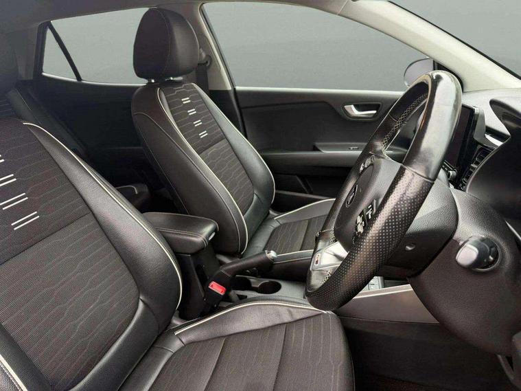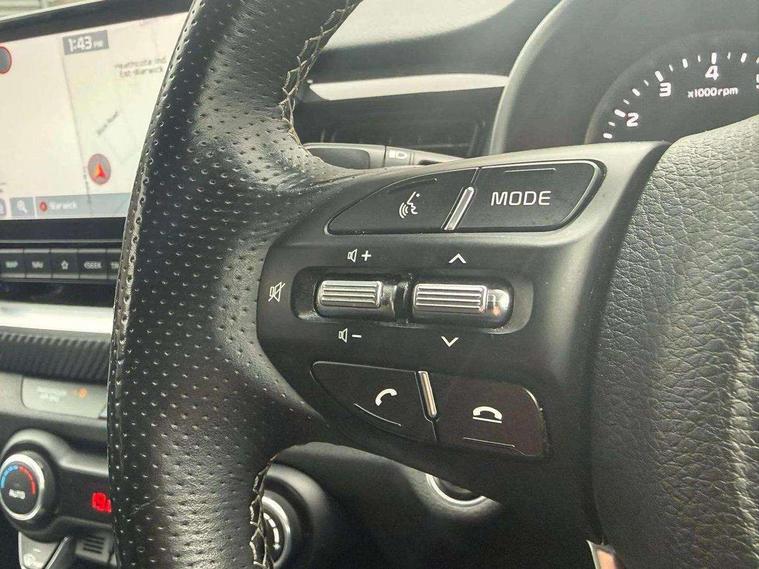 4.2" supervision colour cluster display, 8" Touchscreen navigation with telematics, Android auto with voice control, Apple car play with voice control, Blind spot collision warning, Cruise control + speed limiter, Drive mode selector, Electric power steering, Emergency stop signalling system, External temperature display, Forward Collision-Avoidance Assist (FCA) - City/Pedestrian/Cyclist, Front parking sensors, Intelligent speed limit assist, Kia connected services featuring TomTom live, Lane keeping assist system (LKAS), Driver attention warning (DAW) and High beam assist (HBA), Rear parking sensor, Reversing camera system, Trip computer, Intelligent Stop and Go, Audio system with 6 speakers, Bluetooth with music streaming, Front USB port, Rear USB port, Steering wheel mounted controls, Aero blade type windshield wipers, All round electric windows with drivers auto up/down function, Auto dimming rear view mirror, Automatic defog system, Automatic headlights control, Black side sill, door garnish and wheel arch trims, Black/body colour bumpers, Body coloured exterior door handles, Chrome side window trim, Electrically adjustable/heated/folding door mirrors with LED indicators, Front and rear silver skid plates, Gloss black door mirrors with matt black lower housing, Headlight levelling device, Heated rear window, High gloss black and satin radiator grille, LED Bi-function projection headlights with static bending, LED daytime running lights, LED front fog lights, LED rear combination lights, Privacy glass - Rear windows and tailgate, Rain sensing front wipers, Rear fog lights, Rear wash/wipe, Roof coloured rear spoiler with high mounted braking light, Roof rails, Shark fin antenna, Solar windshield glass, Speed variable front wipers, Two tone paint, Welcome and follow-me home light functionality, Windscreen Washer Level Warning, 12V power point front, 60/40 split folding rear seat, Air filter, All-round height adjustable headrests, Aluminium pedals, Automatic air conditioning, Centre armrest storage box, Centre console with cupholders, D-Cut perforated leather trimmed steering wheel, Dash illumination dimmer switch, Driver's seat height adjuster, Dual Height Luggage Area Floor, Front and centre cabin lights, Front and rear door map pockets with bottle holder, Gear shift indicator, Glovebox illumination, GT-Line cloth/faux leather upholstery, Heated front seats, Heated steering wheel, ISOFIX Child seat top tethers and anchor fixings outer rear seats, Leather trimmed gearshift, Luggage area light, Luggage area parcel shelf, Luggage net, Luggage net with hooks, Overhead console lamp, Overhead console with sunglasses cases, Passenger front seatback pockets, Passenger seat height adjuster, Satin chrome interior door handles, Sunvisors with vanity mirror illumination (Driver and front passenger), Tilt/telescopic adjustable steering wheel, ABS with Electronic Brakeforce Distribution (EBD) and Brake Assist System (BAS), All round 3-point seatbelts, Electronic stability control (ESC) and vehicle stability management (VSM), Front passenger airbag cut-off switch, Front seatbelt pretensioners + load limiters, Height adjustable front seatbelts, Hill start assist control (HAC), Impact sensing auto door unlocking, Rear seat Occupancy alert, Seatbelt reminder warning, Twin curtain airbags, Twin front airbags, Twin front side airbags, Tyre pressure monitoring system, Alarm system, Door deadlocks, Engine immobiliser, Locking wheel nuts, Smart key with engine start/stop button, Speed sensitive auto door locking, Visible vehicle identification number, High gloss black centre fascia, 17" GT-Line alloy wheels, Tyre mobility kit,
