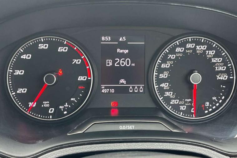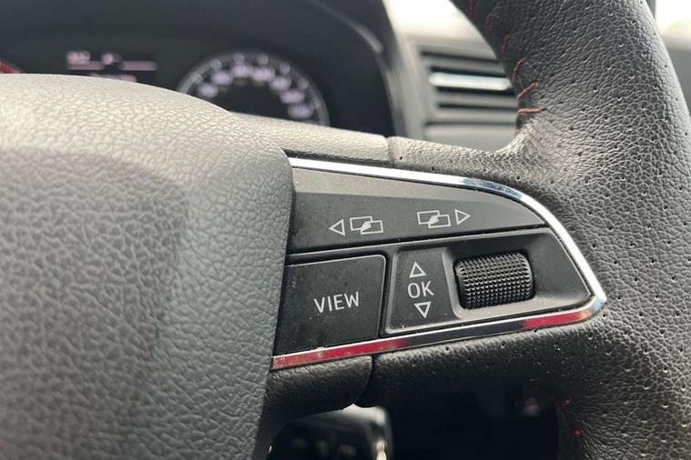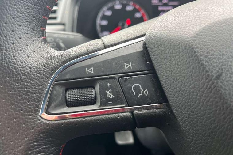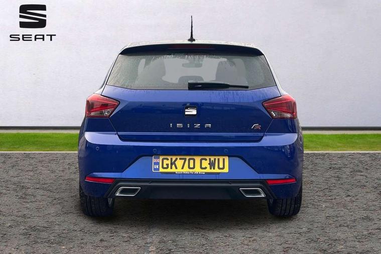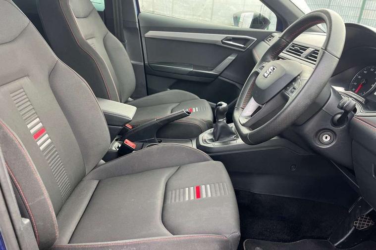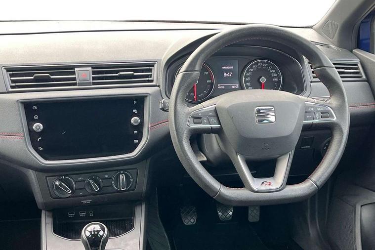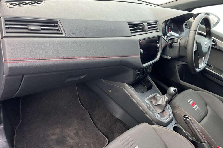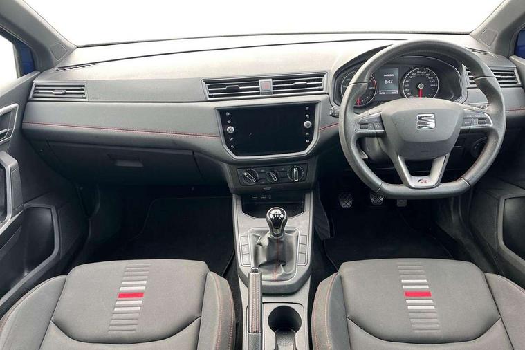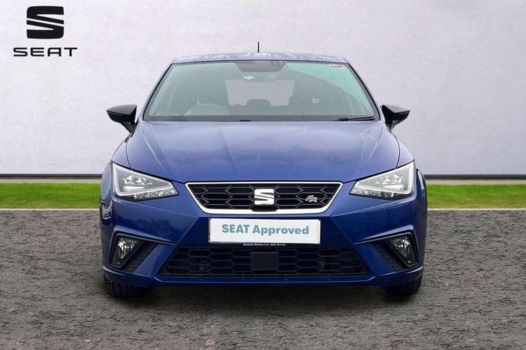 'Lights On' Reminder warning buzzer, Bluetooth Handsfree Phone Connection, Cruise control, Digital clock, Full Link Smartphone Integration with Mirror Link, Apple Car Play, Google Android Auto, Low fuel warning light, Outside temperature gauge, Power Steering, Satellite navigation system with 3D mapping, 8" touch screen, voice control and additional USB port, SEAT Drive profile, SEAT logo boot release, Trip computer, Sports suspension, 6 speakers, Auxiliary input socket, CD player, Digital Audio Broadcast (DAB) Tuner, Radio/MP3 player, SD card slot, SEAT USB media cable, Steering wheel mounted controls, USB port, Anti theft roof antenna, Auto dimming rear view mirror, Automatic headlights, Automatic rain sensing wipers, Body colour bumpers, Body colour door handles, Brilliant black door mirrors, Chrome front grille frame, Chrome grille, Coming/leaving home lighting function, Cornering front fog lights, Dark tinted rear windows, Electric folding door mirrors, Electric front windows, Electric headlight adjustment, Electrically adjustable and heated door mirrors, Exclusive FR rear bumper, Full LED headlights, LED daytime running lights, LED tail lights, Rear fog lights, Twin exhaust pipes, 3 rear headrests, 60/40 split folding rear seat, Air conditioning, Door and steering wheel ice metal decorative inserts, Driver's sunvisor with ticket holder/vanity mirror, Dust/pollen filter, Flat bottomed perforated leather steering wheel with red stitching and FR logo, Front courtesy lights, Front cupholders x 2, Front reading lights, Gear shift indicator, Glovebox, Height adjustable driver's seat, Height adjustable front/rear head restraints, Height adjustable passenger seat, Height/reach adjust steering wheel, Illuminated boot, Instrument lighting with brightness control, Leather dashboard, Leather handbrake, Multi-colour ambient interior lighting, Nora cloth upholstery, Passenger sunvisor, Rear top tether child seat ISOFIX attachment, Sports seats, Full LED headlight pack - Ibiza, 3 point seatbelts on all 3 rear seats, ABS, Active front headrests, Child locks on rear doors, Curtain airbags, Driver/Front Passenger airbags, ESP+EBA, Front assist (AEB), Front passenger airbag deactivation, Front side airbags, Hill hold control, Multi-Collision braking, Seatbelt warning, Tiredness recognition system, Tyre pressure monitoring system, Electronic engine immobiliser, Locking wheel bolts, Remote central locking + deadlocks, Volumetric alarm with back up horn, 17" Dynamic alloy wheels,