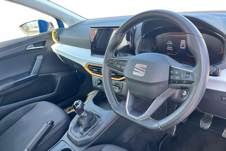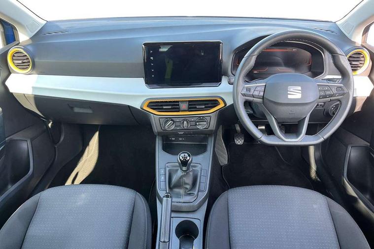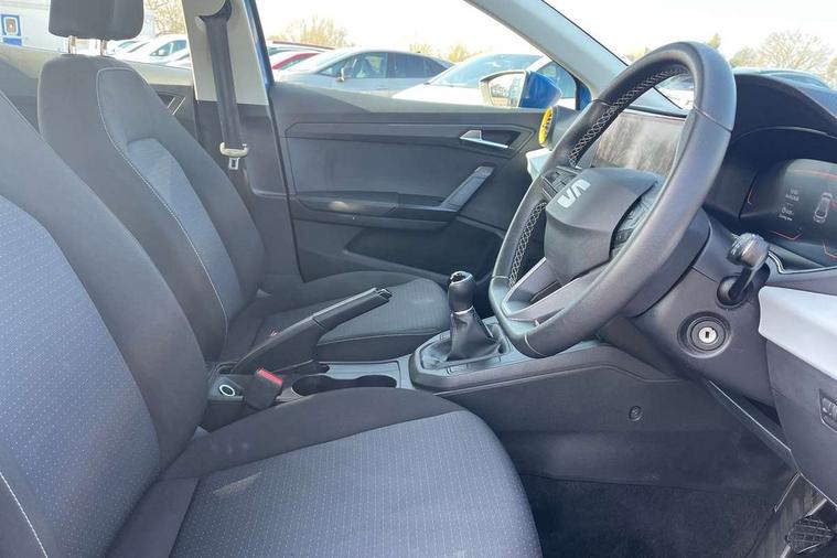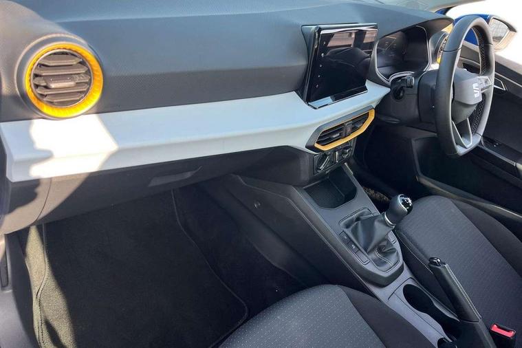 'Lights On' Reminder warning buzzer, 8" Digital cockpit, 9.2" touchscreen navigation system with type C USB socket, Voice control and DAB/AM/FM radio, Auto start and stop system, Bluetooth audio streaming with handsfree system, Cruise control, Digital clock, E-call, Full link smartphone integration with mirror link, wireless apple carplay, Google android auto + USB Type C cable for apple and android devices, Lane assist, Low fuel warning light, Outside temperature gauge, Power Steering, Rear parking sensor, Seat connect plus with safety, service, remote and online, SEAT logo boot release, Speed limiter, Traffic sign recognition, Trip computer, Comfort suspension, Auxiliary input socket, Radio/MP3 player, SD card slot, Steering wheel mounted controls, Anti theft roof antenna, Body colour bumpers, Body colour door handles, Body colour door mirror caps, Dimming interior rear view mirror, ECO LED automatic headlights and LED daytime running lights, Electric front windows, Electric headlight adjustment, Electrically adjustable door mirrors, Front/rear fog lights, Halogen tailights, Rain sensor, Rear side wing doors, Rear wiper, Third brake light, 3 seat bench in 2nd row, 60/40 split folding rear seat, Air conditioning with dust and pollen filter, Chrome interior detailing and grey headlining, Cloth upholstery, Comfort seats, Front courtesy lights, Front cupholders x 2, Front reading lights, Gear shift indicator, Glovebox, Height adjustable front and rear headrests (five), Height adjustable front seats, Height/reach adjust steering wheel, Illuminated boot, Instrument lighting with brightness control, Isofix, Leather multifunction flat bottomed sports steering wheel, Passenger sunvisor, Single front passenger seat, Sunvisors with mirror and driver side card holder, Safety and driving pack (S) - Ibiza, 3 point seatbelts on all 3 rear seats, ABS, Active front headrests, Child locks on rear doors, Electronic stability control, Energy recovery system, Front assist forward collision warning and autonomous emergency braking, Front driver and passenger side airbags with curtain airbag and front passenger airbag deactivation, Hill hold control, Multi-Collision braking, Seat belt reminder for front and rear seats, Tiredness recognition system, Tyre pressure monitoring system, Locking wheel bolts, Remote central locking + deadlocks, 16" Design machined alloy wheels in Nuclear grey,