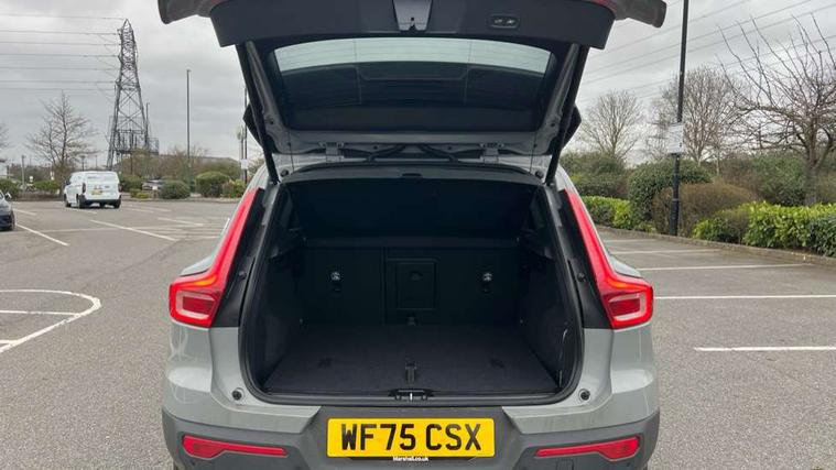 12.3" Progressive Driver Display, 9" centre console portrait touch screen, Adjustable steering wheel force, Android auto (Wired), Apple carplay (wired), Bluetooth handsfree system, Driver alert control, Driver assistance (pilot assist and adaptive cruise control), Driver awareness - Blind spot information system with steer assist, cross traffic alert with autobrake and rear collision warning and mitigation, E-call, Front and rear parking sensors, Front park assist, Google automotive services - Enabled entertainment apps, navigation with google maps, voice recognition with google assistant, Hands free power tailgate, Intelligent speed assistance, Lane keeping aid, Oncoming Lane Mitigation, Speed sensitive steering, Volvo cars services with app - Driving journal, emergency and breakdown call, engine remote start, remote door locking/unlocking and vehicle dashboard, Wireless/Inductive Mobile Phone Charging, Automatic transmission with start/stop and manual change functions, Dynamic chassis, DAB Digital radio, Steering wheel mounted remote controls, Adaptive brake lights with high level LED brake lights, Auto dimming feature for exterior door mirrors, Auto dimming interior mirror, Auto folding and heated power door mirrors, Automatic headlamp levelling, Automatic LED Headlights + Active high beam incorporating daytime running lights, Front aluminium tread plates, Front and rear electric windows, High gloss black front and rear skid plate, High gloss black front bumper deco, High gloss black mesh front grille with high gloss black surround, High gloss black window trim, Home safe and approach lighting, Integrated roof rails in high gloss black, LED front fog lights, Puddle lights, Rain sensor with automatic windscreen wiper activation, Rear side wing doors, Rear wiper, Roof antenna, Roof spoiler, Visible VIN plate, 12V socket in front tunnel console and luggage compartment, 2-Zone electronic climate control with CleanZone air quality system and pollen filter, 3 seat bench in 2nd row, 3 Spoke tailored steering wheel with chrome trim, 60/40 versatile split folding rear seat, Centre console cupholders and storage, Charcoal carpet and floor mats, Charcoal headlining, Connect suede textile/microtech upholstery, Flexible load floor and grocery bag holder, Front headrests, Front seat cushion extensions, Glovebox bag hook, Heated front seats, Height adjustable passenger seat, Height/reach adjustable steering column, High gloss centre tunnel deco, High level illumination - Front door pocket, front side step (under door), tailgate, instrument panel, front door inlay, rear courtesy&reading lights, Integrated waste bin, Isofix attachments on outer rear seats, Load cover, Load protection net, Mid level illumination - Front footwell, luggage & glovebox compartment, front cabin courtesy & reading lights, illuminated vanity mirrors+ticket holder, Multi directional lumbar support for driver and passenger seat, Power driver seat with memory + exterior mirrors memory, Rear armrest with cupholders, Rear headrests, Single front passenger seat, Underfloor luggage compartment storage, Climate pack without heated front seats - XC40, 3x3 point rear seatbelts, City safety with steering support with Pedestrian + cyclist + front collision warning with full auto brake and rear auto brake, Driver and passenger airbags, Drivers knee airbag, Electronic parking brake with auto hold, First aid kit, Front and outer rear seatbelt reminder and pretensioners, Front seats SIPS airbags, Hill descent control - Off-road drive mode, Hill start assist, IC (Inflatable Curtains) - Full Length, Passenger airbag cut-off device, Power child locks on rear doors, Road sign information display, Run off Road Protection, SIPS (Side Impact Protection System), Slippery road and hazard light alert, Stability and Traction Control with Spin control, Engine Drag Control and Corner Traction Control, Tyre pressure monitoring system, Vehicle deceleration control with Anti-lock Brake System, Electronic Brake Distribution and Emergency Brake Assist, Warning triangle, WHIPS whiplash protection system - front, 2 x Key integrated remote control central locking including with deadlocking system and auto open/close windows, Anti-theft alarm including immobiliser/volume sensor + level sensor, Keyless drive includes keyless entry and keyless start, Locking wheel nuts,