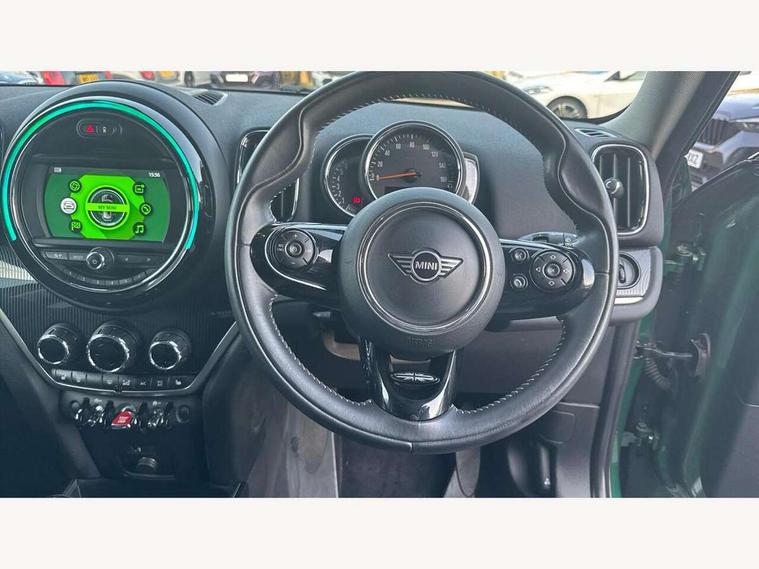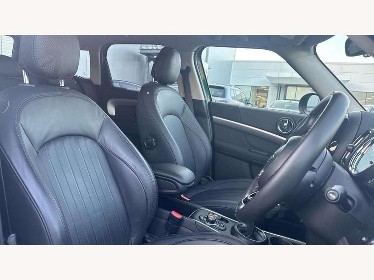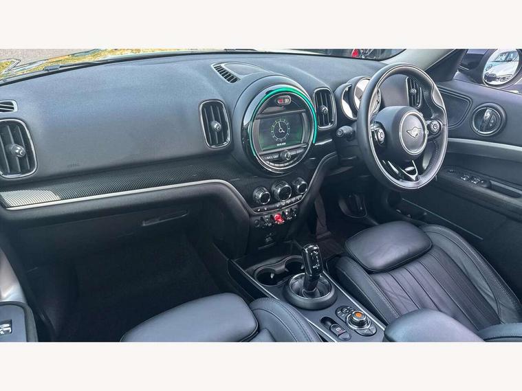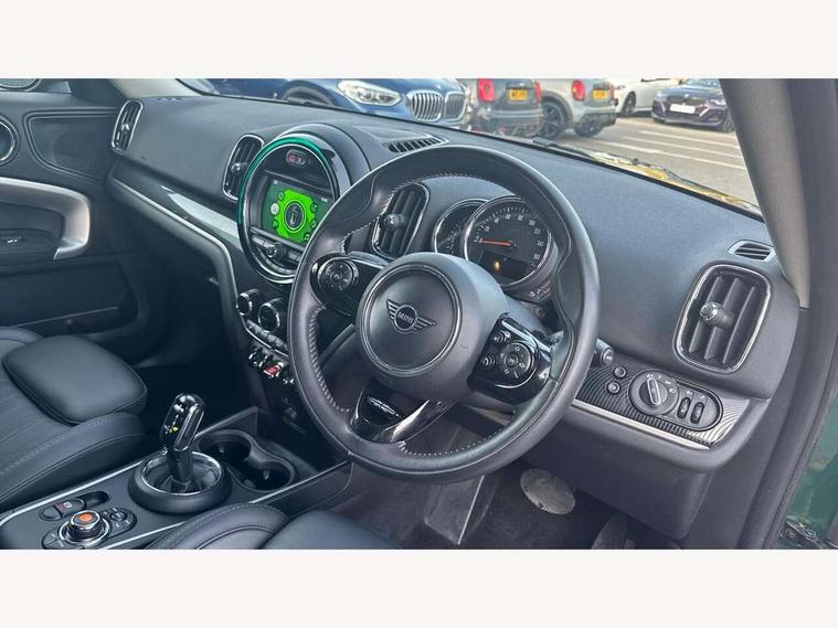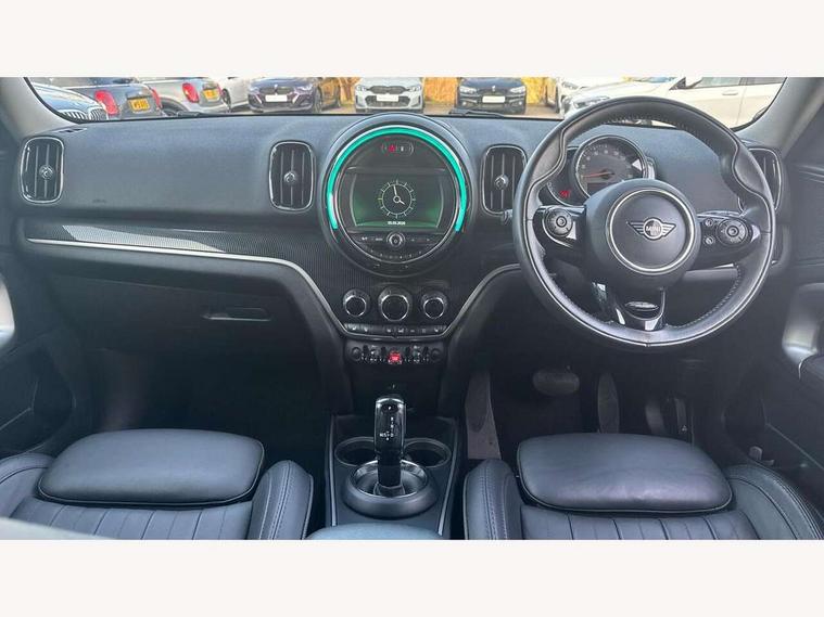 Active Guard incl speed limiting and lane departure functions with auto steering, and front collision warning with brake intervention, Automatic start/stop function with brake energy recuperation, Electro-mechanical speed dependant steering assistance, Instrument cluster, Mini E-call, MINI TeleServices, On board computer, Rear parking distance control, Double Vanos system, Fully variable valve control, High precision injection, Steptronic transmission with double clutch, FM tuner and DAB digital radio, Body colour fuel filler cap, Chrome line exterior, Day time driving lights, Door sill strips, Dynamic brake lights, Electric windows, Heated rear window, Heated windscreen washer jets, Left exhaust tailpipe with chrome finisher, Model logo, Model logo on Tailgate, Radiator grille, Rain sensor with auto headlights, Rear fog lights, Rear window wiper, Side scuttle panel with integrated indicator, Split rear doors, Sun/heat protection glass, White indicator lenses, 12V Accessory socket in centre console, 360L luggage compartment capacity, 4 lashing eyes in luggage compartment, 40:20:40 split folding rear seats, Chrome interior highlights, Cupholders, English handbook, Front headrests, Glove compartment, Height and length steering column adjustment, Interior lighting with 12 basic colours selectable via toggle switch in roof, Isofix rear child seat preparation, Leather gearshift lever and handbrake gaiters, LED reading lights, vanity mirror lights, front foot well light and spotlight on front seats, Manual air conditioning, Mechanical seat adjustment, driver seat height adjust, forward/back and front seats backrest, MINI Yours fine walk nappa leather steering wheel with contrast stitching in silver and MINI Yours badge, Multifunction steering wheel, Passenger seat height adjuster, Rear headrests, Storage compartments in doors, Sunvisors with vanity mirrors, Excitement pack - Countryman, Navigation pack - Countryman, 2 tone horn, 3 point seatbelts on all seats, 6 Airbags - front, side, head and seat belt tensioners, Anti-lock braking system (ABS), DSC - Dynamic Stability Control, Electronic handbrake, Front and rear disc brakes, Hill start assist, Tyre pressure monitoring system, Alarm system with tilt sensor, monitoring doors, bonnet interior and tailgate, Auto drive away locking, Deadlocking function, Electronic vehicle immobiliser, Locking wheel bolts, Start/stop toggle with keyless go, Chrome line interior, Tool kit,