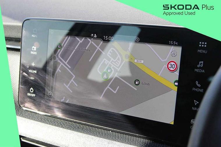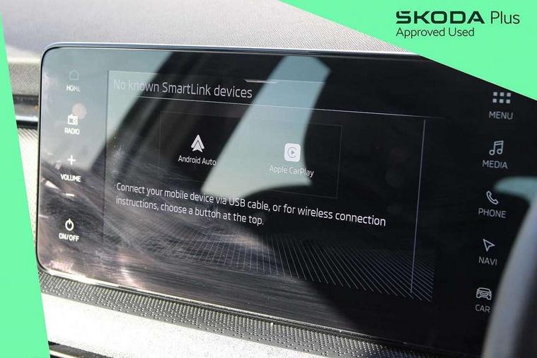 Advanced driver attention and drowsiness monitor, Bluetooth, e-Call (emergency call), Front assist system, PAS, Rear parking sensors, Rear view camera, Speed limiter, Tailgate, Traffic sign recognition, Virtual Cockpit - 10.25" digital display, Voice control system, Wireless smartlink, 4 USB C ports, 8 Speakers, 9.2" Skoda navigation display, DAB radio, Auto dimming rear view mirror, Automatic headlamp activation with Coming home and Leaving home feature, Automatic high/low beam, Body colour bumpers, Body colour door mirrors and handles, Chrome moulding around grille, Front and rear electric windows, Full LED headlights, Heated rear window, LED 3rd brake light, LED brake lights, LED daytime running lights, LED front turning lights, LED high beam, LED low beam, LED taillights, Rear LED fog light, Rear side wing doors, Rear wiper, Tinted windows, Unique dark chrome design logo on alloy wheels, 12V socket in luggage compartment, 3 seat bench in 2nd row, Black / Grey armrest stitching, Black hotstamping, Cargo elements, Chrome inner door handles, Door inserts in satin black, Driver and passenger sun visors with vanity mirror, Dual zone climate control, Front and rear roof lights, Front centre armrest, Front head restraints, Glasses storage in roof liner, Height adjustable driver seat, Height adjustable passenger seat, Ice scraper, Illuminated glove compartment, Inner circulation control with pollen filter, ISOFIX for front passenger seat, Isofix preparation for back seats, Leather gearknob and handbrake lever, Loft cloth upholstery, Luggage net under rear parcel shelf, Manual lumbar support for front seats, Net package and top tether hooks in boot space, Pearl grey ceiling, Pocket on the back of both front seats, incl. mobile phone pockets, Single front passenger seat, Skoda lettering on steering wheel, Textile floor mats, Third rear headrest, Ticket holder, Top tether for front passenger seat, Umbrella in driver's door, 3x3 point rear seatbelts, ABS, Child locks, Curtain airbags and front side airbags, Disc brakes, Driver and front passenger airbags, ESP, Hill hold control, Manual leather parking brake, One tone horn, Passenger airbag switch off function, Seatbelt reminder for driver and front passenger, Tyre pressure monitoring system, Anti theft alarm system with interior monitoring, backup horn and towing protection, Anti-theft wheel bolts, Remote central locking with 2 remote folding keys, SAFE function for remote central locking, Decord pad, door inserts Kota uni,