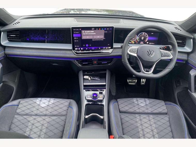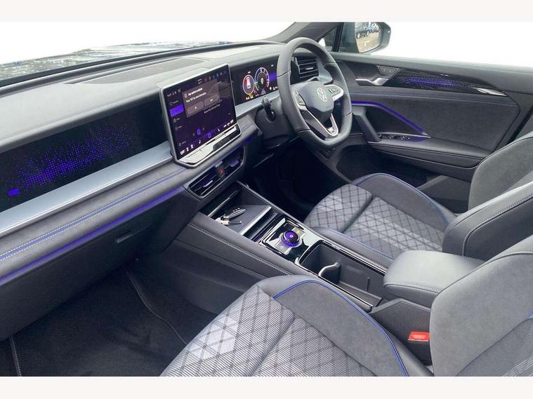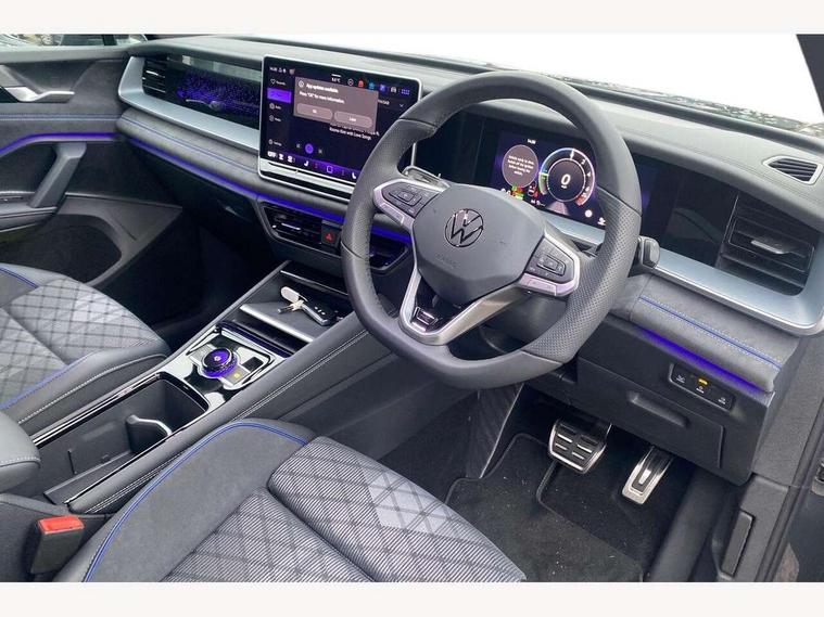 Adaptive cruise control (ACC), Digital Cockpit Pro - 10.25" high resolution dash display screen with customisable menus and information, Driver alert system, Driver attention monitoring system, Dynamic road sign display, E-Sim card for online connectivity, eCall emergency call system, Lane change system, Side assist, Rear traffic alert and Exit warning system, Multifunction front facing camera, Oncoming vehicle braking when turning including swerve support, Progressive steering, Start/stop system with regenerative braking, Voice activation spoken voice commands for telephone and navigation system, Warning signal and warning light for front and rear seatbelts not fastened, Wireless App-Connect, Adaptive chassis control DCC pro includes driving mode selection, Charging cable Mode 2 Type 2 / G (10A), Charging cable Mode 3 Type 2 / 3 (16A), Front shock absorption G08, Front wheel drive, Rear shock absorption, Digital radio reception (DAB), Diversity antenna for FM reception, Air intake with Chrome trim, Auto dimming interior rear view mirror, Automatic headlight control system, Body colour door handles, Chrome moldings on the side windows, Coming/leaving home lighting function, Dynamic headlight range control with dynamic cornering light, Exterior mirrors convex on the left and aspherical on the right, Heat insulating glass in side and rear windows, Illuminated Volkswagen logo rear with animation, Laminated safety glass windshield, heat insulating, LED 3rd brake light, LED separate signature day time running light, Puddle lights, Rain sensor windscreen wipers, Rear fog light on one side, reversing light on both sides, Rear side wing doors, Rear wiper, Reverse activated passenger's door mirror, Surround lighting with welcome light, Volkswagen logo in front, illuminated lighting animation with wake up/goodbye scenario and illuminated door handles, 10 colour interior ambient lighting, 12V outlet in center console rear and in luggage compartment, 3 rear headrests, 3 rear seat bench in 2nd row, split folding, longitudinally movable and folding with load-through hatch, Black roof lining, Brushed stainless steel pedals, Carpet mats, front and rear, Centre console with illuminated storage compartment with sliding cover and two drinks holders, Chrome elements on the mirror switch and power window switches and door pulls, Door and side trim panel insert in Art velour, Flat luggage compartment floor, Front centre armrest, Front scuff plates in aluminium, ISOFIX anchors for child seats on outer rear seats and front passenger seat compatible with i-Size, Mechanical rear seat release, Power adjustable lumbar support in front, Single front passenger seat, Sports comfort seats in front, Sun visors with illuminated vanity mirrors, 3 Point seat belts in front with pretensioners, 3 point seatbelts in outer rear with ECE label, Autonomous emergency braking front assist with pedestrian and cyclist monitoring, Driver and front passenger airbag with front passenger airbag deactivation, Electronic parking brake with auto hold, First aid kit with warning triangle and safety vest, Front and rear curtain airbags, Front and rear side airbags, Front centre airbag, Front disc brakes, Hill start assist, Rear disc brakes, Two tone horn, Decorative material set R-Line, Interior door handle in matte chrome, Tool kit for tyre mobility set, Tyre mobility kit including compressor and sealing foam. In lieu of spare wheel,