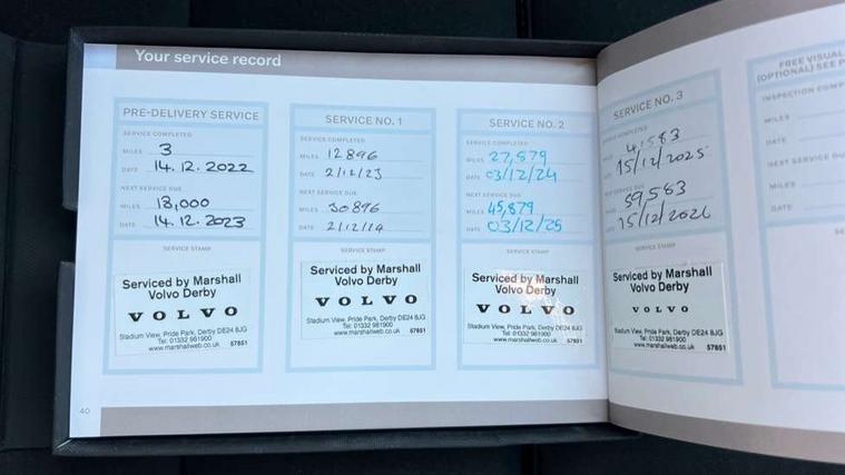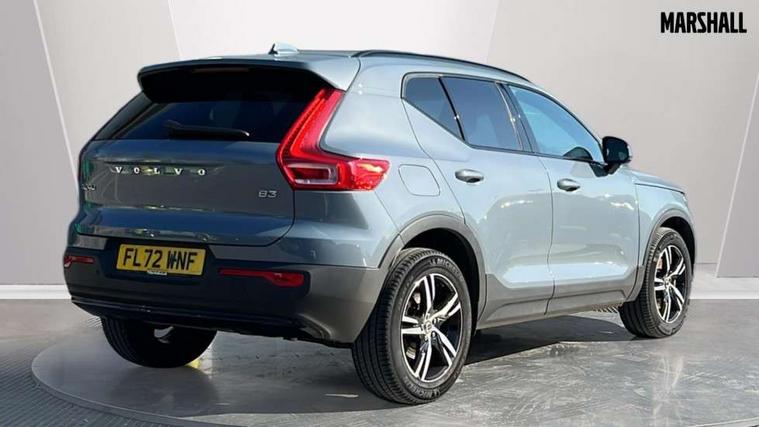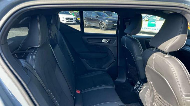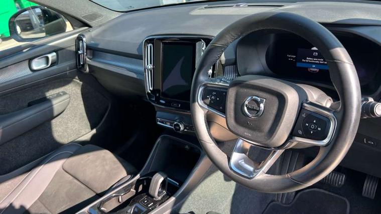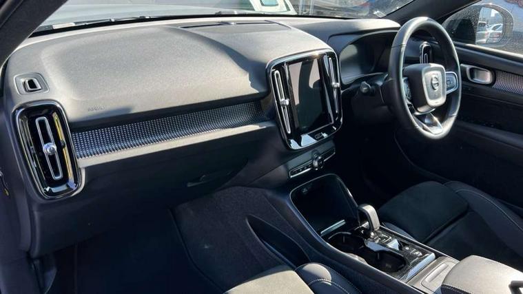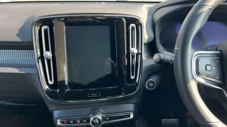 12.3" Progressive Driver Display, 9" centre console portrait touch screen, Adjustable steering wheel force, Bluetooth hands free telephone kit, Cruise control, Driver awareness - blind spot information system with steer assist, cross traffic alert with autobrake, rear collision warning and migitation, E-call, Front park assist, Google automatic services - Nav with google maps, apple carplay/android auto, voice recognition with google assistant, Hands free power tailgate, Lane keep assist with driver alert control, Oncoming Lane Mitigation, Rear park assist, Rear park assist camera, Speed limiter, Speed sensitive steering, Wireless/Inductive Mobile Phone Charging, Dynamic chassis, DAB Digital radio, High performance sound, 8 speakers/250W, front USB and 2 rear type C USB, Steering wheel mounted remote controls, Adaptive brake lights with high level LED brake lights, Auto dimming feature for exterior door mirrors, Auto dimming interior mirror, Automatic headlamp levelling, Automatic LED Headlights + Active high beam incorporating daytime running lights, Front aluminium tread plates, Front and rear electric windows, High gloss black front and rear skid plate, High gloss black mesh front grille with high gloss black surround, High gloss black window trim, Home safe and approach lighting, Integrated roof rails in high gloss black, LED front fog lights, Puddle lights, Rain sensor with automatic windscreen wiper activation, Rear side wing doors, Rear wiper, Roof antenna, Roof spoiler, Visible VIN plate, 12V socket in front tunnel console and luggage compartment, 2-Zone electronic climate control with CleanZone air quality system and pollen filter, 3 seat bench in 2nd row, 3 Spoke tailored steering wheel with chrome trim, 60/40 versatile split folding rear seat, A-pillar parking ticket holder, Ambient front door and instrumental panel lighting, Centre console cupholders and storage, Flexible load floor and grocery bag holder, Floor mats, Front door pocket and front cupholder illumination, Front footwell illumination, Front headrests, Front reading light and theatre lighting, Front seat cushion extensions, Front tunnel pocket, Glovebox bag hook, Heated front seats, Height adjustable passenger seat, Height/reach adjustable steering column, High gloss centre tunnel deco, Illuminated glovebox, Illuminated luggage compartment, Illuminated tailgate, Illuminated vanity mirrors, Integrated waste bin, Isofix attachments on outer rear seats, Load protection net, Multi directional lumbar support, Power driver seat with memory + exterior mirrors memory, Rear armrest / integral cup holders / storage tray, Rear headrests, Rear reading and courtesy lights, Single front passenger seat, Underfloor cargo storage, Climate pack without heated front seats - XC40, 3x3 point rear seatbelts, City safety with steering support with Pedestrian + cyclist + front collision warning with full auto brake and rear auto brake, Drivers knee airbag, Dual stage driver/passenger airbags, Electronic parking brake with auto hold, First aid kit, Front and outer rear seatbelt reminder and pretensioners, Front seats SIPS airbags, Hill descent control, Hill start assist, Inflatable curtain, Passenger airbag cut-off device, Power child locks on rear doors, Road sign information display, Run off Road Mitigation, Run off Road Protection, SIPS (Side Impact Protection System), Slippery road and hazard light alert, Stability and Traction Control with Spin control, Engine Drag Control and Corner Traction Control, Tyre pressure monitoring system, Vehicle deceleration control with Anti-lock Brake System, Electronic Brake Distribution and Emergency Brake Assist, Warning triangle, WHIPS whiplash protection system - front, Anti-theft alarm including immobiliser/volume sensor + level sensor, Key integrated remote control central locking + fuel flap with deadlocking system and auto open/close power windows, Keyless drive includes keyless entry and keyless start, Locking wheel nuts,