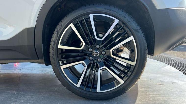 12.3" Progressive Driver Display, 360 degree surround view parking camera with side proximity sensors, 9" centre console portrait touch screen, Adjustable steering wheel force, Android auto (Wired), Apple carplay (wired), Bluetooth handsfree system, Driver alert control, Driver assistance (pilot assist and adaptive cruise control), Driver awareness - Blind spot information system with steer assist, cross traffic alert with autobrake and rear collision warning and mitigation, E-call, Front park assist, Google automotive services - Enabled entertainment apps, navigation with google maps, voice recognition with google assistant, Hands free power tailgate, Intelligent speed assistance, Lane keeping aid, Oncoming Lane Mitigation, Rear park assist, Speed sensitive steering, Volvo cars services with app - Driving journal, emergency and breakdown call, engine remote start, remote door locking/unlocking and vehicle dashboard, Wireless/Inductive Mobile Phone Charging, Automatic transmission with start/stop and manual change functions, Dynamic chassis, DAB Digital radio, Premium Sound by Harman Kardon, Dolby Pro Logic II Surround Sound, Dirac Unison, 12 speakers/600W and subwoofer, Steering wheel mounted remote controls, Active bending pixel LED headlights with adaptive shadow technology, Active high beam incorporating daytime running lights, Adaptive brake lights with high level LED brake lights, Auto dimming feature for exterior door mirrors, Auto dimming interior mirror, Automatic headlamp levelling, Dark tinted windows - rear side windows and rear screen, Front aluminium tread plates, Front and rear electric windows, Headlight cleaning system, High gloss black front and rear skid plate, High gloss black front bumper deco, High gloss black mesh front grille with high gloss black surround, High gloss black window trim, Home safe and approach lighting, Integrated roof rails in high gloss black, LED front fog lights with cornering function, Power glass tilt and slide panoramic sunroof with sun curtain, Puddle lights, Rain sensor with automatic windscreen wiper activation, Rear side wing doors, Rear wiper, Roof antenna, Roof spoiler, Visible VIN plate, 12V socket in front tunnel console and luggage compartment, 2-Zone electronic climate control with CleanZone air quality system and pollen filter, 3 seat bench in 2nd row, 3 Spoke tailored steering wheel with chrome trim, 60/40 versatile split folding rear seat, Centre console cupholders and storage, Flexible load floor and grocery bag holder, Floor mats, Front cabin courtesy lights, Front door pocket, front cupholder, ambient front door, rear reading, rear courtesy, instrument panel and tailgate lighting, Front footwell illumination, Front headrests, Front reading lights, Front seat cushion extensions, Front side step illumination (under door), Glovebox bag hook, Heated front seats, Height/reach adjustable steering column, High gloss centre tunnel deco, Illuminated glovebox, Illuminated luggage compartment, Illuminated vanity mirrors + ticket holder, Integrated waste bin, Isofix attachments on outer rear seats, Load cover, Load protection net, Multi directional lumbar support for driver and passenger seat, Power driver seat with memory + exterior mirrors memory, Power folding rear headrests, Power passenger seat, Rear armrest with cupholders, Single front passenger seat, Underfloor cargo storage, Climate pack without heated front seats - XC40, 3x3 point rear seatbelts, City safety with steering support with Pedestrian + cyclist + front collision warning with full auto brake and rear auto brake, Driver and passenger airbags, Drivers knee airbag, Electronic parking brake with auto hold, First aid kit, Front and outer rear seatbelt reminder and pretensioners, Front seats SIPS airbags, Hill descent control, Hill start assist, Inflatable curtain, Passenger airbag cut-off device, Power child locks on rear doors, Road sign information display, Run off Road Protection, SIPS (Side Impact Protection System), Slippery road and hazard light alert, Stability and Traction Control with Spin control, Engine Drag Control and Corner Traction Control, Tyre pressure monitoring system, Vehicle deceleration control with Anti-lock Brake System, Electronic Brake Distribution and Emergency Brake Assist, Warning triangle, WHIPS whiplash protection system - front, 2 x Key integrated remote control central locking including with deadlocking system and auto open/close windows and sunroof, Anti-theft alarm including immobiliser/volume sensor + level sensor, Keyless drive includes keyless entry and keyless start, Locking wheel nuts,