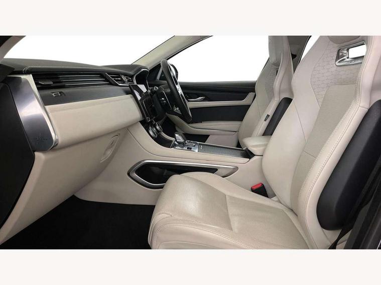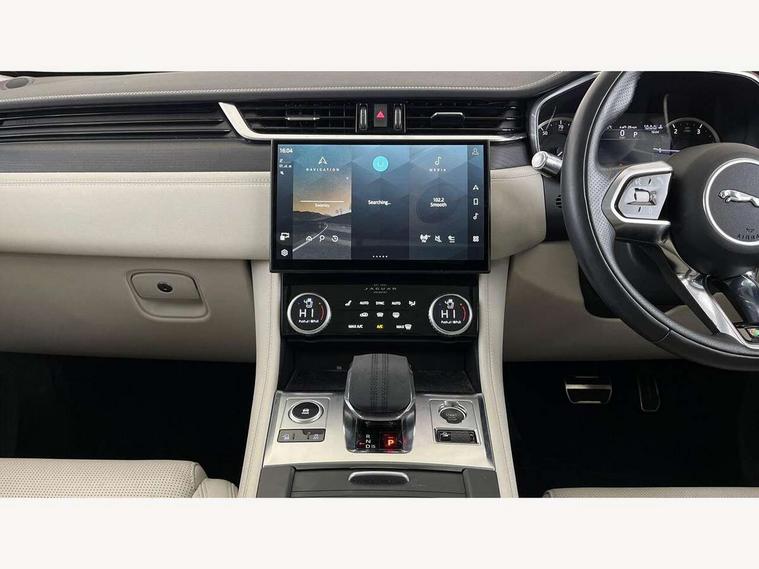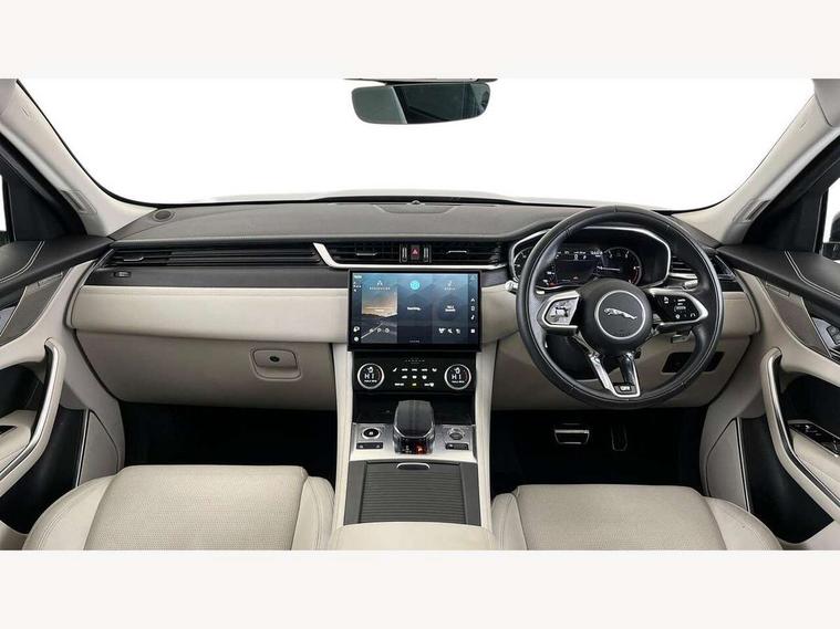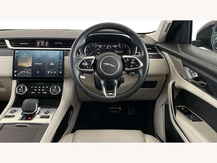 11.4" touchscreen, Android Auto, Apple car play, Bluetooth connectivity, Driver alert system, Driver condition monitor, eCall emergency call system, Eco driving style assistant, Electric power assisted steering, InControl remote, Jaguar Toggle shift selector, Lane departure warning system, Lane keep assist, Outside temperature gauge, Personalisation profile management, Pivi pro connected navigation system with app interface and media storage, Pro services and wifi hotspot, Push button starter, Service interval indicator, Speed proportional steering, Start up sequence with movement in dials and lighting, Traffic sign recognition with adaptive speed limiter, Trip computer, Voice control system, 8 speed automatic transmission, All terrain progress control, All Wheel Drive (AWD), Open differential with torque vectoring by braking, AM/FM radio, Bluetooth streaming, DAB Radio (Digital Audio Broadcasting), Dynamic volume control, InControl apps, InControl protect, iPod integration, 3 flash lane change indicators, Animated directional indicators, Approach Illumination, Auto dimming rear view mirror, Automatic headlights, Electric windows with one touch open/close and anti trap, F-Pace and R Dynamic badge, Gloss black door mirrors, Gloss black roof rails, Green tinted glass, Heated front windscreen + heated washer jets, Heated rear window with timer, Jaguar script and leaper, LED High level third brake light, LED tail lights, Non acoustic front windscreen, Privacy glass, R Dynamic badge on side door, Rain sensor windscreen wipers, Rear fog lights, Rear metal tread plates, Rear side wing doors, Rear wiper, Trailer stability assist, Variable front intermittent wipers, 12V power point front, 3 rear headrests, 3 seat bench in 2nd row, Air distribution speed, Bright metal foot pedals, Centre armrest console, Centre console with side storage, Deletion loadspace storage rails, Door sill tread plates, Fold flat front seats, Front centre armrest with storage compartment, Front door storage space, Glovebox finisher with jaguar script, Heated steering wheel, Hooks in loadspace, Illuminated glovebox, Interior front door handles with separate locking switches, ISOFIX on outer rear seats, Jaguar sense, Luggage tie downs in loadspace, Mist sensing, Multifunction steering wheel, Overhead lighting console, Overhead stowage for sunglasses, Passive front head restraints, Premium cabin lighting, Premium carpet mats, R-Dynamic branded leather steering wheel, Rear air vents, Rear armrest with twin cupholders, Rear centre headrest, Rear door storage space, Reversible boot floor, Satin chrome gearshift paddles, Shopping bag hook, Single front passenger seat, Sunvisors with illuminated vanity mirrors, Twin front cupholders with cover, Black Exterior pack - F Pace R-Dynamic/Sport, Exterior pack - F Pace R-Dynamic, Online Pack with data plan - F-Pace, 355mm front brakes and 325mm rear brakes, 3x3 point rear seatbelts, ABS, All surface progress control (ASPC), Brake pad warning light, DSC - Dynamic Stability Control, Electric parking brake (EPB), Emergency brake assist, Front airbags with passenger seat occupant detector, Front and rear seatbelt reminder, Front side airbags, Full length side window curtain airbag, Hill launch assist, Power operated child locks, Torque vectoring brake, Traction control, Tyre pressure monitoring system, Immobiliser, Keyless start, Locking wheel nuts, Perimeter alarm, Remote central locking, Valet mode,