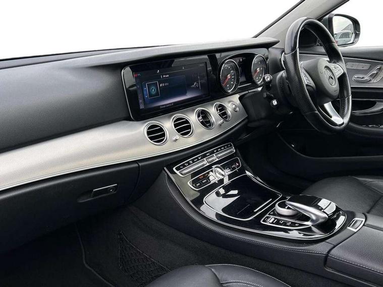 Active park assist with parktronic system, Analogue clock, Attention assist, Bluetooth interface for hands free telephone, Boot release from drivers seat, Brake wear warning light, DYNAMIC SELECT with a choice of driving modes (ECO, Comfort, Sport, Sport+ and Individual), Mercedes connect me, Multi function trip computer, Park assist pilot with front and rear park assist, Service indicator (ASSYST), Speed sensitive power steering, Diesel particulate filter, DAB Digital radio, Media interface, USB/aux input socket, Adaptive brake lights, Aerial integrated in rear window, Body colour bumpers, Body colour door handles, Electrically adjustable and heated door mirrors, LED Headlights, Polished aluminium upper window surround, Polished aluminium waistline, Radiator grille with integral star and 2 louvres in matt iridium silver with chrome trim, Rain sensor windscreen wipers, 3 spoke nappa leather steering wheel, Ambient lighting, Auto Mercedes-Benz child seat recognition sensor, Front and rear door pockets, Front centre armrest with storage compartment, Front door sills with Mercedes Benz lettering, Heated front seats, Height/reach adjust steering wheel, Illuminated glovebox, Interior rear light/integral reading lights, Isofix rear child seat fastenings, Leather upholstery, Multi function steering wheel, Sports pedals with stainless steel surfaces and rubber studs, Storage compartment with 12V socket in centre console, Sunvisors with illuminated vanity mirrors, Interior lighting pack - E Class, Keyless Go comfort pack - E Class, Memory pack - E Class, Mirror pack - E Class, 3x3 point rear seatbelts, Active bonnet, Active brake assist, Childproof rear door locks, Driver and passenger side/thorax airbags, Driver/front passenger airbag, Drivers knee airbag, Electronic parking brake, Hill hold assist, Hill start assist, Pre-Safe anticipatory safety system, Seat occupancy sensor, Seatbelt warning, Tyre pressure monitoring system, Warning triangle and first aid kit, Window airbags, Alarm system/interior protection/immobiliser, Chrome surround in electric key, High gloss black centre console,