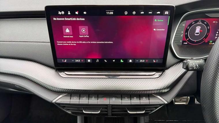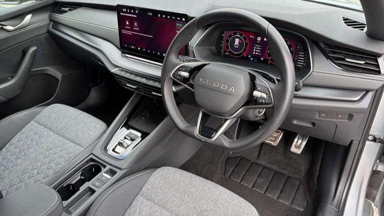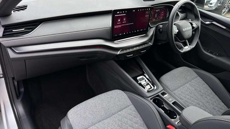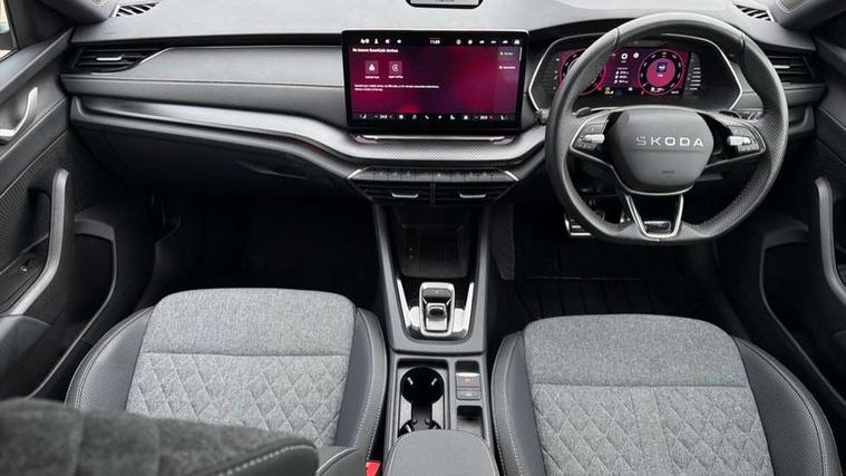 1x USB Typc C port in rear view mirror, 4x USB Type C ports - 2x in front centre console and 2x in rear (45W), Drive mode selection, Driver fatigue sensor, eCall emergency system, Front assist system, Progressive dynamic steering, Traffic sign recognition, Turn Assist, Virtual Cockpit - 10.25" digital display, Voice control system, Wireless charging (15W) with cooling function, Wireless SmartLink for Apple CarPlay and Android Auto, Sports suspension with 15mm lower, 13" touchscreen display with navigation, DAB Digital radio, Aero front windscreen wipers with intermittent function, Auto dimming rear view mirror, Body colour bumpers, Body colour door handles, Electric front and rear windows, Exterior gloss black sports styling including front grille, window surrounds, door mirrors and badging, Gloss black diffuser, Gloss black roof rails, Gloss black spoiler, Heated rear windscreen, High beam control, High level third brake light, Ice scraper in fuel cap, LED daytime running lights, Logo projection in front doors, Rain and light sensors, Rear fog light on one side, Rear privacy glass, Rear side wing doors, Rear window wiper, 12 volt socket in boot, 3 rear headrests, 3 seat bench in 2nd row, 4 foldable roof handles, Aluminium pedals, Front head restraints, Front sport seats, Heated front seats, Illuminated glovebox, Interior door handles in dark chrome, Jumbo Box storage, Luggage compartment lighting x2 lights, Mechanical rear seat release from boot, Single front passenger seat, Steering wheel in black leather with black stitching, Storage compartments in left and right of boot, Sun visors with mirrors, Sunglasses storage, Ticket holder, Umbrella in door panel, Unsplit rear bench seat, split folding backrest with centre armrest with cupholder, SportLine Design Selection pack - Octavia, 3x3 point rear seat belts, Alarm with interior monitoring, tilt sensor and back up horn, Curtain airbags and front side airbags, Driver and front passenger airbags, Drivers knee airbag, Electronic parking brake, ESC including ABS, EBV, MSR, ASR, EDS, HBA, DSR, Front central airbag, Hill hold assist, ISOFIX on front passenger seat and outer rear seats, Passenger airbag deactivate switch, Three point seat belts in front and rear, Two tone horn, Tyre pressure monitor, Visual and acoustic seat belt reminder, Warning reflectors in front door, Anti-theft wheel bolts, Keyless start/stop, Remote central locking, Gloss black air vent surrounds,