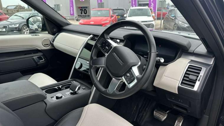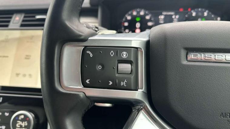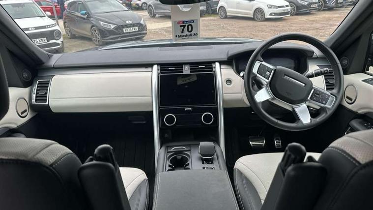 11.4" touchscreen, 3D surround camera, Adaptive cruise control, Android Auto, Apple car play, Blind spot assist, Driver condition monitor, Electric power assisted steering (EPAS), Emergency services call system, Front and rear parking aid, Interactive driver display, Lane keep assist, Power inner tailgate, Power tailgate/boot lid, Push button start, Rear collision monitor, Rear traffic monitor, Remote, Remote boot release, Service interval indicator, Speed proportional steering, Sportshift selector, Stop/start system, Traffic sign recognition with adaptive speed limiter, Trip computer, Wade Sensing, Adaptive dynamics, Dynamic stability control, Electronic air suspension, Front axle open differential, Digital Audio Broadcast radio-DAB, Dynamic volume control, Pivi pro connected, USB/aux input socket, Acoustic laminated windscreen, Animated directional indicators, Auto dimming interior rear view mirror, Auto high beam assist, Automatic headlight levelling, Automatic headlights, Body colour bumpers, Body colour door handles, Centre high mounted stop light, D300 badge, Electric heated/power fold memory door mirrors with approach lights and auto dimming driver side, Electric windows with one touch open/close and anti-trap, Heated rear window, Heated windscreen, LED darkend tail lights, LED headlights with signature DRL, Narvik black Discovery script, Privacy glass, Puddle lights, Rain sensing windscreen wipers, Rear fog lights, Rear side wing doors, Rear wash/wipe, Trailer stability assist, Variable intermittent wiper, 12V power sockets, 12V USB charging socket in loadspace, 18 way heated electric memory driver seats with captains armrest + manual height adjust headrest + 4way power lumbar support, 2 seat bench in 3rd row, 3 seat bench in 2nd row, Central hinged twin lidded storage, Ebony morzine headlining, Electric adjustable steering column, First and second row door bins, Footwell lights, Front and rear 12V with front USB, Front passenger seat isofix location point, In-facia storage, Isofix child seat preparation for front passenger seat, Loadspace cover, Loadspace Hook, Loadspace light, Lockable glovebox, Lower centre console storage, Luggage tie downs in loadspace, Multi function steering wheel, Overhead lighting console, Premium carpet mats, Premium non-leather steering wheel, Rear ISOFIX, Shopping bag hook, Single front passenger seat, Storage glovebox, Sunvisors with illuminated vanity mirrors, Third row storage, Treadplates with metal inserts, Twin front cupholders with cover, USB with 12V socket in centre console, Black exterior pack - Discovery Dynamic SE/HSE, Online pack with data plan - Discovery, 3x3 point rear seatbelts, Anti-lock braking system (ABS), Brake pre-fill technology, Cornering brake control, Curtain airbags, Customer configurable autolock, Driver and passenger airbags, EBD - Electronic brakeforce distribution, Electronic traction control, Emergency brake assist, Emergency braking, ESP, Front side airbags, Gradient acceleration control, Hill descent control, Hill launch assist, Power operated child locks, Rear airbags, Roll stability control, Seat belt reminder, Torque vectoring brake, Tyre pressure monitoring system, Immobiliser, Intrusion sensor, Keyless entry, Locking wheel nuts, Remote central locking, All terrain tyres,