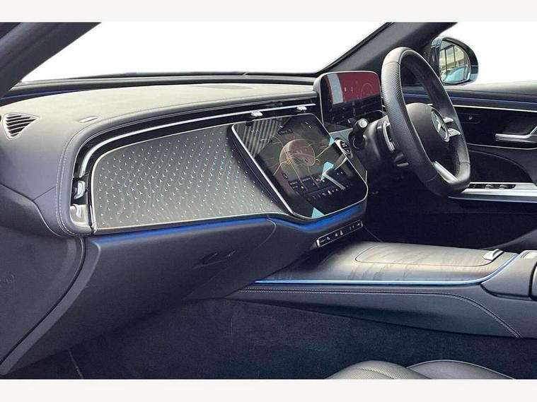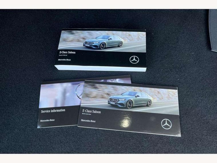 12.3" high resolution cockpit display, 14.4" high resolution central media display with latest MBUX generation, 5G Communications module, Attention assist, Blind spot assist, Bluetooth, Brake wear warning display, Direct steer speed sensitive steering, ECO start/stop function, Evasive manoeuvre support, Fingerprint scanner, Fluorescent jacket for driver, Hard disc navigation, MBUX navigation premium, MBUX voice control, Mercedes me connect including emergency call system, accident recovery, breakdown and maintenance management, Outside temperature display, Preinstallation for live traffic, Remote Services Premium, Service indicator (ASSYST), Status display for rear seat belts in instrument cluster, Trip computer in multifunction display showing current fuel consumption, Wireless charging, Wireless smartphone integration with Apple CarPlay and Android auto, 48V Mild hybrid technology, 66 litre fuel tank with 10 litre reserve, 9G TRONIC automatic transmission, Agility control suspension with selective damping system and lowered by 15mm, Bluetec emission control, Diesel particulate filter, Integrated starter generator Gen 2, Sporty engine sound system, DAB Digital radio, Preinstallation for MBUX Entertainment Plus, 3rd brake light, Adaptive brake lights, Aerial integrated in rear window, AMG Line exterior, Auto dimming driver's door mirror, Auto dimming rear view mirror, Digital air vent control, Electric folding door mirrors, Electric windows with one touch opening/closing and obstruction sensors, Electrically adjustable and heated door mirrors, Heat insulating privacy glass, LED daytime running lights, LED high performance headlights with adaptive highbeam assist, Pre-installation for roof rail systems, Rear boot, Rear side wing doors, Surround lighting with logo projection, 3 seat bench in 2nd row, 4 way lumbar support, Ambient lighting, AMG brushed stainless steel sports pedals with rubber studs, AMG floor mats, AMG line interior, Automatic child seat recognition sensor, Central stowage compartment with USB socket for use with Android Auto and Apple CarPlay, Climatised front seats, Comfort seats, Courtesy lights in rear grab handles with reading light functionality, Folding rear seat backrest, Front centre armrest with stowage compartment, Gearshift paddles in galvanised silver, Glove compartment - lockable, air conditioned and illuminated, Head restraints for driver and front passenger (four-way adjustability) and in rear (two-way), Heated front seats, Instrument panel and door beltlines in artico nappa look leather, Leather upholstery, Multifunction sports steering wheel in nappa leather, Roof liner in black fabric, Seat occupancy sensor for front passenger seat, Single front passenger seat, Steering wheel touch control buttons for audio and onboard settings, Sunvisors with illuminated vanity mirrors, THERMATIC 2 zone automatic climate control, Night pack - E class, Parking package with 180 degree camera - E Class, USB plus package - E Class, 3x3 point rear seatbelts, Active bonnet pedestrian safety measure which detects an impact and raises bonnet, Adaptive brake system with HOLD function and brake drying in the wet, Anti-lock braking system (ABS), Automatic front passenger airbag deactivation, Central airbag, Childproof locks manually operated for rear doors and electrically operated for rear power windows, Driver and adaptive front passenger airbags, Electronic parking brake, Electronic Stability Programme, Hill start assist, ISOFIX child seat attachment points two outer rear seats, Knee airbags, Pedestrian protection, Pre-Safe anticipatory safety system, Tyre pressure monitoring system, Warning triangle and first aid kit, Window airbags, Alarm system/interior protection/immobiliser, Central locking with interior switch, automatic locking and crash sensor with emergency opening function, Guard 360 degree vehicle protection, Increased anti theft protection, Keyless Go, Urban guard vehicle protection plus, Centre console in black open pore ash wood trim and dash trim with laser cut backlit Mercedes-Benz star pattern, 18" AMG 5 twin spoke design alloy wheels painted in tantalite grey, Summer tyres, Tirefit,