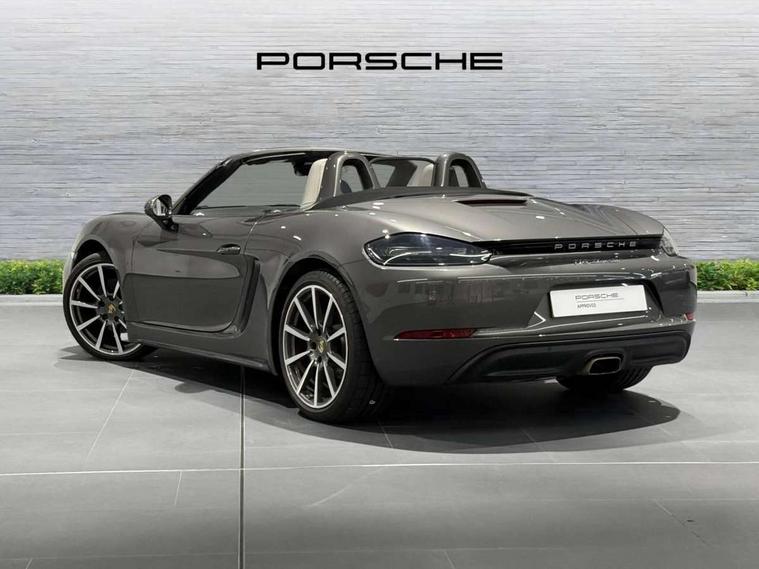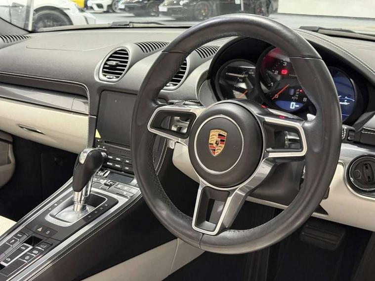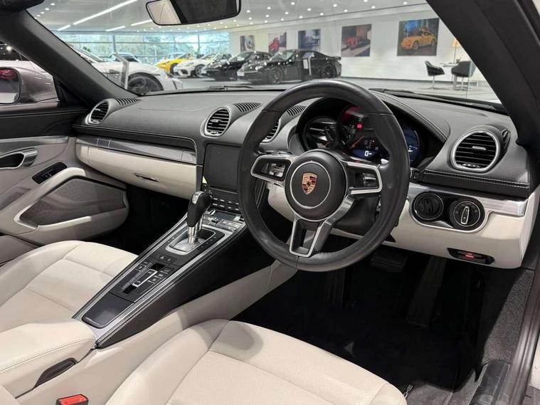 Connect Plus, Apple CarPlay, telephone module, wireless internet access, carfinder, remote vehicle status, remote service, vehicle track, Digital displays for vehicle speed, chosen gear, odometer, trip odometer and clock, Instrument cluster with central rev counter and high-resolution 4.6 inch colour display, Multi function display, On board computer, Porsche Communication Management (PCM) including online navigation module, mobile phone preparation, audio interfaces and voice control system, 4 valves per cylinder, Aluminium block and cylinder heads, Direct fuel injection (DFI), Gasoline particulate filter, Integrated dry-sump lubrication with an on-demand oil pump, Porsche Doppelkupplung (PDK), Porsche Stability Management (PSM), ABS with extended brake functions, Turbocharger with intercooler, VarioCam Plus variable valve timing and switchable valve lift, Water cooled with thermal management, DAB Digital radio, Integrated compatible SIM including Porsche Connect Services, Wifi and music streaming, Automatic headlight activation including welcome home lighting, Automatically extending rear boot spoiler, Body colour bumpers, Electrically adjustable heated exterior mirrors on door waist rails, aspherical on driver's side, Fully automatic fabric hood, electrically operated/heatable rigid glass rear screen, operable approx 30 mph and convenient operation by key remote, Green tinted heat insulating glass, Heated rear windscreen, Intelligent lightweight body in Aluminium/Steel composite construction, Net wind deflector, Porsche logo on trim strip and model designation on rear apron in high gloss silver colour, Power windows with one touch operation and door seal protection, Separate auxiliary lights in the front end with LED indicators and position lights, Top tinted windscreen, Twin tract sports exhaust system with central tailpipe in stainless steel, Water repellent side windows, Windscreen washer system with two wiper speeds and washer jets, 12V sockets in passenger footwell and centre console storage compartment, Adjustable fan with air recirculation and defroster functions, Clothes hooks on front seat backrests, Elevated centre console with uncovered storage compartment and closed storage compartment, Footwell illumination, Front and rear luggage compartments, Front headrests, Height/reach adjust steering wheel, Hood lining in black fabric, Interior roof lining, LED reading lights, orientation, ignition lock, additionally luggage compartment and glove compartment lighting, Lockable glovebox, Smooth finish leather on steering wheel rim, gear lever and door handles, SPORT button to activate dynamic driving settings for engine, transmission (with PDK), Storage compartments in each doors, Three way catalytic converter and on board diagnostics for monitoring emission control system, Two individual cup holders (integral to dashboard trim strip), 3 point automatic seatbelts, ASR, Electrically controlled parking brake, Front and rear 4 piston aluminium monobloc fixed calipers, disc internally vented and cross drilled, front/rear disc diameter, brake calipers in black, Front and rear lightweight spring strut axle, Front seatbelt pretensioners + load limiters, Full size driver and passenger airbags, Passenger airbag deactivate switch, Porsche side impact protection doors with thorax airbag in outer backrest side bolster and head airbag for driver/passenger in door panel, Tyre pressure monitoring system, Alarm system with interior surveillance, Anti-theft wheel bolts, Auto start/stop function including coasting (in connection with PDK), Engine immobiliser with in key transponder, central locking and remote control, Tyre sealing compound and electric air compressor kit,