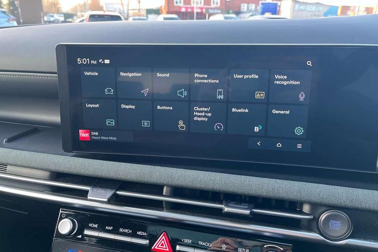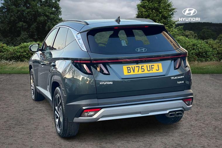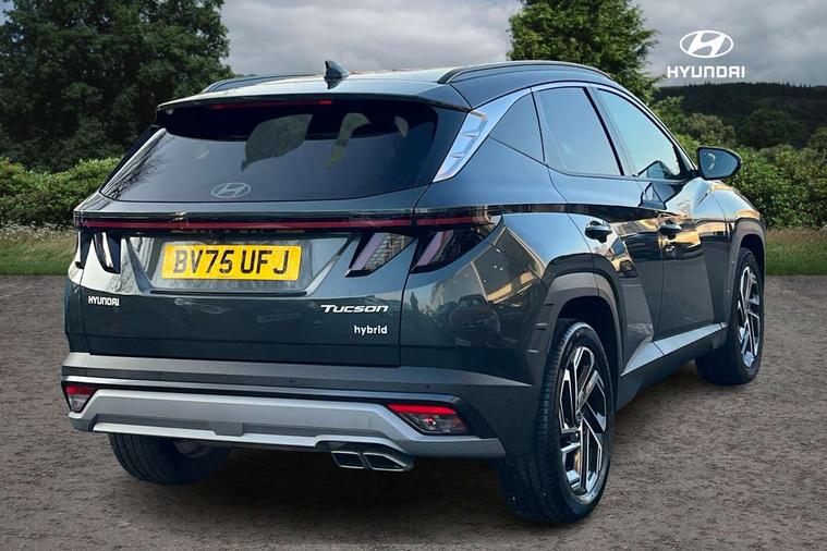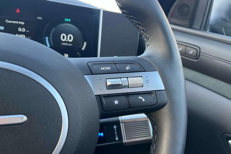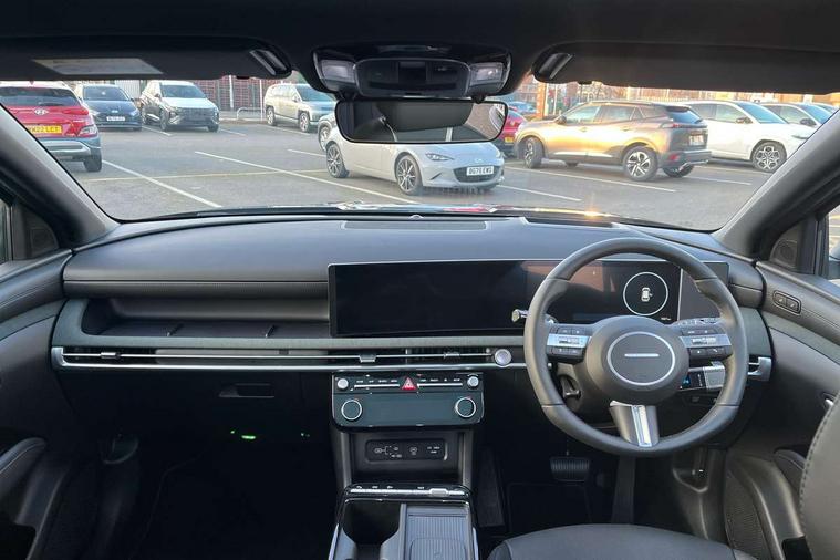 12.3" LCD display with driver's supervision instrument cluster, 12.3" widescreen navigation with bluelink and mapcare, Blind spot view monitor, Bluetooth system, Cruise control - smart adaptive speed control with stop and go function, Digital clock, Drive mode selector, Driver attention warning, E-call, Emergency stop signalling system, Forward Collision Avoidance Assist (FCA) - Car, Pedestrian and Cycle, Forward Collision Avoidance Assist Junction Turning (FCAJX), Front and rear parking sensors, Front, rear and side parking distance warning, Highway Driving Assist (HDA), Hyundai road side assistance, Intelligent speed limit assist, Lane follow assist, Lane keep assist, Over the air updates(OTA), Parking collision avoidance assist (PCA), PAS, Rear camera and guidance parking system, Rev counter, Smart power tailgate, Surround view monitor, Tailgate open warning light, Trip computer, Trip odometer, Voice recognition, Water temperature gauge, Windscreen washer fluid sensor and warning indicator, Wireless Apple CarPlay/Android Auto, Wireless phone charging pad, 2 front and 2 rear USB-C ports, DAB Digital radio, Krell premium audio system with 8 speakers and subwoofer, Steering wheel mounted audio/phone controls, Adjustable intermittent front windscreen wipers with aero wiper blade, Auto dimming rear view mirror, Automatic defog system, Automatic headlights with dusk sensor, Automatic windscreen wipers with rain sensor, Black wheel arches, Body colour bumpers, Body colour door mirrors with integrated indicators, Body colour exterior door handles, Electric tilt/slide panoramic sunroof, Electrically adjustable, heated and power folding door mirrors, Follow me home headlights, Front and rear electric windows with anti-trap mechanism and one touch control, Front fog lights, LED 3rd brake light, LED daytime running lights, LED rear lights, Matrix LED headlights, Positioning Lights - LED, Privacy glass - Rear windows and tailgate, Rear side wing doors, Rear wash/wipe with intermittent wipe setting, Roof rails, Tinted glass with windscreen shade band, Trailer stability assist, 12V power outlets in front console and luggage compartment, 3 seat bench in 2nd row, 40/20/40 split folding rear seat, 64 colours interior ambient lighting, Adjustable head restraints (Up and down), Cupholders in rear armrest, Door courtesy lights, Driver and passenger sunvisors with illuminated LED vanity mirrors, Driver's seat electric adjustments, Driver's seat memory, Front and rear door pockets, Front armrest with storage box, Front centre console and door bottle holders, Front passenger's seat electric adjustments, Heated front seats, Heated rear seats, Heated steering wheel, Height/reach adjustable steering column, Illuminated/air conditioned glove compartment, ISOFIX child seat anchorage points attached on outer rear seats, Leather upholstery, Leather wrapped steering wheel and gear knob, Luggage compartment lighting, Luggage cover, Luggage hooks, Luggage net, Map and reading lights, Rear seat remote folding function, Rear side window sunblind, Reclining rear seats, Retractable load cover, Single front passenger seat, Sunglasses holder, Three zone climate control, Touch sensitive climate controls with temperature dials, TUCSON branded metal door scuff plate, Underfloor boot compartment, Ventilated front seats, Trailer wiring package - Tucson, 3x3 point rear seatbelts, Active bonnet, Airbag - Front, front side, curtain and centre front airbags, Anti-lock brake system (ABS), Brake assist function, Childproof rear door locks, Curtain airbag roll over sensor, Downhill brake control, Electric parking brake, Electronic stability control, Front and rear seatbelt reminder, Front passenger airbag deactivation switch, Front seatbelt pretensioners, Hill start assist control (HAC), Multi-Collision braking, Outer rear seatbelt height adjustment, Seatbelt height adjustment for front seats, Traction control, Tyre pressure monitoring system with individual tyre pressure display - TPMS, Vehicle stability management, Deadlocks, Immobiliser, Locking wheel nuts, Remote control central locking, Smart key with keyless entry and engine start/stop button, Speed sensitive auto door locking, Thatcham category 1 alarm, 19" Alloy wheels, Tyre repair kit,