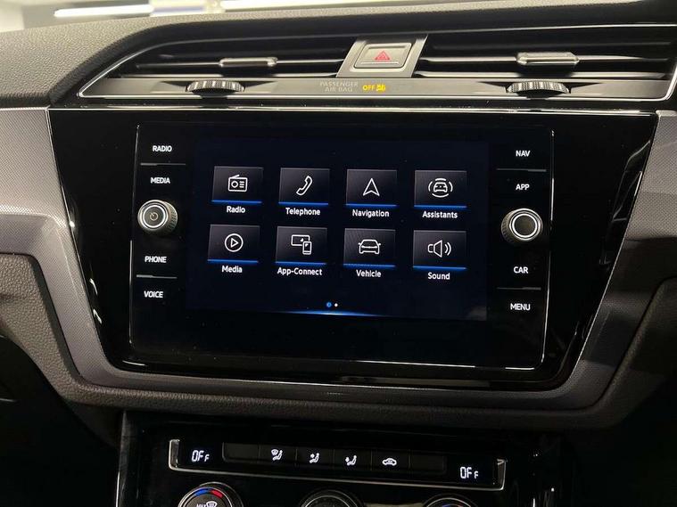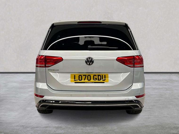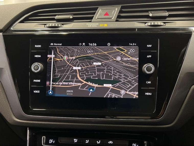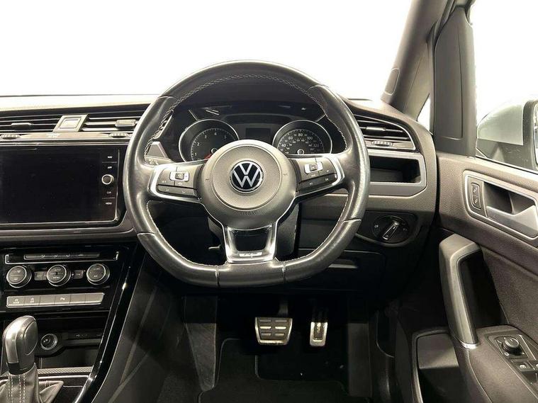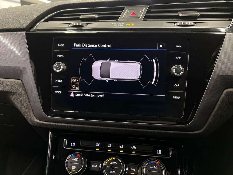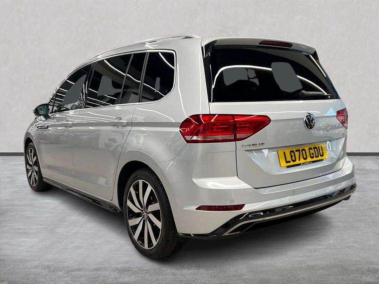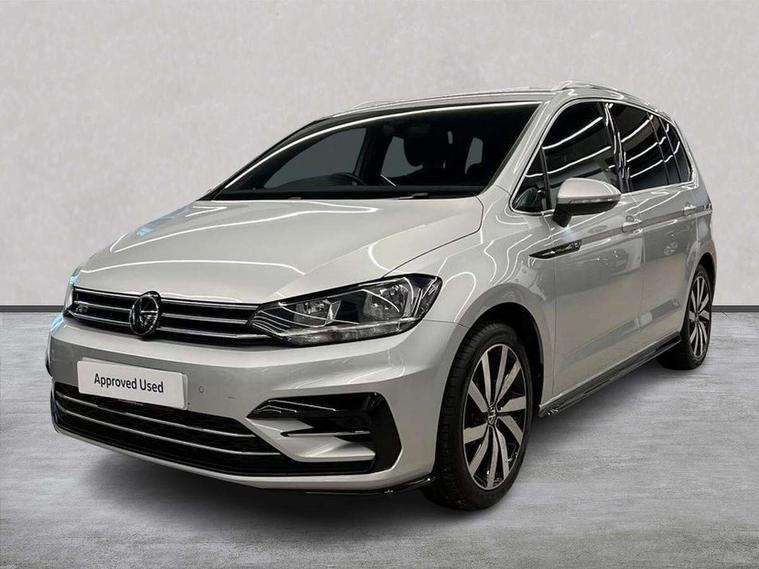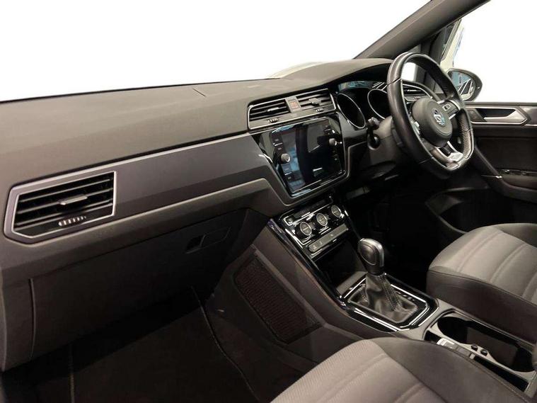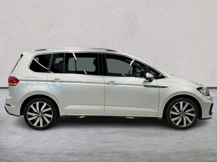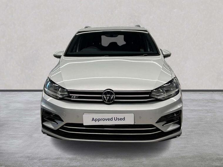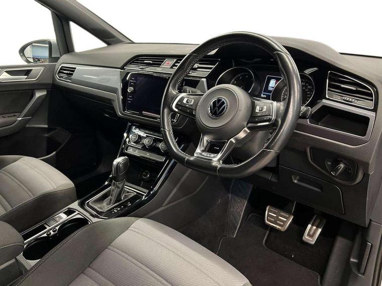 Adaptive cruise control, Audible lights on warning, Bluetooth telephone connectivity, Car information display, Driver alert system, Driver electronic voice amplification function, Electronic odometer, External temperature gauge, Flat tyre indicator, Mobile pairing with SMS function, Multifunction colour display, Rev counter with fuel gauge, Speed limiter, Speed sensitive power steering, Stop/start system, Think blue trainer driver tips and journey analysis, Trip and service interval display, Petrol Particulate Filter, XDS electronic differential lock, 4x20 watt output, Audio Connectivity System, DAB Digital radio, MP3/WMA compatability, SD card slot, Title and cover art display, USB connection, Aerial integrated into side window, Body colour bumpers, Body colour door handles, Body colour door mirrors with integral indicators, Chrome fog light surround, Chrome lower front bumper insert, Chrome trimmed front air intake surrounds, Chrome trimmed radiator grille louvre inserts, Chrome trimmed side windows, Dusk sensor + auto driving lights, Electric folding door mirrors with reverse activated kerb-view adjustment on passenger's door mirror, Front and rear electric windows, Fully galvanised body, Gloss black finish B pillar, Green tinted heat insulating glass, High level third brake light, Rear tinted glass from B-pillar backwards approx 65% tinted, Rear wash/wipe with intermittent wipe setting, Silver roof rails, Tailgate wiper- reverse gear activation, Twin chrome exhaust tailpipes, Unique R Line badging, Volkswagen roundel, Windscreen wipers intermittent wipe, 12V power point for Row 2, 12V socket in luggage compartment, 2 individual fold flat 3rd row seats, 2 three point seatbelts in 3rd row, 2nd row centre armrest, 2nd row centre seat converts into table, 3 single slide/fold/removable 2nd row seats, 3 Zone electronic climate control with automatic air recirculation, 3x3 point seatbelts on 2nd row with height adjust on outer seats, 4 boot load lashing points, 4 way adjustable front head restraints, 5 headrests, Aluminium kick plate, Ambient lighting in door trim and foot well, Black roof lining, Driver and front passenger under seat drawer, DSG Paddle Shifts, Dust/pollen filters, Foldable front passenger seat backrest, Front + rear carpet mats, Front and rear reading lights, Front centre armrest with storage compartment, Front comfort seats with lumbar support, Front cupholders x 2, Front passenger seat height adjust, Front seat R Line logo with rear seat backrest, Front seat storage pockets, Front seatback folding tables, Front seats with R-Line logo, Grey stitching on steering wheel, Height adjustable driver's seat, Height/reach adjust steering wheel, Illuminated glovebox, Illuminated vanity mirrors, Instrument lighting white adjustable panel illumination with red night time illumination, Interior light with delay, Isofix on 2nd row outer seats, Isofix on 3rd row seats, Large storage compartment in roof console, Leatherette on rear of front seats, Low tunnel 2nd row seat, Media box in dashboard on passenger side, Multi storage in passenger/luggage areas, Multi-function centre console with storage facilities, Multifunction leather trimmed steering wheel including leather trimmed gear knob with 3.5" screen with multifunction computer, R-Line door sill protectors, Retractable luggage cover, Split folding rear seat backrests, Stainless steel pedals, Storage bins on all doors, Convenience Pack - Touran, Mirror pack - Touran, R line styling pack - Touran, 3 point height adjustable front seatbelts, Auto hold function, Automatic post collision braking system, Door open warning reflectors, Driver/Front Passenger airbags, Drivers knee airbag, EDL + ASR, Electronic parking brake, Energy recovery system, ESC with ABS, First aid kit, Front and rear (row 2) curtain airbags, Front assist including city emergency braking, Front seat side impact airbags, Front/rear disc brakes, Hill hold control, Hydraulic Brake Assist (HBA), Loose wheel warning function, Manual passenger airbag deactivation function, Pre crash preventive occupant protection, Seatbelt warning lamp and buzzer, Traction control, Two tone horn, Warning triangle, Alarm with remote central locking and interior protection, Electronic engine immobiliser, Black lead grey decorative inserts dash and door panel, Chrome plated instrument surrounds, Embroidered emblems to headrestraints, 18" Marseille alloy wheels with self sealing tyres and anti-theft wheel bolts, Tyre mobility system,