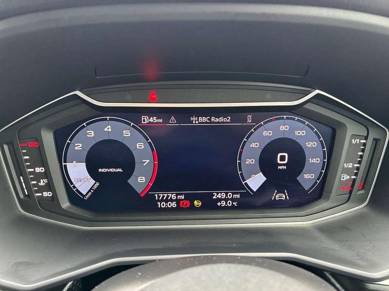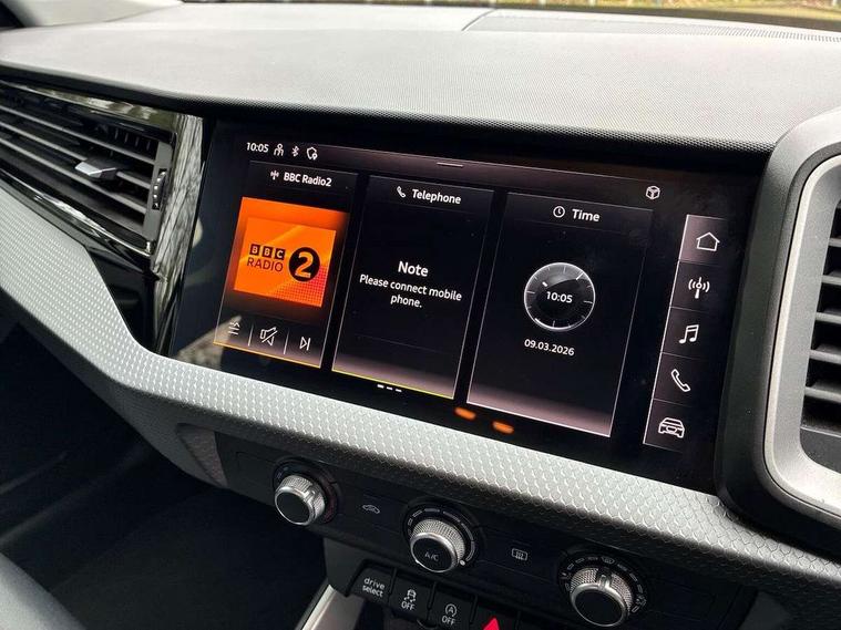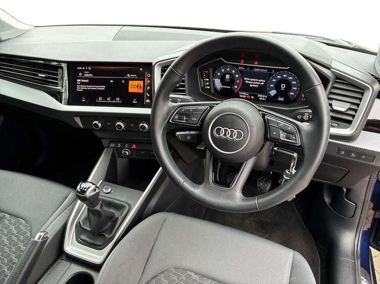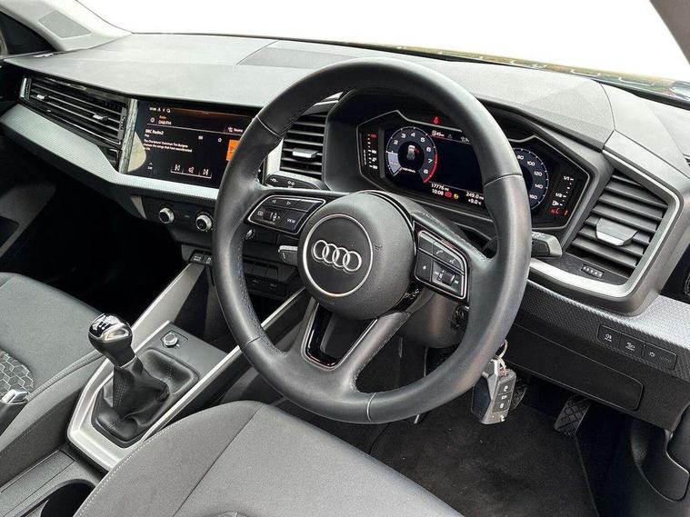 Aluminium trim for control switches, air vents and digital instrument cluster, Silver grey accent areas including air vents, door handle recesses and centre console in diamond paint finish, Slate grey inlays polygon structure in fine paint finish, Luggage compartment pack - A1, Anti theft alarm, Anti theft wheel bolts and loose wheel warning, Audi pre-sense front with pedestrain and cyclist recognition, Immobiliser, Remote central locking with 2 foldaway keys, 1 x SDXC card reader, 1 x USB type C and 1 USB type A charging points, DAB Digital radio, MMI radio plus with 8.8" colour MMI display screen and MMI touch, 3x3 point rear seatbelts, Brake assist function, Driver and front passenger airbag with front side and head airbags, Electronic Stability Control including ABS, EBD, ASR and EDL, Front and rear seatbelt reminder, Front passenger airbag deactivation switch, Hill hold assist, Seatbelt height adjustment for front seats, Seatbelt monitoring, Tyre pressure warning light, Warning triangle and first aid kit, Auto dimming rear view mirror, Body coloured bumpers, Body coloured door mirrors, Electric front and rear windows, Electrically adjustable, heated, folding door mirrors with integrated LED side indicator, Front side air inlets in grained matt black and C frame in titanium black, Heat insulating glass windscreen and side windows, Heated rear windscreen, LED headlights with LED rear lights + dynamic rear indicators + headlight adjustment and high beam, turning light + LED daytime running lights, Radiator grille and rear diffuser in matt titanium black, Radiator protective grille frame in matt aluminium silver, Rain and light sensors, Rear fog lights, Rear wiper, Scandium grey tailpipe trim, Side front spoiler lips in grained matt black, 12V socket in centre console with two cup holders, 3 rear seats with headrests, 40:60 Split folding rear seat or folded fully, Door sill trims with aluminium inlay, Driver and passenger seat with manual height adjust with forward and backwards adjustment, Front head restraints, Front/rear floor mats, Height and reach adjustable steering wheel, ISOFIX child seat mounting for front passenger and outer rear seats including top tether attachment point of outer rear seats, Leather gear knob with aluminium trim, Leatherette handbrake grip, Luggage compartment light with front and rear reading lights, Manually adjustable lumbar support in front seats, Novum cloth upholstery with front sport seats, Titanium grey cloth headlining, 10.25" Digital instrument cluster display classis style instrument dials + speed, odometer, time, outside temperature, telephone menu + fuel level warning, Audi connect safety emergency and service including E-call, Audi drive select - power steering assistance + engine, Audi smartphone interface with connect compatible smartphone via USB directly MMI display + Nav, music, third party apps controlled via MMI controller, Automatic start/stop system, Bluetooth interface, Cruise control, Driver's information system, Electromechanical power steering, Lane departure warning system, Rear parking sensor, Service interval indicator, Speed limiter, Voice control system, Washer fluid level indicator, Dynamic suspension,