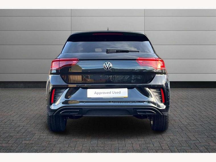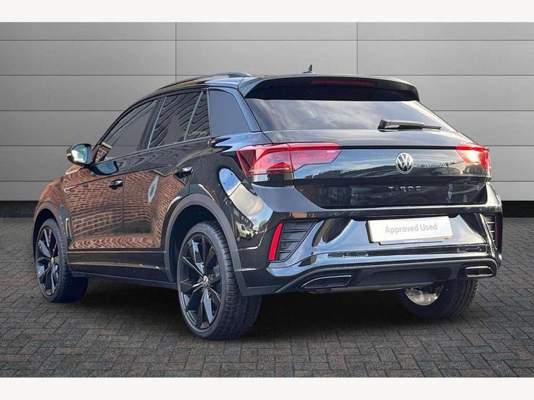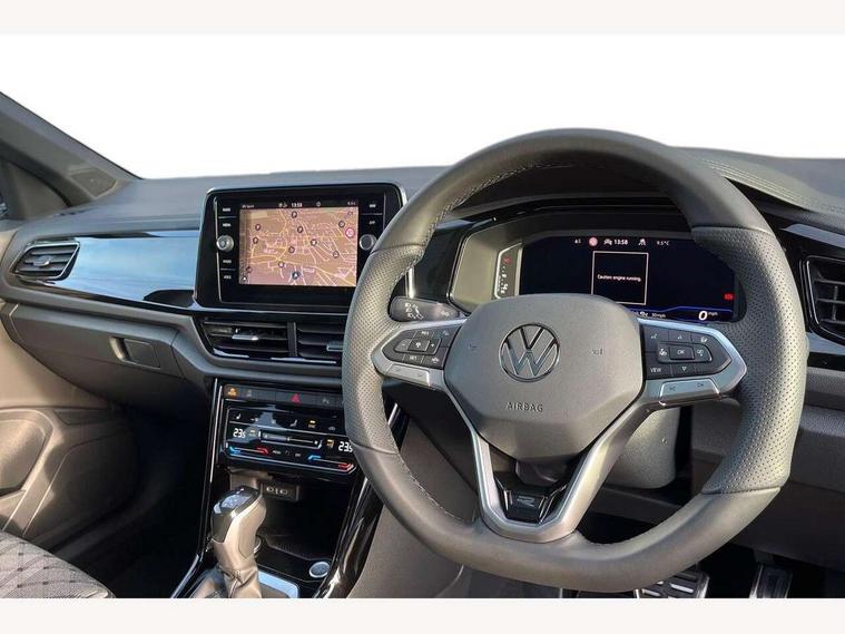 10.25" Digital cockpit pro, Advanced driver attention and drowsiness monitor, Emergency call service, Lane keeping system Lane Assist, Mobile phone interface, Modified key software - reduce switch off time for key status change to Long no motion, Online services, Park assist including front and rear parking sensors, Power assisted speed sensitive steering, Rear view camera, Service interval indicator, Tailgate/trunk lid release from outside, Think blue trainer driver tips and journey analysis, Warning sound and light for front seatbelts unfastened, Wireless app connect, Battery regeneration during braking, Rear shock absorption chassis with increased ride height, Start/stop function with battery regeneration, DAB Digital radio, Diversity antenna for FM reception, Music playback - MP3, WMA and AAC files, SD card slot, Simultaneous pairing of 2 compatible mobile devices, Title and cover art display, We Connect and We Connect Plus functionality, Advanced dynamic light assist for LED matrix headlights, Auto dimming interior rear view mirror, Automatic hazard lights activation under emergency braking, Black roof rails, Dynamic cornering light, Dynamic headlight range control with self adjusting whilst driving, Electrically adjustable and heated door mirrors, Extended roof spoiler, Exterior ambient lighting, Exterior mirrors aspherical on driver side, convex on front passenger side, External USB type C socket and charging sockets, Front windscreen wiper with intermittent wipe and 4 position delay, Heated rear window, Illuminated front grille, IQ LED matrix headlights, LED 3rd brake light, LED rear number plate lights, LED rear tail lights with dynamic turn signal, LED separate daytime running light, Light mode for poor weather, rain, fog or snow, Power windows with comfort operation and circuit breaker, Privacy glass for rear side windows and rear window, R-Line design body coloured bumpers, Rain sensor, Rear exhaust tailpipe, Rear fog light on one side and reversing lights on both sides, Rear side wing doors, Rear wash/wipe with intermittent wipe setting, Remote electrically foldable door mirrors, puddle lights and reverse activated passenger's door mirror, Tilting and sliding panoramic sunroof with rear panoramic sunroof, 12V power socket in centre console, 3 rear head restraints, 3 seat bench in 2nd row, 4 load lashing points in luggage compartment, Air care climatronic air conditoning system with active combination filter and 2-zone temperature control, Chrome plated radiator grille inserts, air vent surrounds and light switch surrounds, Door and side trim panel with leatherette insert, Drawer under drivers seat, Front + rear carpet mats, Front centre armrest, Front comfort sports seats, Front cupholders x 2, Front footwell illumination, Front reading light, Front scuff plates with R Line logo, Front seat back storage pockets, Glove compartment door with light, Instrument lighting, white adjustable panel illumination, Interior ambient lighting and surround lighting, Interior light delay, Isofix child seat preparation, Leather gearshift handle, Load-through provision with cup holder when folded down ('Unsplit rear seat bench, split folding backrest, with centre armrest), Luggage compartment lighting, Non-folding front passenger seat backrest, Single front passenger seat, Stainless steel pedals, Storage compartment in left and right luggage area, Storage compartment in rear doors, Storage compartments in driver and front passenger doors, Sunvisors with illuminated vanity mirrors, Variable boot floor, height adjustable and removable, Black design pack - T-Roc black edition plus, Easy open package with safelock - T-Roc, Sport pack with sports suspension - T-Roc, 3 point height adj front seatbelts + pretensioners, 3 point seatbelts in outer rear with ECE label, ABS, Child locks on rear doors, City emergency braking and pedestrian monitoring, Driver and front passenger airbag with front passenger airbag deactivation, Driver and front passenger safety-optimised head restraints, Drivers seatbelt reminder, Electronic parking brake, Electronic Stability Control (ESC) inc EDL (Electronic Differential Lock) and ASR (Traction Control), Front and rear passengers curtain airbag system including front side airbags, Front disc brakes, Hill start assist, Predictive pedestrian protection, Rear disc brakes, Two tone horn, Tyre pressure loss indicator, Volkswagen roadside assistance, Keyless locking and starting system keyless access with safelock, Gloss deep iron dash trim, 19" Misano black diamond turned alloy wheels with low rolling resistance and anti theft wheel bolts, Tool kit, Trims for alloy wheels, Tyre mobility kit including compressor and sealing foam,