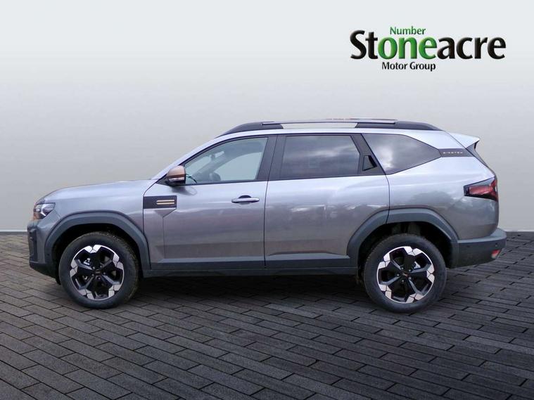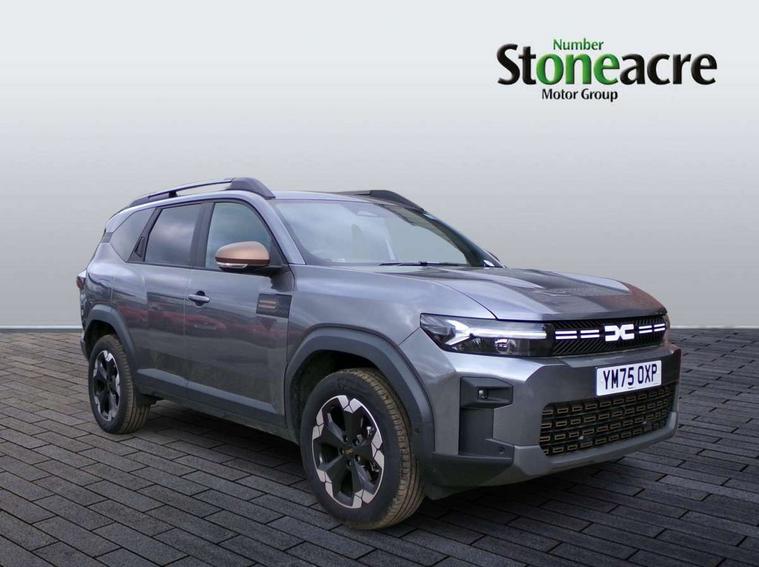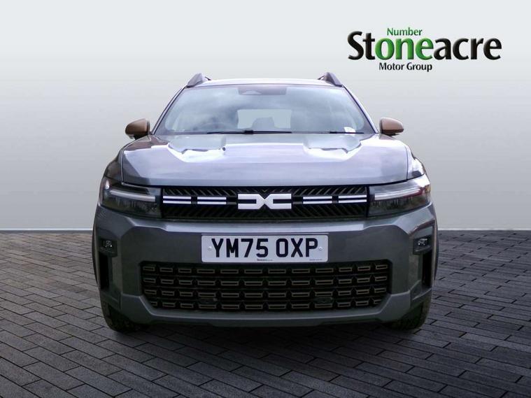 10" Digital Cluster, 10" digital driver display, ADAS Disconnect (advance driving systems disconnect) - My Safety, Apple CarPlay and Android Auto, Blind spot warning, Cruise control and speed limiter, Driver attention warning, eCall emergency system, Eco mode, Electric power assisted steering, Emergency Stop Signal (ESS), Energy smart management, Event data recoder, Forward collision warning, Front and rear parking sensors, Lane departure warning with lane keep assist, Multi view camera, Rescue code, Stop/start system, Traffic sign recognition with speed alert/Intelligent speed assist (ISA), Wireless phone charger, 10.1" media nav live with connected navigation, DAB, smartphone replication, bluetooth, connected services, USB-C plug (front and rear), plus app store, Arkamis sound system with 6 speakers, Auto lighting system, Automatic wipers, Black with white trim radiator grille, Body coloured door handles, Copper rear Dacia lettering, Copper Y-Shaped air vents inserts, Dark glass, ECO LED Front foglights, Electric adjustable/heated door mirrors, Electric front windows with driver's one touch operation, Electric rear windows, Front and rear body coloured bumpers, Grey modular roof bars, Heated rear windows with wash wipe, High beam assist, High level third rear brake light, LED automatic daytime running lights, Panoramic opening sunroof, Privacy rear window, Rain sensor, Rear side wing doors, Shark fin antenna, Side protection, Tinted acoustic windshield, Turning signal integrated in door mirrors, Wheel arch protection and snorkel in starkle, Y-shaped LED lighting signature, 3 rear height adjustable headrests, 3 seat bench in 2nd row, 4 way adjustable front passenger seat, 40/20/40 rear bench with an easy fold function, 6 way adjustable driver seat, Central armrest, Dual zone automatic air conditioning, False floor, Front and rear rubber floor mats, Front head restraints, Gear shift indicator, Grey gear lever deco part, Heated front seats, Heated steering wheel, Height adjustable front headrests, Height and depth adjustable steering wheel, Isofix points for child seats in both outer rear seats, MicroCloud fabric washable TEP upholstery, Mid centre console micro cloud with soft feel, Rear 12v plug in boot, Removable parcel shelf, Rubber reversible boot mat, Single front passenger seat, Sunvisor for driver and passenger with mirror/ticket holder and light, Synthetic leather steering wheel, White steering wheel logo, 3x3 point rear seatbelts, 6 airbags - front and side driver and passengers including curtain airbags, ABS and Emergency brake assist, Advanced emergency braking system, Alcohol imoboliser predisposal, Child locks on rear doors, Door open visual and audible warning, Driver and passenger seatbelt warning, Electric parking brake, Front seatbelt pretensioners, Height adjustable front seatbelts, Hill start assist, Protective rear brake disc, Side impact protection, Tyre pressure monitor, Vehicle dynamic control, Automatic central locking, Central door locking, Engine immobiliser, Keyless entry, Cast forming khaki dashboard decopart, Cast forming khaki door deco part, 18" Diamond cut tagasan black alloy wheels, Copper brown centre caps,