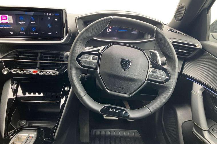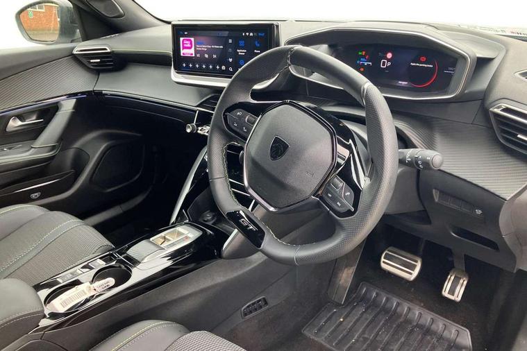 Bluetooth telephone facility, Driver attention warning, E-call, Exterior temperature indicator with ice warning, Front and rear parking sensors, Multi function trip computer, PEUGEOT i-Cockpit with 10" high definition capacitive touchscreen, PEUGEOT i-Cockpit with compact steering wheel, PEUGEOT i-Cockpit with configurable 3D headup instrument panel, PEUGEOT SOS and assistance, Speed limit recognition and recommendation, Wireless mirror screen with mirror link, apple carplay and android auto, Petrol Particulate Filter, 1x USB-C socket in rear and 1x USB-A socket in rear, 2 USB-C ports in the front, 6 speakers radio with mp3 compatible, DAB Radio (Digital Audio Broadcasting), Voice recognition for radio, navigation and telephony features, 2 X Rear number plate lights, Aluminium door sill scuff plates with peugeot lettering, Automatic hazard light activation upon heavy brake application, Black diamond roof, Black front wing trim with gloss black detail and GT badging, Body coloured exterior door handles, Dark tinted rear side and tailgate windows, Diamond black mirror shells, Diamond black rear roof spoiler, Electric, heated, and power folding door mirrors, Frameless electrochrome interior rear view mirror, Front bumper - Meteor grey lower trim, Full LED headlights with smartbeam assist with auto height adjustment, Gloss black finish on B pillar, Gloss black rear cluster connecting strip, Gloss black roof bars, Gloss black window surround, GT model designation badging on tailgate, Headlights left on audible warning, LED daytime running lights with distinctive 3 claw signature, LED side indicator lights integrated into door mirrors, LED third brake light, Model designation badges front and rear, One touch electric front/rear windows with pinch protection, Radiator grille - body coloured vertical chequered grille, Radiator grille - gloss black top edge trim, Rear full LED 3D peugeot signature claw effect lights with daylight function, Rear reversing lights, Rear side wing doors, Rear windscreen wiper triggered automatically in reverse gear, Reinforcement of the front bumper, Tailgate with heated rear windscreen and wiper blade, Twin chromed exhaust pipes, Wheel arch extensions, 1/3 to 2/3 split folding rear seats, 12V socket, 3 seat bench in 2nd row, 8 Colour personalisable ambient lighting, Automatic air conditioning with pollen and active carbon filter, Central front armrest with storage compartment, Driver and front passenger sport seats, Electric power steering with reach and rake adjustable steering column, Front and rear carpet mats in black, Front LED interior light with 2 reading spotlights and rear interior light with timer, Front passenger seat manual adjustment - height, longitudinal and back rest angle, High centre console, ISOFIX child seat mounting points on passenger seat, Mistral full-grain perforated leather steering wheel with Lime Green stitch detail and satin chrome 'GT' emblem, Multifunction steering wheel, Piano keys: Gloss black and chrome toggle switches to access main functions of the vehicle and touchscreen functions, Roof lining - Mistral black, Seatbelt unfastened on the move audible and visual alert for front and rear seats, Single front passenger seat, Two position modular boot floor, Visibility pack - 2008, 2x 2nd row ISOFIX child seat mountings, ABS (Anti-lock Braking System) with EBD (Electronic Brakeforce Distribution) and EBA (Emergency Braking Assistance), Active safety brake with night function/cyclists/pedestrians, Adaptive driver and front passenger airbags with passenger airbag deactivation function, Advanced emergency braking system (AEB) with enhanced camera with the high beam and radar, Child locking functionality on rear doors, Driver/front passenger side airbags, Electric parking brake, ESP (Electronic Stability Program) + Hill Start Assist, Front and rear curtain airbags, Front and rear disc brakes, Front and rear three-point retractable seatbelts, with force limiters, Front optimised safety headrests and rear retractable headrests (x3), height adjustable, Tyre pressure sensor, Automatic door locking when moving off, Deadlocks, Electronic code immobiliser, Thatcham category 1 alarm, Carbon effect Dashboard, front and rear door panel finish,