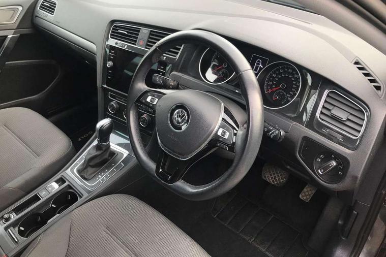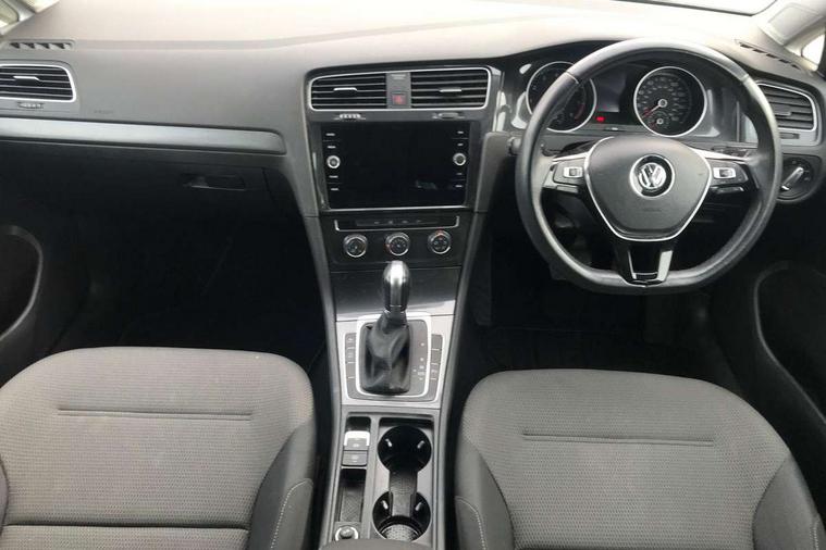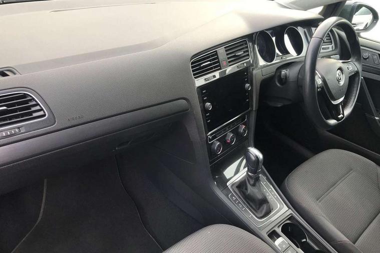 'Lights On' Reminder warning buzzer, ACC - Adaptive cruise control with front assist, forward collision warning, distance monitoring, city emergency brake and speed limiter, Bluetooth telephone and audio connection for compatible devices, Brake pad wear indicator warning light, Driver alert system, Driver profile selection, Driving Mode Selection with four preset modes - Eco, normal, sport or individual modes, Instrument cluster in white, Multifunction computer with visual gear change recommendation for fuel consumption, Power assisted speed sensitive electro-mechanical steering, Push tank flap, Speed limit display, Speedo, rev counter, electronic odometer, trip, service interval display, exterior temperature and fuel gauge, Stop/start system, Warning buzzer and light for front seatbelts unfastened, Battery regeneration during braking, XDS electronic differential lock, Composition media system, DAB Digital radio receiver, Driver Personalisation profile selection, MP3/WMA compatability, Multi device interface (MDI) with USB connection, Personalisation 1.1 profile for media, Premium USB cable in choice of either Apple or Android smartphone compatibility, SD card slot, SMS Functionality, USB and SD card connectivity, Black front air intake and radiator grille with chrome insert, Black rear diffuser, Body colour bumpers, Body colour door handles, Body colour door mirrors with integrated indicators, Dusk sensor + automatic driving lights, Electric front windows, Electric rear windows, Electrically adjustable and heated door mirrors, Fully galvanised body, Heated rear windscreen, Hidden exhaust pipe, High level 3rd brake light incorporating LED Technology, LED daytime running lights, LED front fog lights with static cornering light function, Rear fog lamp, Rear tinted glass 65% light absorbing from B pillar backwards, Rear window aerial, Rear window wash/wipe with intermittent wipe, Reflectors in all doors, Tailgate with integrated rear roof spoiler, Windscreen wipers/ intermittent wipe + 4 position delay, 12V socket in luggage compartment, 3 rear headrests, 4 load lashing points in luggage compartment, 60/40 split folding rear seat backrest, Auto fold down lever in rear seat backrest, Bag hook in luggage compartment x 2, Cooled glovebox, Cupholder cover, Dust/pollen filter, Front and rear reading lights incorporating LED technology, Front centre armrest with storage compartment and two rear air vents, Front seat back storage pockets, Grab handles front x 2, rear x 2 with integrated coat hooks, Height and reach adjustable steering wheel, Illuminated vanity mirrors, Instrument lighting white adjustable panel illumination, Interior light delay, Isofix preparation for 2 rear child seats, Load through provision with rear centre armrest and cupholders x2, Luggage compartment lighting, Overhead storage box, Passenger underseat drawer, Pearl grey headlining, Storage box in luggage compartment, Storage compartment in roof console with cover, Storage compartments in centre console, Storage compartments in front doors, Storage compartments in rear doors, Stowable luggage compartment cover, Sun visors, Variable boot floor, height adjustable and removable, Convenience Pack - Golf, Light and Sight pack - Golf, Mirror pack - Golf, 3 rear three point seatbelts, Airbags - Driver's and front passenger's, curtain airbag, Driver's knee, front side impact and passenger's airbag deactivation switch, Anti-lock Braking System (ABS) with Hydraulic Brake Assist (HBA), Automatic post collision braking system, Child locks on rear doors, Driver/Passenger optimised head restraints, Electronic parking brake with auto hold, Electronic stability control (ESC) including Electronic differential lock (EDL) and ASR (Traction control) with deactivation via infotainment system, Front ventilated disc brakes and rear disc brakes, Pre crash preventive occupant protection, Three point height adjustable front seatbelts with tensioners, Tyre pressure loss indicator, Alarm with interior protection and deactivation via infotainment system, Electronic engine immobiliser, Remote central locking with 2 remote folding keys, Brushed dark silver decorative inserts in dash and door panels, Chrome plated air vent surround, Chrome plated electric mirror adjustment light switch surround, Polar night black centre console, Steel space saver spare wheel,