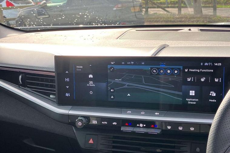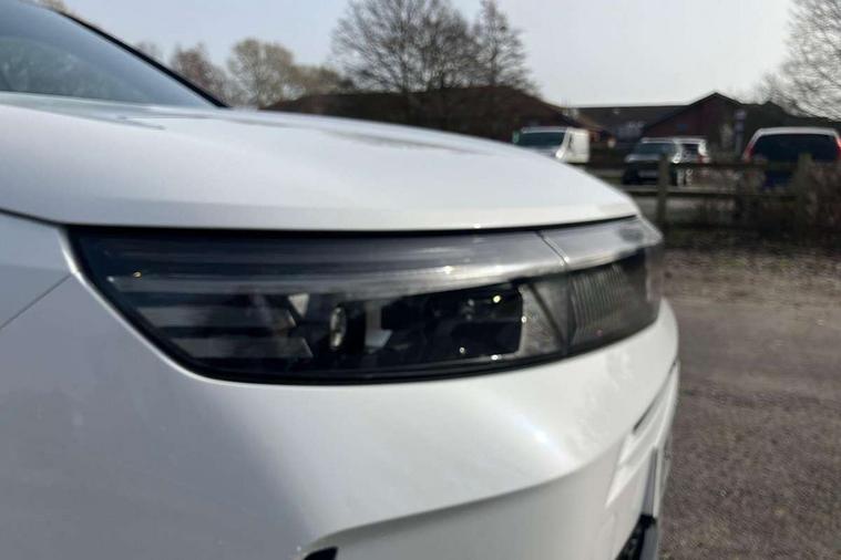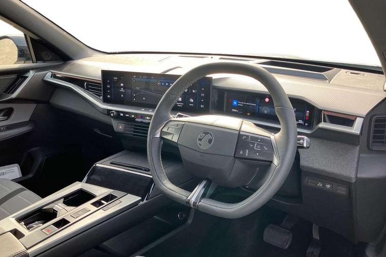 10" digital instrument cluster, 16" multimedia navigation with wireless Apple Carplay/Android auto, 360 degree surround camera, Anticipated intelligent speed adaptation, Central facia display with digital clock, outside air temperature and audio information, Curve speed adaptation, Digital fuel gauge with low fuel level warning light, Digital rev counter, Digital speedometer, Digital water temperature gauge with warning light, Drive mode selector (Eco, Normal, Sport), Driver information - Total mileage, service indicator, oil life, Electric power steering, Front and rear parking sensors, In-crash braking, Intelli-HUD (Extended heads up display), IntelliDrive 2.0 - Semi autonomous lane change assist with lane positioning assist, rear cross traffic alert and side long range blind spot detection, Lights on audible warning, Multi function trip computer - Trip odometer, vehicle range, average speed and fuel economy, instantaneous fuel economy and driving time, Power tailgate, Speed sign recognition, Start/stop system, Vauxhall connect including Emergency call (SOS e-call) and Breakdown call (b-call), Wireless charger for mobile devices, Anti-roll bars, Compound crank rear suspension with coil springs and gas pressure dampers, Independent decoupled MacPherson strut front suspension with gas pressure dampers and coil springs, anti-roll bar, Stability control, 2 rear USB-C sockets, AM/FM and DAB radio, Premium focal Hifi sound system includes 10 speakers and subwoofer, Radio controls on steering wheel, Acoustic windscreen, Auto headlights, Automatic headlight beam levelling, Black door mirrors, Black grained wheel arch claddings, Body colour door handles, Dark tinted rear windows, Electrically defrosting driver and passenger door mirrors, Electrochromic frameless rear view mirror, Front illuminated griffin, Front wiper system spraying directly from wipers, Grained lower door claddings, Heated windscreen, High gloss black front and rear bumpers, High gloss black roof spoiler, Illuminated rear Vauxhall, IntelliLux LED headlights with 3D illuminated vizor, welcome and farewell animation, 11 driving modes and adaptive high beam assist, Intermittent rear window wash/wipe, LED 3rd brake light, LED daytime running lights, LED tail lights, Magic wash, Panoramic opening glass roof, Power folding door mirrors with memory function and reverse mode, Power front and rear windows, Rain sensor windscreen wipers, Rear side wing doors, Rear wipers with camera cleaning, Two speed windscreen wipers with variable intermittent wipe, Welcome lighting, 10 way manual adjustable heated front seats with AGR approved with pneumatic lumbar support, cushion nose extension and power tilt, 2 cupholders with slider, 3 12V plugs, 3 bench rear seats in 2nd row, 3 spoke leather effect steering wheel with dimpling, 7 colour ambient lighting, Automatic air conditioning, Centre console armrest, Chrome effect interior door handles, Clean cabin system, Cooled glove box and central console storage with LED light, Dashboard and door panels polychromatic ambient lighting, Dual zone electronic climate control, Front door storage with 1.5 litre capacity, Front seat back storage pockets, Fully carpeted luggage area, Heated steering wheel, Height adjustable headrests, Illuminated vanity mirrors, Intelli air, Paddle shifts, Pixel storage, Rear armrest, Rear centre seat head restraint, Rear clothes hooks on B pillar trims, Single passenger seat, Sunglasses Box, Touch sensitive front and rear reading lights, Anti-lock braking system (ABS), Automatic emergency braking system, Child proof locks on rear doors, Deactivation switch for front passenger front and side impact airbags, Deflation detection system, Driver airbag, Dual seatbelt pretensioners on front seats, EBD - Electronic brakeforce distribution, Electronic parking brake, Front and rear ventilated discs, Front passenger airbag, Front seat side impact airbags, Full-size curtain airbags for driver and front passenger, Hill assist control, Hydraulic Brake Assist (HBA), Inertia reel lap and diagonal seatbelts for all seats, Load limiters on outer rear seatbelt retractors, Pretensioners on outer rear seatbelt retractors, Rear 3 point ISOFIX, Smart seatbelt reminder for front and rear seats, Tyre pressure monitoring system, Central locking, Deadlocking system, Electronically protected audio equipment, Engine deadlock immobiliser, Keyless entry and start, Locking wheel nuts, Remote security alarm system, Mistral dark ambience, 19" Diamond cut alloy wheels, Tyre repair kit,