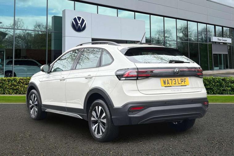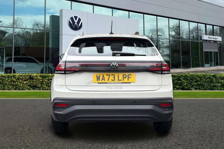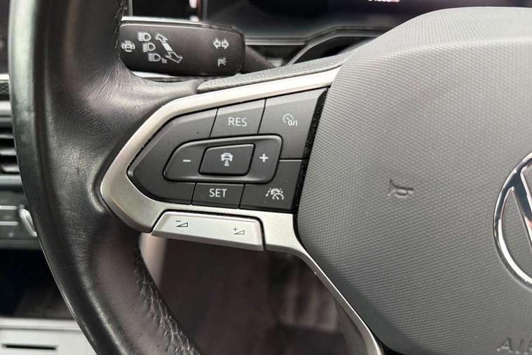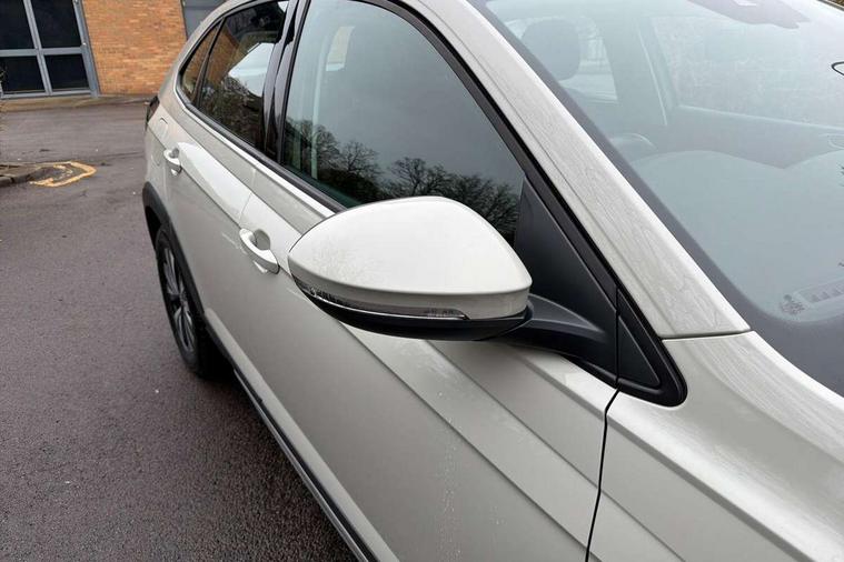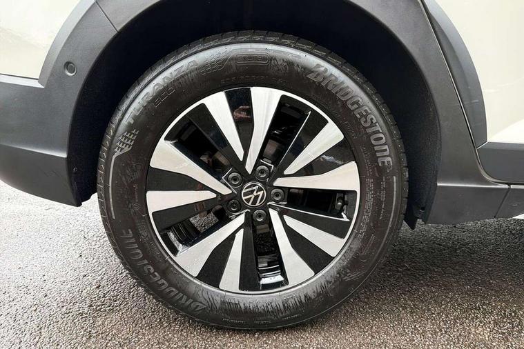 e-Call (emergency call), Power Steering, Travel assist including emergency assist, Washer fluid level indicator, Wireless Charging including Bluetooth, Start-stop system with battery regeneration (recuperation - energy recovery during braking), WeConnect plus, Ambient lighting with logo projection, Aspherical driver's exterior mirror, Auto headlights, Body coloured bumpers, Body coloured exterior mirror housings and door handles, Electric windows, External USB type C socket and charging sockets, Heat insulating glass windscreen, LED rear combination lamp, LED third brake light, Left convex exterior mirror, Power folding adjustable/heated exterior mirrors and front passenger exterior mirror lowering function, Rear fog light on one side, reversing light on both sides, Rear side wing doors, Rear wash/wipe with intermittent wipe setting, 'Slash/ Austin' Cloth upholstery, 12V socket in centre console, 2 front reading lights, 3 rear head restraints, 3 seat bench in 2nd row, Black carpets, Child seat anchor for child seat system i-Size, 2x top tether and child seat anchor in front on front passenger side, Door and side trim panels in titan black, Driver and front passenger seat height adjustment, Front centre armrest, Handbrake lever handle in leather, Height and reach adjustable steering wheel, Leather trimmed gear knob, Leather wrapped multifunction steering wheel, Luggage compartment floor, Luggage compartment light, Lumbar support for driver's and front passengers seat, Seat covers in titanium black, Single front passenger seat, Split folding backrest with centre armrest and unsplit rear seat bench, Storage compartment under front seats, Sun visors with illuminated vanity mirrors, Chrome Package - Taigo, Drivers assistance pack - Taigo, Light and Sight pack including High beam assist - Taigo, 2 x 3-point seatbelts/outer rear seats with ECE label, 3-point seat belts in front with pretensioner and height adjustment, 3-point seatbelt for centre rear seat, Adaptive driver and front passenger airbags with passenger airbag deactivation function, Driver and front passenger safety-optimised head restraints, Electronic stability control, Extended and predictive pedestrian/ cyclist protection, Front and rear disc brakes, Front curtain and side airbags with center airbag, Hill start assist, Manual rear child locks, Single tone horn, Tyre pressure loss indicator, Anti-theft alarm system with interior monitoring, backup horn, and towing protection, Anti-theft wheel bolts, Lava stone black gloss/matt decorative inserts in dash and front door panels, Low rolling resistance tyres,