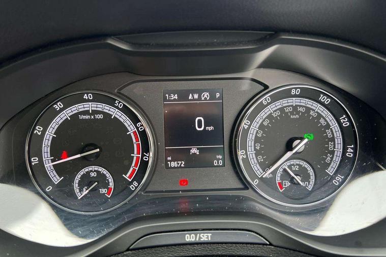 Amundsen sat nav system with 8" touch screen and integrated Wi-Fi + WLAN, Driver alert system, Driver fatigue sensor, Driver profile selection, Electro-mechanical PAS, Outside temperature gauge, Service interval indicator, Start/stop system with regenerative braking, Wireless RSE app, DAB radio with Bluetooth, SD card slot, USB connection, Acoustic glass, Aero front windscreen wipers with intermittent function, Automatic headlight control system, Black electric window control buttons, Body colour door mirrors and handles, Body coloured bumpers, Electric front and rear windows with child proof lock, Electrically adjustable heated folding and auto dimming door mirrors, Heated rear windscreen, LED rear lights with high functionality, Light assistant (coming/leaving home/tunnel light), Privacy glass, Safety reflectors on front doors, Third brake light, 1.5 litre bottle holders in driver and front passenger door panels, 12V socket in boot, 12v socket in front centre armrest with storage compartment and rear air vents, 2 Folding hooks and nets in boot, 2 Front readings lights for driver and passenger, 3 rear height adjustable headrests, 4 foldable roof handles with rear coat hooks, 4 lashing points on luggage floor, Backrest release, Cargo elements in boot, Chrome inner door handles, Driver and passenger seats height adjust, Dual zone climate control, Folding tables on the front seat backrests, Front head restraints, Front seat and rear pockets, Height adjustable front three point seats belts with tensioners, Height/reach adjust steering wheel, Ice scraper, Illuminated and cooled glovebox, Illuminated luggage compartment, Isofix child seat preparation outer rear, Manual lumbar support for front seats, Net programme in boot, Pen holder, Pollen filter, Rear boot cover, Rear reading lights, Rear seats fixed folding and divided 60:40, Safety vest holder, Storage box in upper central dashboard closed, Sunvisors with illuminated vanity mirrors, Umbrella under passenger seat, Airbags - Front side, head, knee and curtain, Automatic door unlocking in case of crash, Automatic fuel cut off in case of crash, Driver airbag, Electronic parking brake with auto hold function, Emergency rear braking signal, ESC including ABS, MSR, ASR, EDS, HBA, DSR, RBS, MKB and traction control, Front assist radar scanning of the space in front of the car with automatic braking, Hill hold control, Passenger airbag with switch-off function, Pedestrian monitor, Seatbelt reminder signalisation and pretensioner for all seats, Three point seatbelts rear, Two tone horn, Tyre pressure display, Tyre pressure monitor, Alarm with interior monitoring, back up horn and tilt sensor with safe function, Electronic engine immobiliser, Remote central locking with 2 remote folding keys, Chrome framed air vents, Storage on wheel cover,