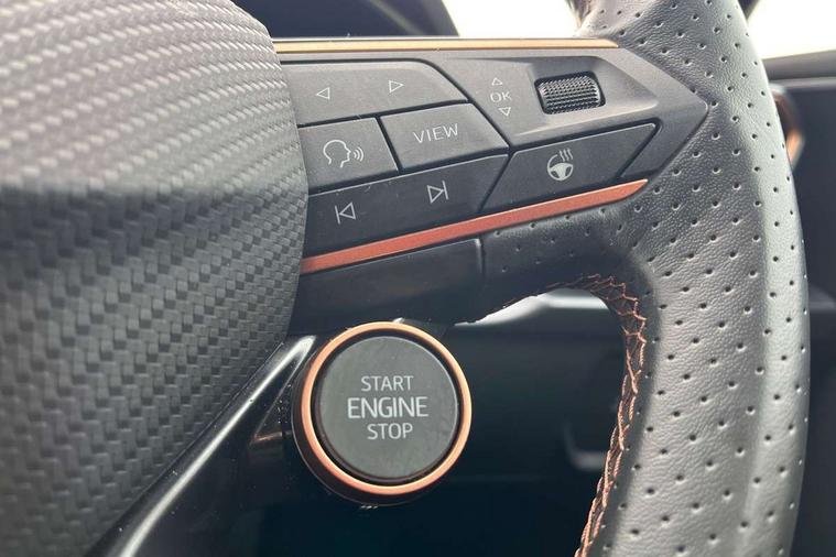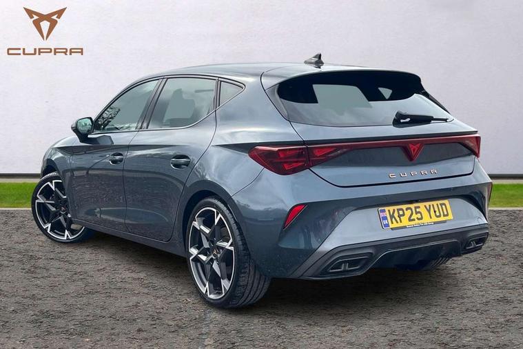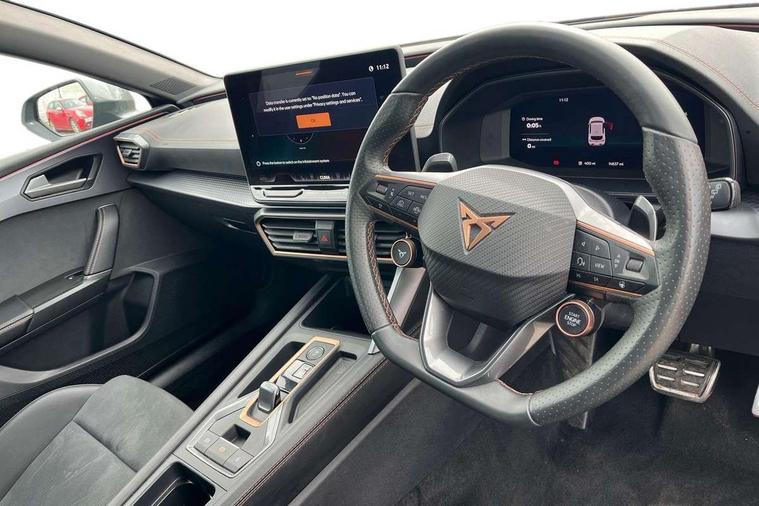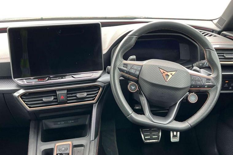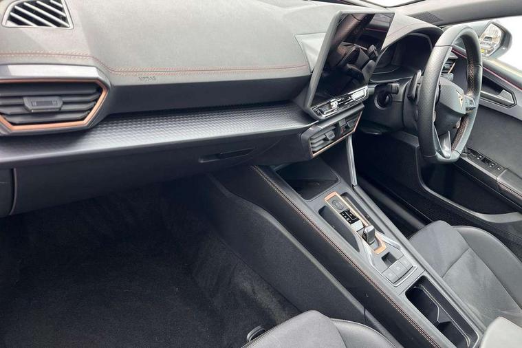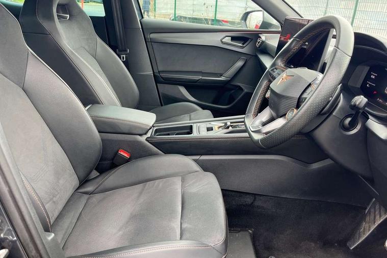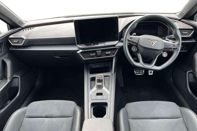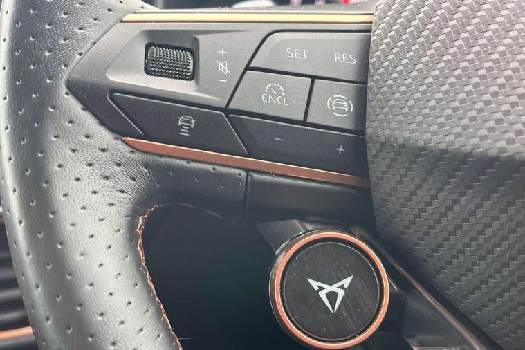 Adaptive cruise control with follow-to-stop and speed limiter, CUPRA drive profile selection with (Comfort/Sport/Individual), throttle response and gearshift mode, Digital cockpit, Dynamic road sign display, E-call, Front and rear parking sensors, Front assist with forward collision warning braking reaction to vehicles, pedestrians and cyclists, Full link smartphone integration with Mirror Link, wireless Apple CarPlay and wired Google Android Auto, Lane assist, Lockable tailgate, Rear view camera, RPM, trip computer, outside temp gauge, instrument light brightness, low fuel warning light, lights on reminder, gearshift indicator, Service interval indicator, Start/stop system with regenerative braking, Wireless phone charger, Auxiliary input socket, Auto dimming rear view mirror, Body colour door handles, Body coloured bumpers, Cupra sports bumpers, Dark tinted rear windows, Electric front/rear windows, Electrically adjustable, heated and folding door mirrors, High beam assist, LED front fog lamps with cornering function, LED headlights with dynamic turn signals, tail lights, rear fog lights with rear coast to coast lighting, LED rear fog lamp, Rain sensing wipers, Rear side wing doors, Rear wash/wipe, Separate daytime running light with automatic headlight control and coming home feature, Third brake light, Welcome light with logo projector in door mirrors, 12v power supply in centre console, 3 seat bench in 2nd row, 5 headrests, 60/40 split rear bench seat with armrest, Ambient lighting (glovebox, footwell, ambient lighting multicoloured), Black headlining, Cupra sports pedals, CUPRA Supersports, heated steering wheel with satellite buttons, Dinamica cloth upholstery, Electrically adjustable driver seat and lumbar support with memory function + manually adjustable passenger seat, Folding boot cover, Four x USB Type C ports (2 in front and 2 in rear), Front and rear reading lights X 4, Front centre armrest, Heated front seats, Height/reach adjust steering wheel, Illuminated interior front door sills, Interior wraparound lighting, ISOFIX points in outer rear seats with top tether anchorage points, Single front passenger seat, Storage pockets on rear of front seats, Sunvisors with illuminated mirror, Three zone climate control, Dynamic and comfort pack - Leon Cupra, Media system plus with 12.9" display + navigation pack - Leon Cupra, 3 point seatbelts on all rear seats, ABS, Brake control system - ESC and brake booster, Child proof door locks, Cupra black brake calipers, Driver and front passenger airbags with front passenger airbag de-activation, front side and curtain airbags, Electronic parking brake, Hill hold control, Rear disc brakes, Seat belt reminder for front and rear seats, Tiredness recognition system, Tyre pressure monitoring system, Anti theft alarm system with interior monitoring in cab, backup horn and towing protection, KESSY Advanced - Keyless start, keyless entry, Locking wheel bolts, Chrome and copper interior detailing, 19" Polar machined sport black and silver alloy wheel with 91Y tyres, Tool kit,