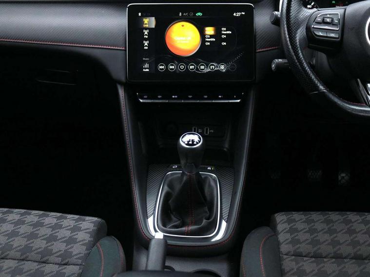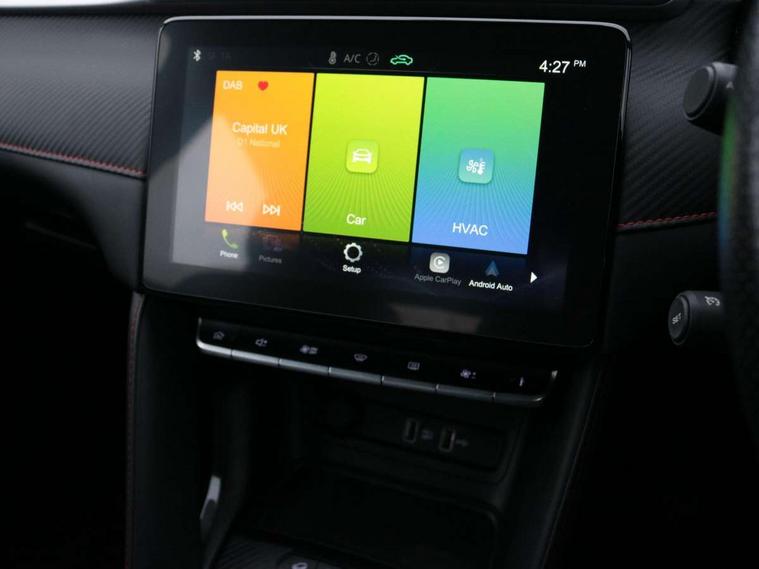 'Lights On' Reminder warning buzzer, 10.1" colour touchscreen, Android Auto, Apple CarPlay, Bluetooth connectivity, Cruise control with speed limiter, PAS, Rear parking sensors, Trip computer, USB mobile phone charging function, 4 speaker audio system, DAB audio, Radio/MP3 player, USB/aux input socket, Auto headlights, Body colour bumpers, Body colour door handles, Body colour electric adjustable folding heated door mirrors, Chrome side window trim, Follow me home headlights, Front and rear aero wiper, Front and rear electric windows with driver's one-touch up/down, LED Bi-Function headlights, LED centre brake light, LED daytime running lights, Rain sensor, Rear spoiler, Silver roof rails, 12V power sockets, 2nd row 60/40 split/fold, 3 rear headrests, 4 way manually adjustable passenger seat, 6-way manually adjustable driver's seat, Air conditioning, Boot light, Driver's footrest, Front cupholders x 2, Front grab handles, Front headrests, Front reading lights, Front seat back map pockets, Glovebox, Houndstooth fabric upholstery, Illuminated switches and controls, Internal chrome door handles, ISOFIX restraints on outer rear seats x2, Leather steering wheel, Rake/reach adjustable steering wheel, Rear grab handle, 3x3 point rear seatbelts, ABS/EBD, Anti rolling protection, Automatic unlocking of doors in case of impact, Child locks on rear doors, Dual front airbags, EBA, ESP, Front passenger airbag deactivation switch, Front seatbelts (3-point + pretensioner + load limiter), Front side airbags, Fuel cut off safety device, Hill launch assist, Rear passenger seatbelt alert, Seatbelt reminder for driver and front passenger, Side curtain airbags, Tyre pressure monitoring system, Alarm system and engine immobiliser, Automatic latching door, Remote central locking, Second remote key, Speed sensing door locks, Superlocking, 17" Typhoon diamond cut alloy wheels, Tyre repair kit,