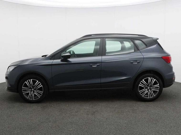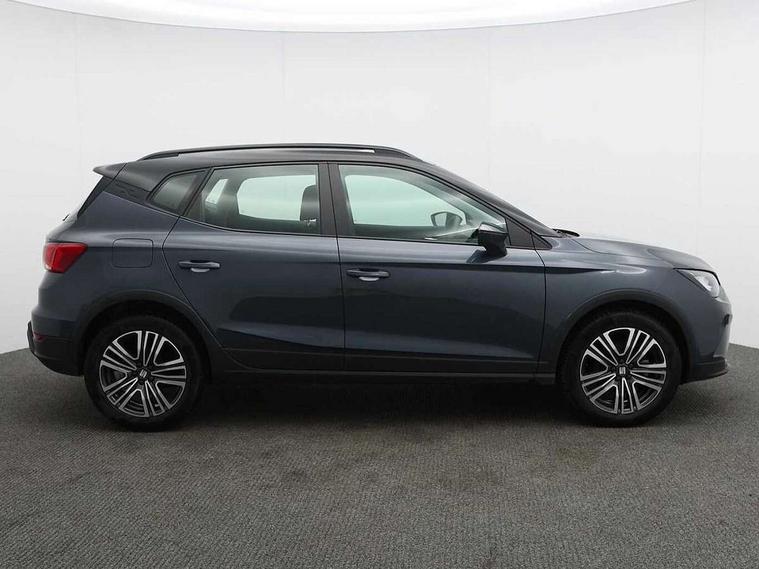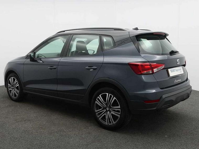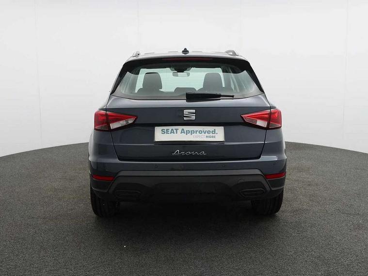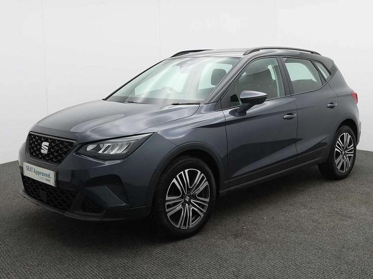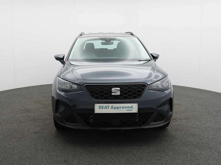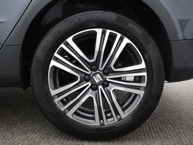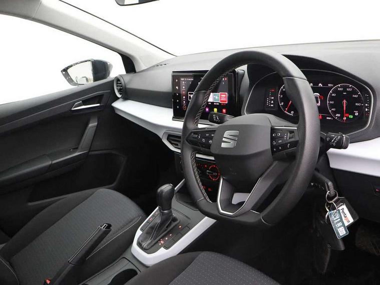 'Lights On' Reminder warning buzzer, 8" Digital cockpit, Cruise control and speed limiter, Digital clock, E-call, Electric speed sensitive power steering, Full Link Smartphone Integration with Mirror Link, Apple Car Play, Google Android Auto with USB Type C cable for Apple and Android compatibility, Lane keeping system, Low fuel warning light, Outside temperature display, Rear parking sensor, RPM counter, Seat connect with safety, service, remote and online, Trip computer, Wireless phone charger, 9.2" colour touchscreen with navigation system, voice control and USB port (type c), Bluetooth interface for hands free and audio streaming, DAB digital radio and AM/FM radio, Steering wheel mounted audio controls, Anti theft roof antenna, Automatic activation of hazard warning lights, Black roof rails and window surrounds, Body coloured bumpers, Body coloured door handle inserts, Body coloured door mirrors, Dimming rear view mirror, ECO LED automatic headlights and LED daytime running lights, Electric adjustable door mirrors, Electric front/rear windows, Hidden exhaust pipe, Licence plate lights, Protective side mouldings, Rain sensing wipers, Rear fog lights, Rear side wing doors, Rear spoiler, Rear window wash/wipe, Third brake light, Visible VIN plate, Windshield wiper with intermittent control and potentiometer, 2 cupholders, 3 seat bench in 2nd row, 60/40 split folding rear seat, Air conditioning, Cloth upholstery, Double boot floor, Driver sunvisor with covered mirror + card holder, Dust/pollen filter, Front courtesy light with front reading lights, Gear shift indicator, Grey interior roof, Height adjustable front seats, Height/reach adjustable steering column, Illuminated boot, Instrument lighting with brightness control, ISOFIX points in outer rear seats with top tether anchorage points, Leather steering wheel/gear knob/handbrake, Passenger sunvisor with vanity mirror, Single front passenger seat, Two front and three rear height adjustable headrests, Interior chrome pack - Arona, 3 point seatbelts on all rear seats, ABS, Active front headrests, Child locks on rear doors, Driver and front passenger airbags with front passenger airbag de activation, front side and curtain airbags, Electronic stability control, Emergency Brake Assist (EBA) and front assist, Front and rear seatbelt reminder, Hill hold control, Multi-Collision braking, Tiredness recognition system, Traction control, Tyre pressure monitoring system, Electronic engine immobiliser, Locking wheel bolts, Remote central locking + deadlocks, Titan black dashboard, 17" Dynamic machined alloy wheels,