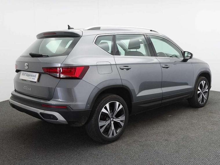 8" Digital cockpit, Colour multi-function on board computer display, Cruise control system with speed limiter, E-call, Outside temperature gauge, PAS, Self parking functionality (includes front and rear parking sensors), Start/stop system, Tailgate, Trip computer, Wireless full link smartphone integration, Wireless phone charger, Steering wheel mounted audio/phone controls, Black wheel arch surrounds, Body colour bumpers, Chrome front grille frame, Chrome roof rails, Chrome side window trim, Daytime running lights, Door mirrors with welcome light silhouette, Dynamic headlight range control with self adjusting whilst driving, Electric adjustable/heated/folding door mirrors, Front and rear electric windows, Full LED headlamps with lens and LED front fog lamps with cornering function, LED rear tail lights with dynamic indicators, Rear fog lights, Rear side wing doors, Rear wash/wipe, Simulated exhaust pipes, Third brake light, Variable front intermittent wipers, 12V socket in front, 3 seat bench in 2nd row, 60/40 split folding rear seat, Cloth upholstery with front comfort seats, Drawer under right front seat, Dual zone climate control, Front and rear head restraints, Front centre armrest, Front seat back storage pockets, Height adjustable driver and passenger seat with lumbar adjustment, ISOFIX points in outer rear seats with top tether anchorage points, Leather steering wheel and gear knob, Rear armrest and easy back seat release mechanism from boot, Single front passenger seat, Interior lighting pack - Ateca, Navigation system pack with DAB - Ateca, 3x3 point rear seatbelts, ABS, Traction control system (TCS), Electronic stability control (ESC) and Electronic differential lock system (XDS), Airbags - Driver and front passenger airbag with deactivation, front side, two curtain and driver's knee airbags, Electric parking brake with auto hold function, Front and rear seatbelt reminder, Front assist with autonomous emergency braking, Hill hold control, Manual rear child locks, Single tone horn, Tiredness recognition system, Traction control, Tyre pressure monitoring system, Alarm, Keyless entry, Locking wheel bolts, Remote central locking, Chrome interior detailing, 18" Performance machined alloy wheels 36/2 in nuclear grey,