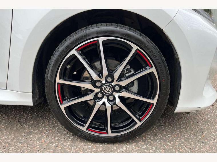 Adaptive cruise control, Adjustable speed limit with speed warning, Bluetooth connectivity, Colour binocular inspired displays with digital speedometer, E-call, Electric power steering, Hybrid energy display, Multi information display switches on steering wheel, Reversing camera, Smartphone integration with Apple CarPlay and Android auto, Tailgate, Voice recognition, Vehicle Stability Control (VSC), 6 speakers, 8" Multimedia display touch screen, Toyota Touch 2 with DAB, USB connection, Acoustic windscreen glass, Auto windscreen wipers, Automatic headlights, Body coloured door mirrors, Dark chrome lower meshed front grille, Electric adjustable heated door mirrors, Follow me home headlights, Front auto power windows with anti jam protection, Full LED rear lights, LED daytime running lights, LED front fog lights, LED front light guide, LED Headlights, LED High mounted stop lamp, LED Indicators, LED rear light guide, Manual headlight levelling, Painted chequered front grille with hot stamp in mesh design, Rain sensor, Rear auto power windows with anti jam protection, Rear privacy glass, Rear side wing doors, Rear spoiler, Rear wiper, Shark fin antenna, Turning signal integrated indicators in door mirrors, Variable front intermittent wipers, 3 adjustable rear headrests, 3 seat bench in 2nd row, 3 spoke leather steering wheel, 60/40 split folding rear seat, Active headrests, Adjustable boot height, Black roof lining, Coat hooks in rear grab handles, Cup holders (2 front & door), Data Communication Module (DCM) connected services, Dual zone automatic air conditioning, Fabric upholstery with red stitching, Front armrest, Front sport seats, Glovebox, Height adjustable driver's seat, Height adjustable passenger seat, Isofix seat fixing, Leather gearshift, Map pockets on the backs of the front seats, Pollen filter, Shopping bag hooks, Single front passenger seat, Tilt/telescopic steering column, 3 point seatbelts on all rear seats, ABS+EBD+Brake assist, Electronic parking brake, Emergency brake light system (EBS), Front passenger airbag on/off switch, Front seatbelt reminder, Hill start assist control (HAC), Rear child proof door locks, Rear seat belt reminder, Supplemental Restraint System (SRS) 8 airbags: Driver & passenger's airbags, dual side curtain airbags, side impact airbags, front centre airbag, Toyota Safety Sense 2, Precollison + Night time Pedestrian & Cyclist Detection, Lane Trace Assist, Auto High Beam, Intelligent ACC & Road Sign Assist, Tyre pressure warning system, 2x Master key, Alarm/immobiliser, Keyless smart entry with push button start, Remote AC via MyT, Remote locking via MyT, Remote powered central double locking doors, GR Sport interior styling with accents and exterior styling, Piano black interior trim, Soft touch instrument panel, 18" machined face alloy wheels with GR Sport red deco lines, Space saver spare wheel,