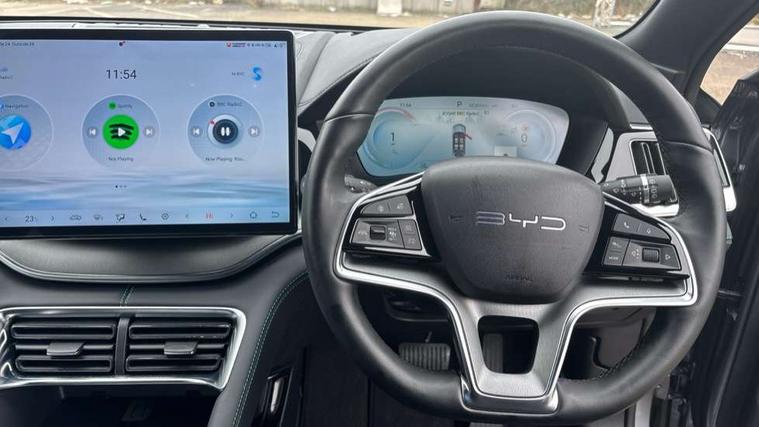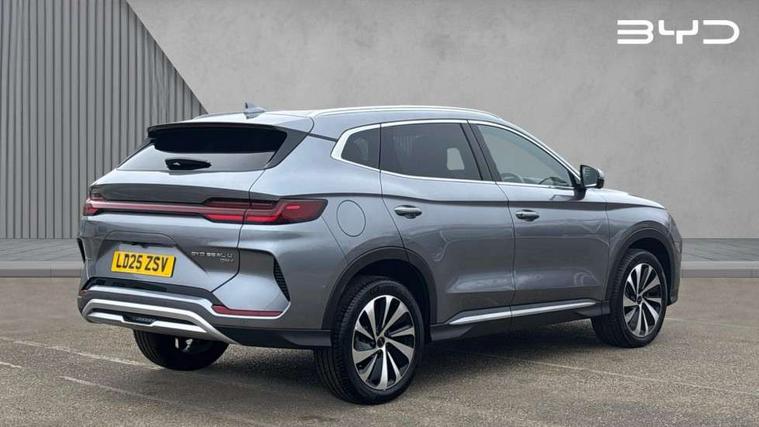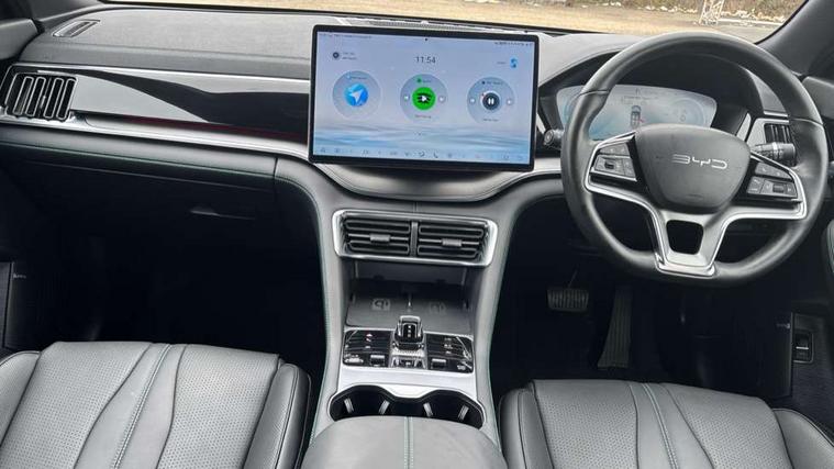 12.3" TFT full LCD instrument panel, 360 camera, Adaptive Cruise Control (ACC) and Intelligent Cruise Control (ICC), Automatic vehicle hold, Blind spot detection, BYD voice control assistant "Hi, BYD", Controller Deceleration Parking (CDP), Drive mode select (Eco, normal, sport, snow), e-Call (emergency call), Electric tailgate release, Emergency Lane Keeping Assist (ELKA), Forward collision warning, Front and rear parking sensors, Front cross traffic alert and front cross traffic brake, Head up Display, Indirect driver fatigue management, Intelligent Speed Limit Control (ISLC), Keyless system entry and start, Lane change assist, Lane Departure Assistant (LDA) and Lane Departure Warning (LDW), Lane departure prevention, PAS, Predictive collision warning, Rear collision warning, Rear cross traffic alert and rear cross traffic brake, Rollover Control System (RMI), Smartphone wireless charging, 2 x 15W, Traffic sign recognition (TSR), Vehicle-to-Load (V2L) function, 11kW on board charger, Mode 3 Type 2 charging cable (3 phase), V2L (Vehicle to load) power strip - Type F, 15.6" Electrically rotatable touchscreen, FM/DAB+ radio, Front USB ports, 1 x 18W Type C, 1 x 60W Type C, Infinity sound system with 10 speakers, Rear USB ports, 2 x 18W Type C, Aluminium roof rails, Auto dimming interior rear view mirror, Auto headlamps (on/off), Dynamic welcome lights, Electric folding and heated door mirrors, Emergency tow hook, Exterior mirror footlights, Follow me home headlights (The headlights turned on in advance and delayed off function), Front windscreen, UV protection, thermal insulation and sound proofing, High beam assist, LED 3rd brake light, LED daytime running lights, LED Headlights, LED taillights, One touch electric front/rear windows with pinch protection, Panoramic sunroof with anti-pinch sensor and electrically adjustable sunshade, Rain sensor windscreen wipers, Rear fog lights, Rear side wing doors, Rear window and rear windscreen with tinted glass, Rear wiper, 12V power outlet, 3 seat bench in 2nd row, 8 way electrically adjustable drivers seat, Adjustable rear headrests, Boot parcel shelf, Driver and passenger sunvisors with illuminated vanity mirrors, Driver seat memory function, Front centre armrest with 2 cupholders, Front LED reading lights, Front passenger seat with 4-way electric adjustment, Front seat footlights, Heat pump, Heated front seats, Heated steering wheel, Integrated headrest in front seats, ISOFIX and i-Size for front passenger and outer rear seats, LED front door lights, Nylon floor mats, PM2.5 air filter, PM2.5 air purification system, Rear air vents, Rear armrest with 2 cupholders, Rear side LED reading lights, Rhythm-reactive multi-colour ambient lighting, Single front passenger seat, Split folding rear seats - 40/60, Vegan leather multifunction steering wheel, Vegan leather upholstery, Ventilated front seats, 3x3 point rear seatbelts, ABS/EBD, Automatic emergency braking system, Brake override system (BOS), Child presence detection, Comfort stop, Door open warning, Driver airbag, Electric parking brake, Force limiting pre-tensioned front seat belts, Front centre airbag, Front passenger airbag, Front passenger airbag deactivation, Front side airbags, Hill descent control, Hill hold control, Hydraulic Brake Assist (HBA), Hydraulic brake boost, Mechanical child safety lock, Rear middle seat force limiting seat belt, Rear seat belt pretensioners, Reflective vest, Side curtain airbags, Traction control system (TCS), Tyre pressure monitoring system (TPMS), Vehicle Dynamics Control System (VDC), Warning triangle, 2 x Smart keys, Anti theft alarm system, Automatic door locking, 19" Bi-colour alloy wheels, Tyre nut covers remover, Tyre repair kit,