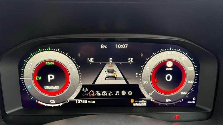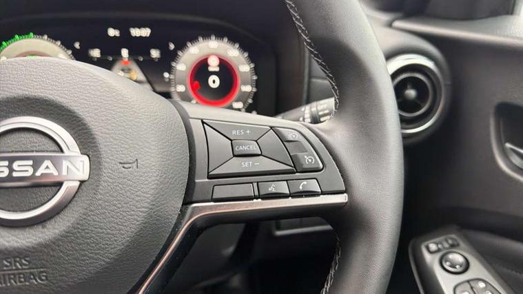12.3" full colour TFT screen combimeter, Drive modes select (Eco, normal and sport), e-Pedal step, Emergency and breakdown call, EV mode switch, Front parking sensor, Intelligent driver alert system, Intelligent lane intervention, Lane departure warning system, Nissan connect 12.3" touch screen entertainment system, Nissan connect nav with TomTom traffic, Nissan connect services, Outside temperature sensor, Power Steering, Rear parking sensor, Stop/start button, Traffic sign recognition, Trip computer, Voice recognition, WiFi connectivity, Wireless Apple CarPlay and Google Android auto, Wireless Smartphone charger, 2 X Rear console USB port, 6 speakers, Bluetooth system, USB, Aux-in and 12V socket, DAB Digital radio, Auto dimming frameless rear view mirror, Automatic hazard signal with emergency stop signal, Body colour door handles, Electrically adjustable door mirrors with integrated indicators, Follow me home headlights, Front and rear electric window with one touch driver window, Heated and auto folding door mirrors, High beam assist, LED 3rd brake light, LED daytime running lights, LED headlamps, LED rear fog lamp, LED rear lamps, One touch passenger window, Rain sensor windscreen wipers, Rear privacy glass, Rear side wing doors, Rear wiper, Roof spoiler, Shark fin roof antenna in solid Black, Three blink turn signal, 3 height adjustable rear headrests, 3 seat bench in 2nd row, 60/40 split folding rear seat, Automatic climate control, Card holder on driver sunvisor, Cloth/Synthetic leather with melange fabric inserts, Driver side rear coat hanger, Driver/passenger sunvisors and vanity mirrors, Front and rear cabin lights, Front armrest, Front door pockets with bottle holders, Front head restraints, Front/rear passenger grab handles, Height adjustable driver's seat, Internal chrome door handles, Leather gearshift knob, Luggage board, Luggage space lighting, Monoform sporty seats, Multifunction steering wheel, Rear door bottle holders, Single front passenger seat, Smooth synthetic leather steering wheel, Synthetic leather kneepad, Telescopic steering wheel adjustment, Two cupholders in front centre console, Two rear isofix child seat anchorage points with top tether, Welcome light and console tray ambient lighting, ABS with EBD and brake assist, Active ride control, Active Trace Control, Driver and passenger airbags, Driver and passenger side airbags, Electric handbrake with auto hold function, Electronic Stability Programme (ESP), Front and rear curtain airbags, Height adjustable seatbelts, Hill start assist, Intelligent emergency braking with pedestrian and cyclist recognition, Rear door child safety locks, Seatbelt reminder for driver/front passenger and rear seats, Three 3 point rear seatbelts, Traction control, Tyre pressure monitoring system, VDC Dynamic Vehicle Control, Alarm, Immobiliser, Intelligent key and start push button with walk away lock and approach unlock functions, Remote central locking, 17" Alloy wheels, Tyre puncture repair kit,