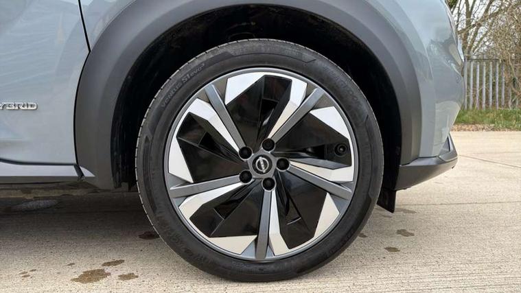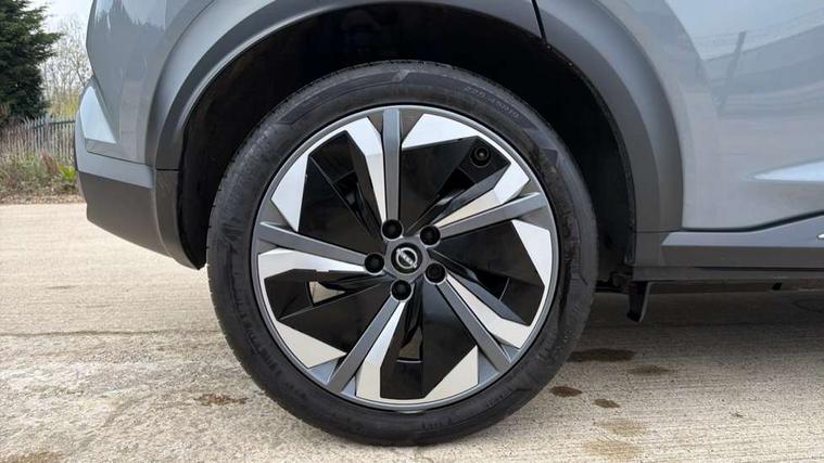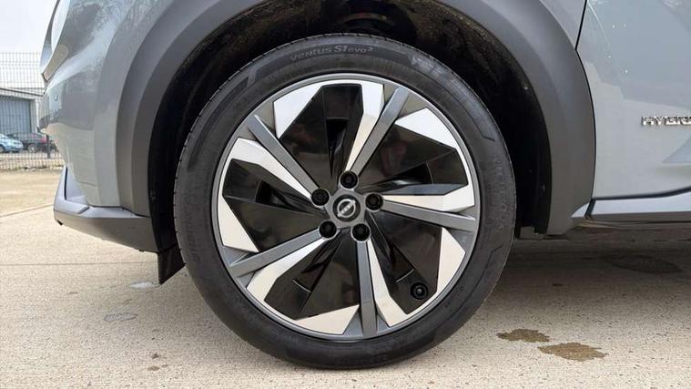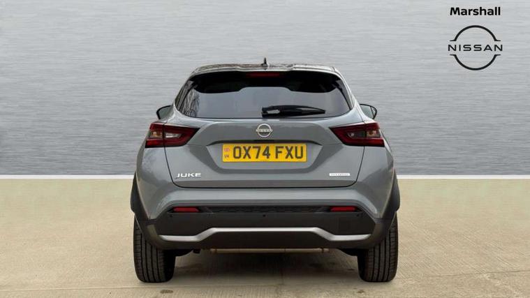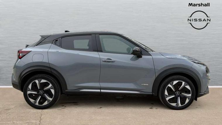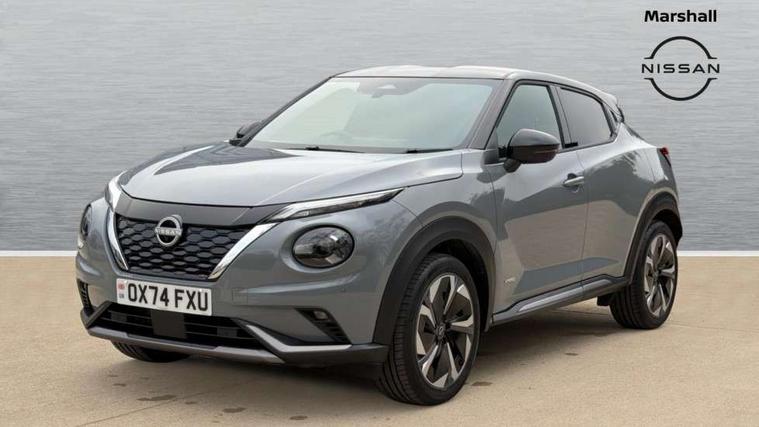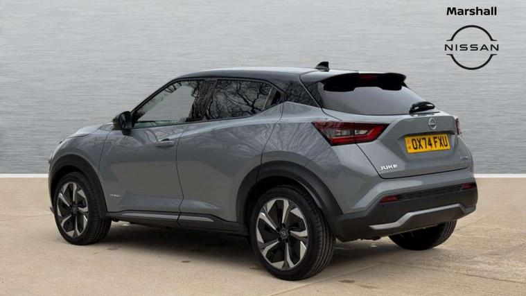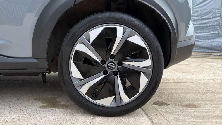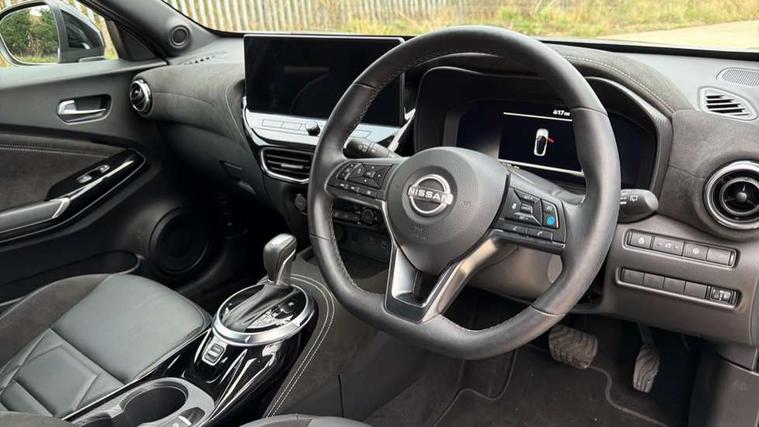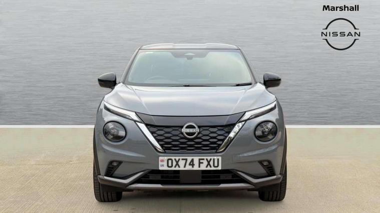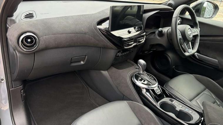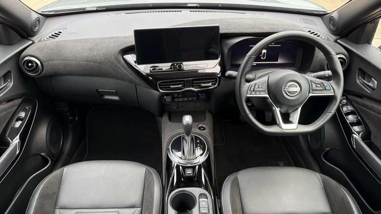 12.3" full colour TFT screen combimeter, Drive modes select (Eco, normal and sport), e-Pedal step, Emergency and breakdown call, EV mode switch, Front parking sensor, Intelligent driver alert system, Intelligent lane intervention, Lane departure warning system, Nissan connect 12.3" touch screen entertainment system, Nissan connect nav with TomTom traffic, Nissan connect services, Outside temperature sensor, Power Steering, Rear parking sensor, Stop/start button, Traffic sign recognition, Trip computer, Voice recognition, WiFi connectivity, Wireless Apple CarPlay and Google Android auto, Wireless Smartphone charger, 10 Bose speakers 6 speakers and 2 headrest speakers for driver/passenger seats, 2 X Rear console USB port, Bluetooth system, USB, Aux-in and 12V socket, Bose personal sound stage control, DAB Digital radio, Auto dimming frameless rear view mirror, Automatic hazard signal with emergency stop signal, Body colour door handles, Electrically adjustable door mirrors with integrated indicators, Follow me home headlights, Front and rear electric window with one touch driver window, Heated and auto folding door mirrors, High beam assist, LED 3rd brake light, LED daytime running lights, LED front fog lights, LED headlamps, LED rear fog lamp, LED rear lamps, One touch passenger window, Rain sensor windscreen wipers, Rear privacy glass, Rear side wing doors, Rear wiper, Roof spoiler, Shark fin roof antenna in solid Black, Three blink turn signal, 3 height adjustable rear headrests, 3 seat bench in 2nd row, 60/40 split folding rear seat, Automatic climate control, Card holder on driver sunvisor, Door ambient lighting, Driver seat back pocket, Driver side rear coat hanger, Driver/passenger sunvisors and vanity mirrors, Front and rear cabin lights, Front armrest, Front door pockets with bottle holders, Front head restraints, Front/rear passenger grab handles, Gear console ambient circle lighting, Height adjustable driver's seat, Internal chrome door handles, Leather gearshift knob, Luggage board, Luggage space lighting, Monoform sporty seats, Multifunction steering wheel, Passenger seat back pocket, Rear door bottle holders, Single front passenger seat, Smooth synthetic leather steering wheel, Synthetic leather kneepad, Telescopic steering wheel adjustment, Two cupholders in front centre console, Two rear isofix child seat anchorage points with top tether, Welcome light and console tray ambient lighting, Heat pack with height adjustable passenger seats - Juke, Interior personalisation pack - Juke, ProPilot pack - Juke Auto, Satin grey exterior personalisation pack - Juke, ABS with EBD and brake assist, Active ride control, Active Trace Control, Driver and passenger airbags, Driver and passenger side airbags, Electric handbrake with auto hold function, Electronic Stability Programme (ESP), Front and rear curtain airbags, Height adjustable seatbelts, Hill start assist, Intelligent emergency braking with pedestrian and cyclist recognition, Rear door child safety locks, Seatbelt reminder for driver/front passenger and rear seats, Three 3 point rear seatbelts, Traction control, Tyre pressure monitoring system, VDC Dynamic Vehicle Control, Alarm, Immobiliser, Intelligent key and start push button with walk away lock and approach unlock functions, Remote central locking, 19" Aero alloy wheels, Tyre puncture repair kit,